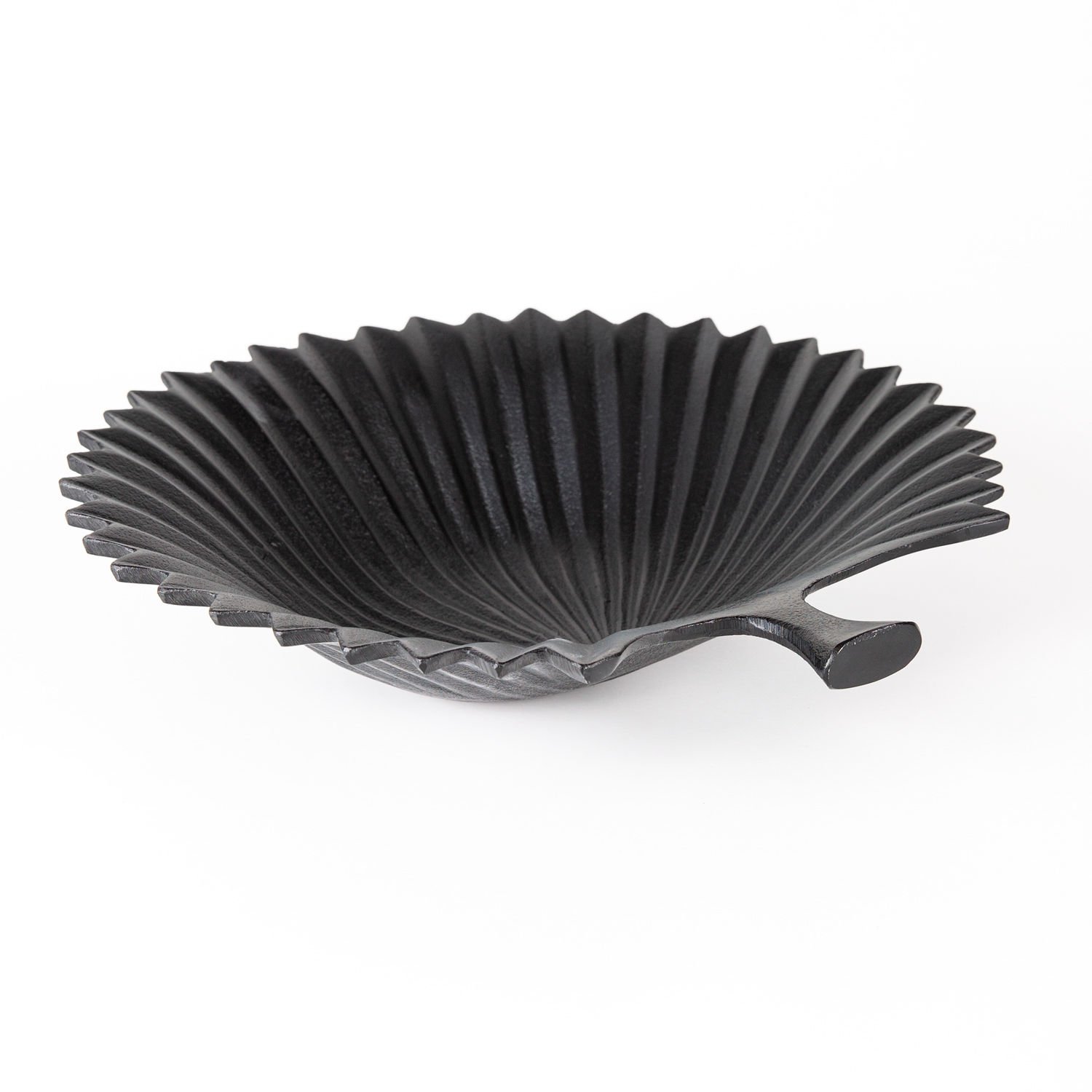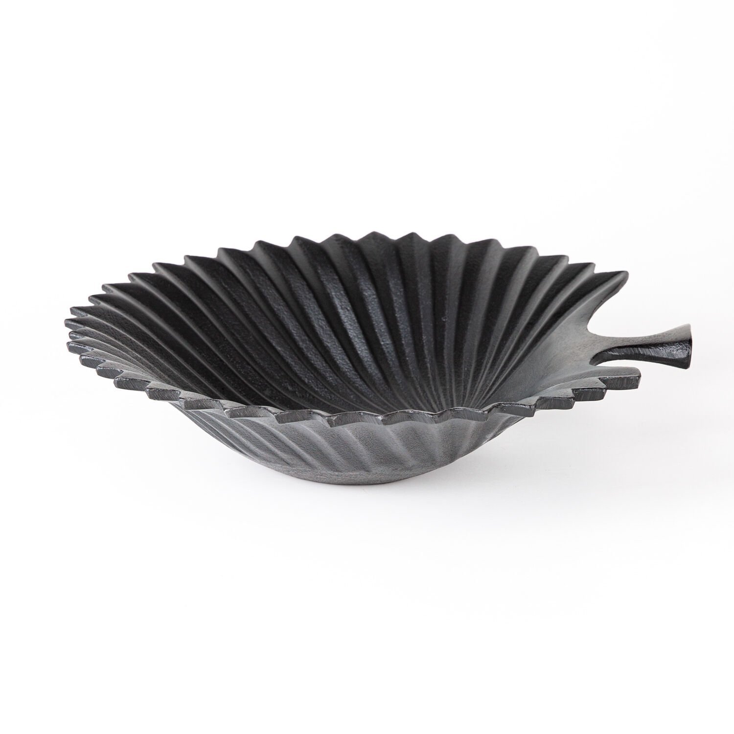 Metal Kase, Yaprak, Siyah - 36x8x35 cm