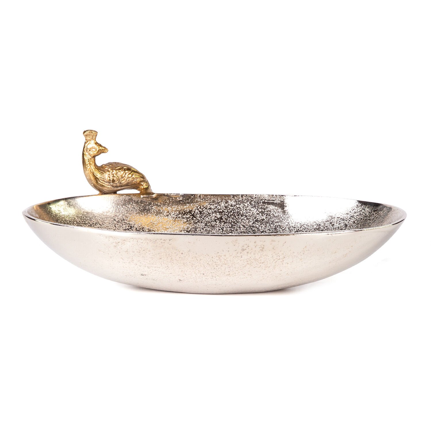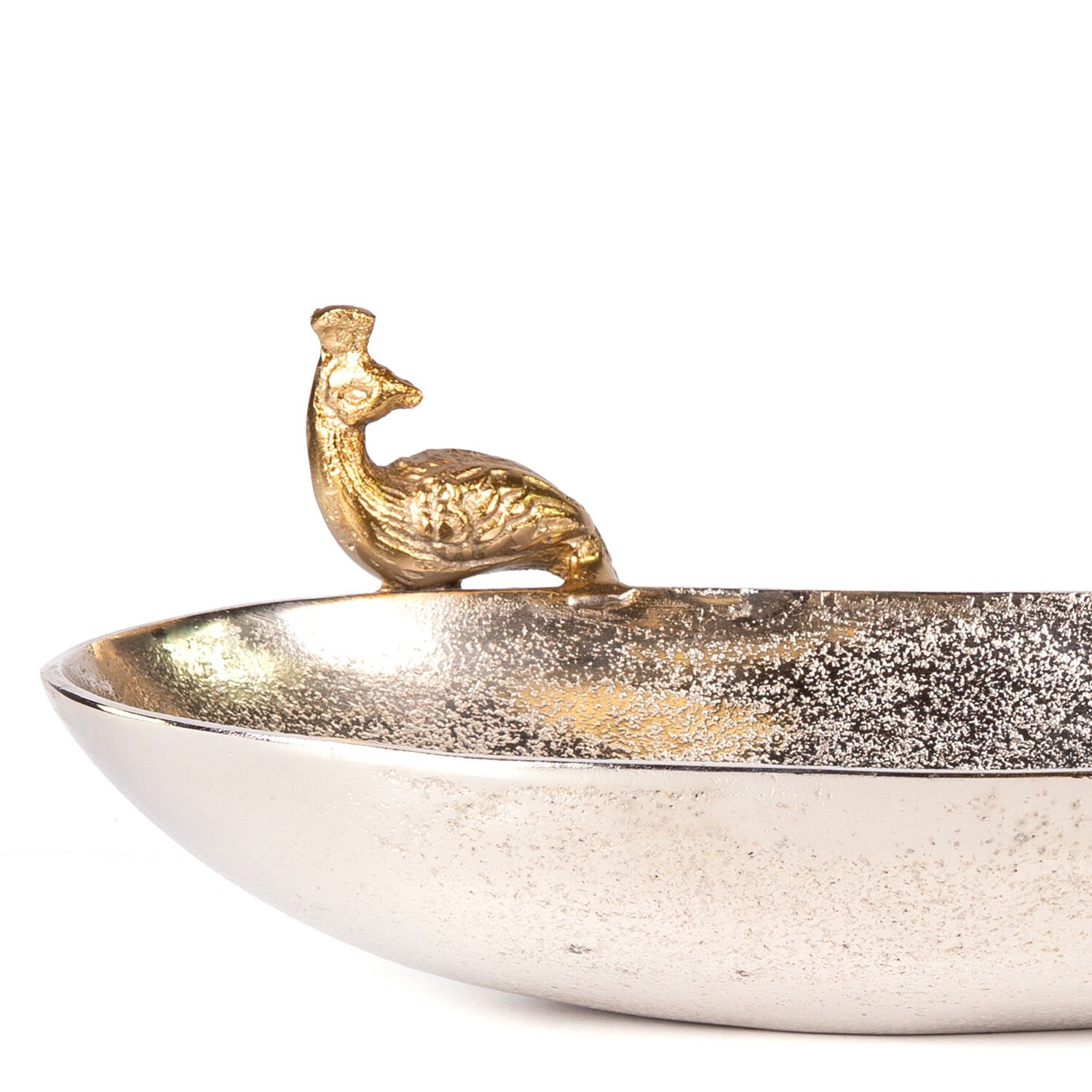 Metal Kayık Tabak Tavuskuşu Figürlü Gold-Gümüş 31x17x11 Cm.