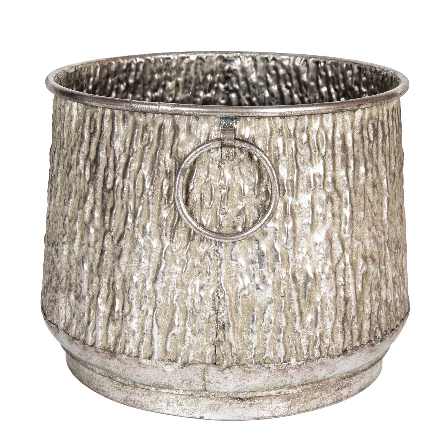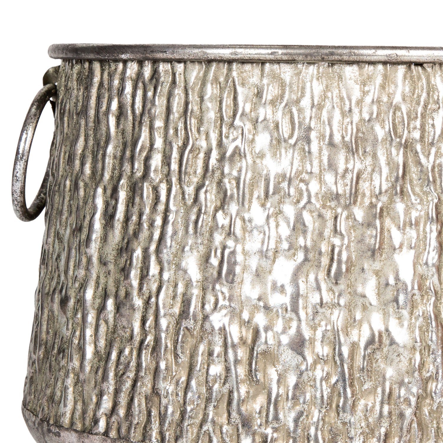 Kabartma Desenli Metal Çiçeklik Kazan Saksı Gümüş Eskitme 32x24,5 Cm.