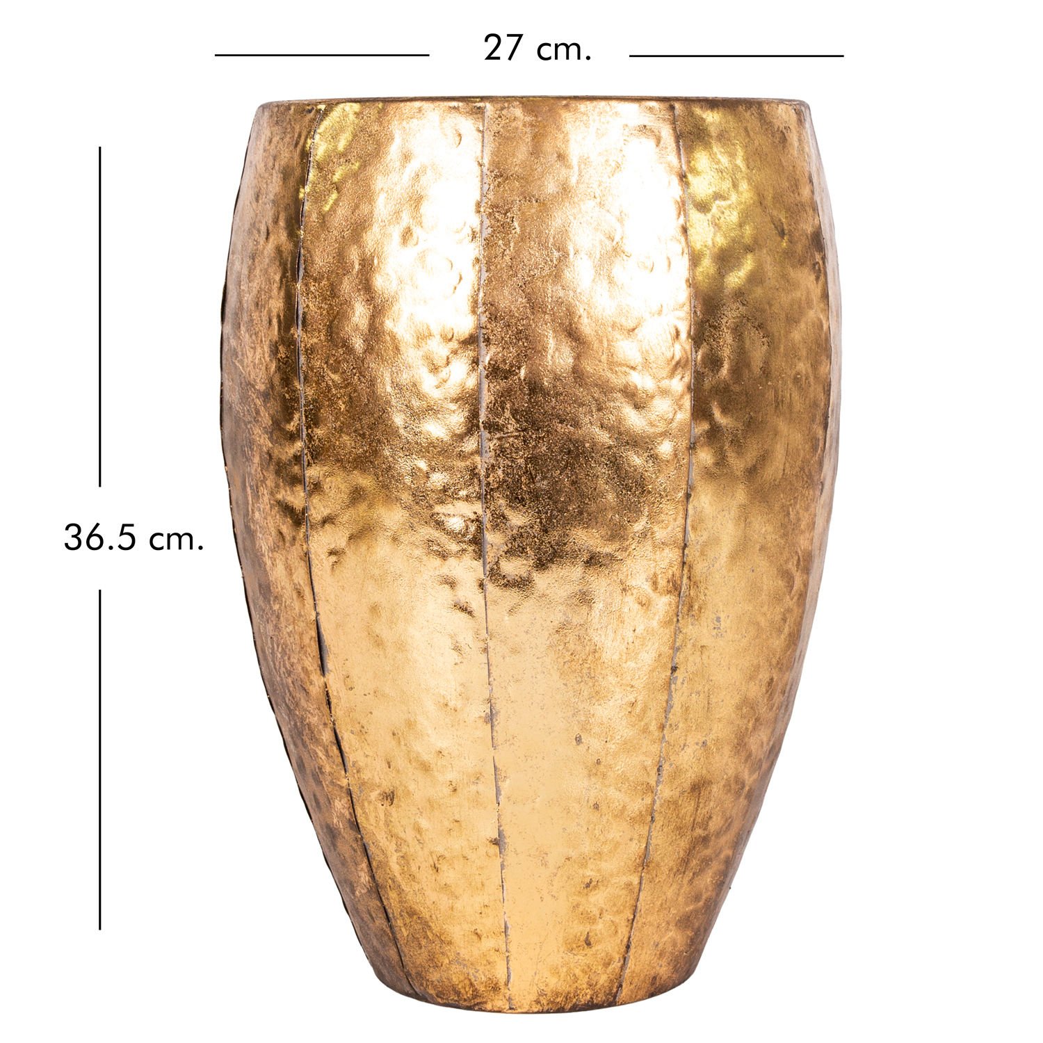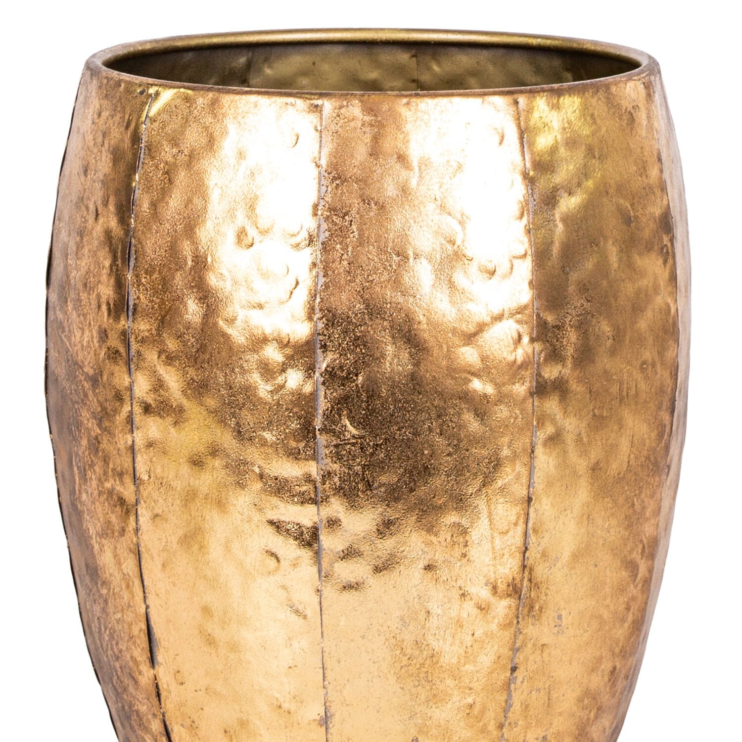 Metal Saksı Parçalı Yaprak Desenli Gold Eskitme 27x36,5 Cm.