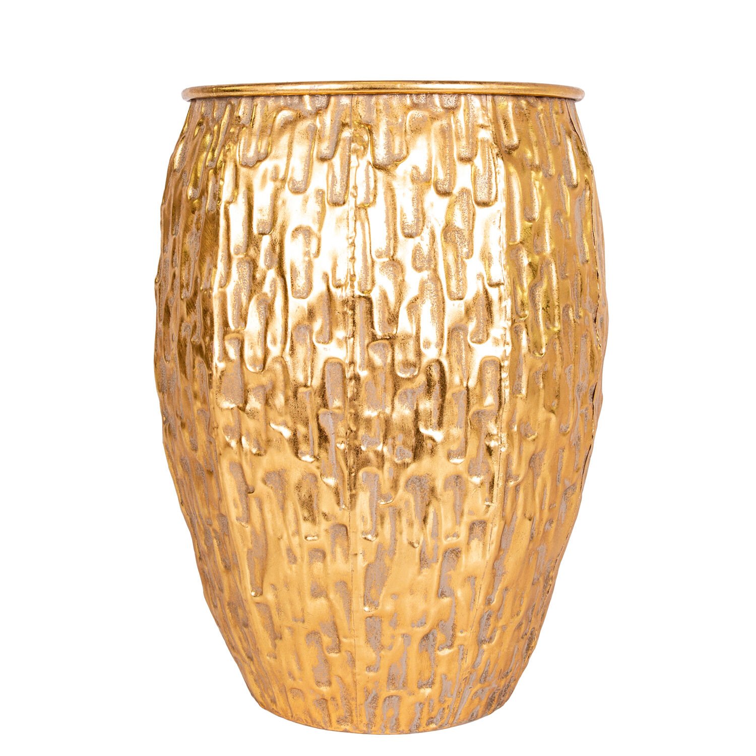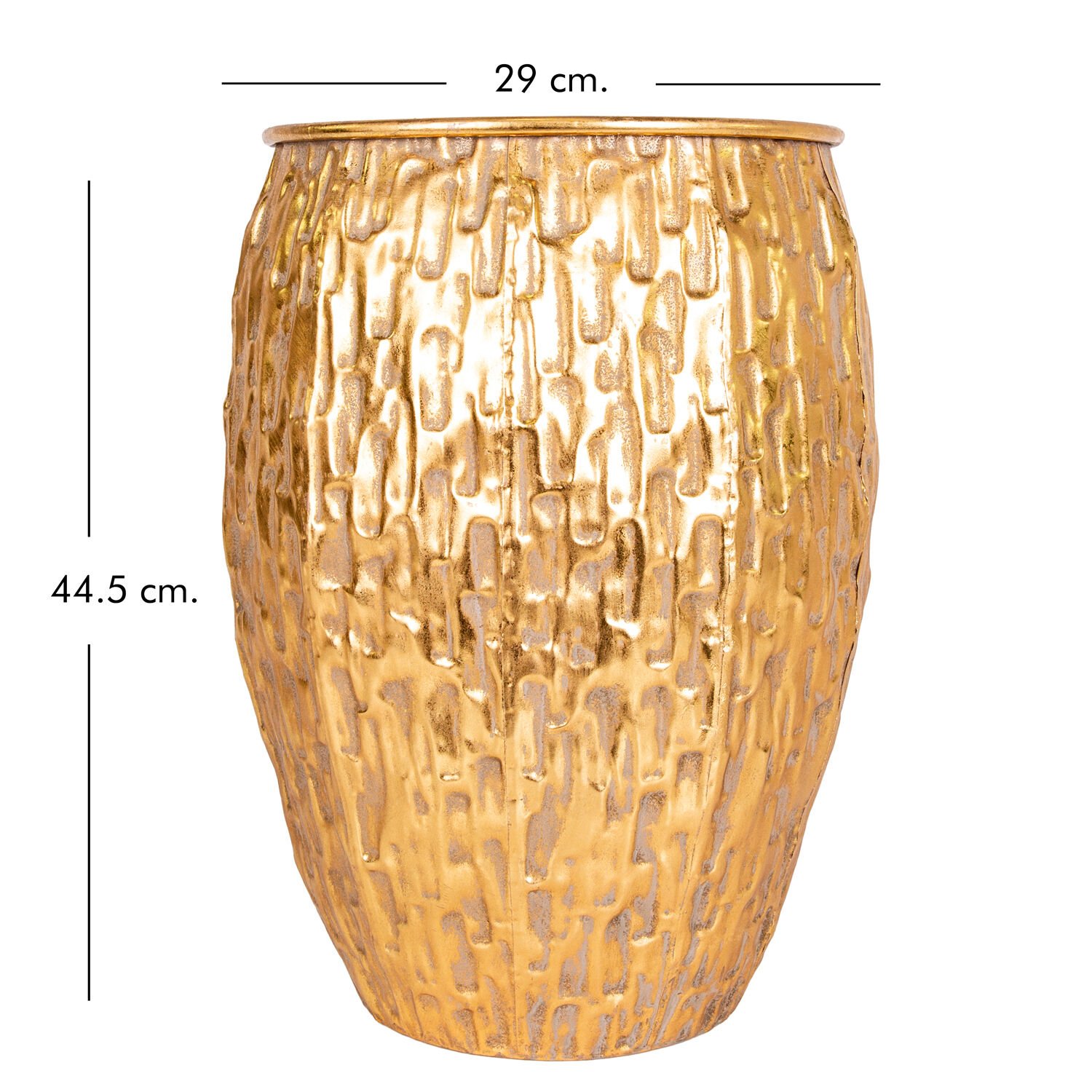 Metal Saksı Kabartma Desenli Gold 29x44,5 Cm.