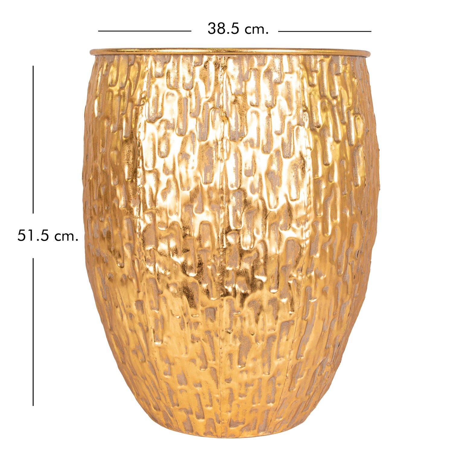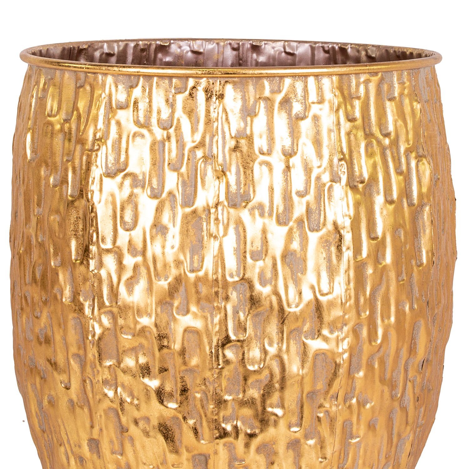 Metal Saksı Kabartma Desenli Gold 38,5x51,5 Cm.