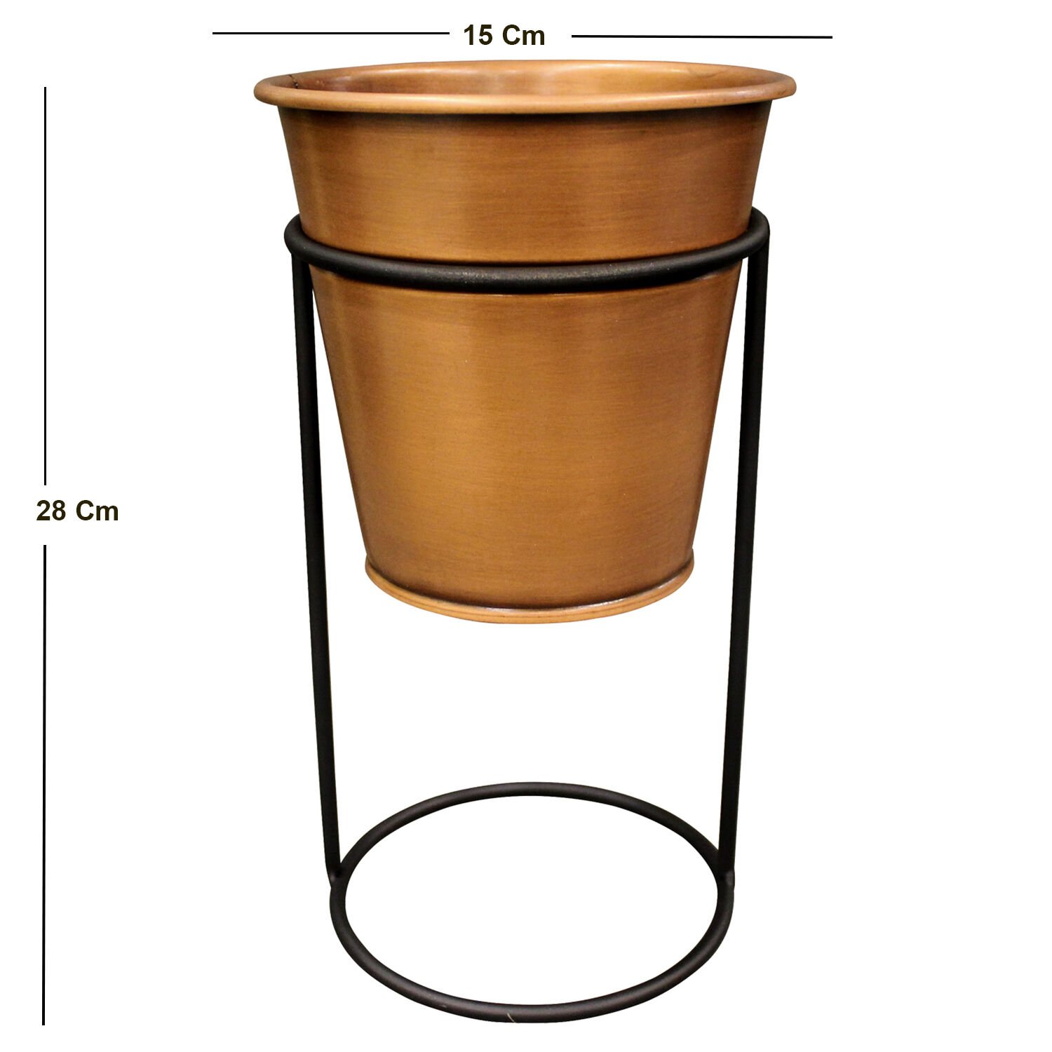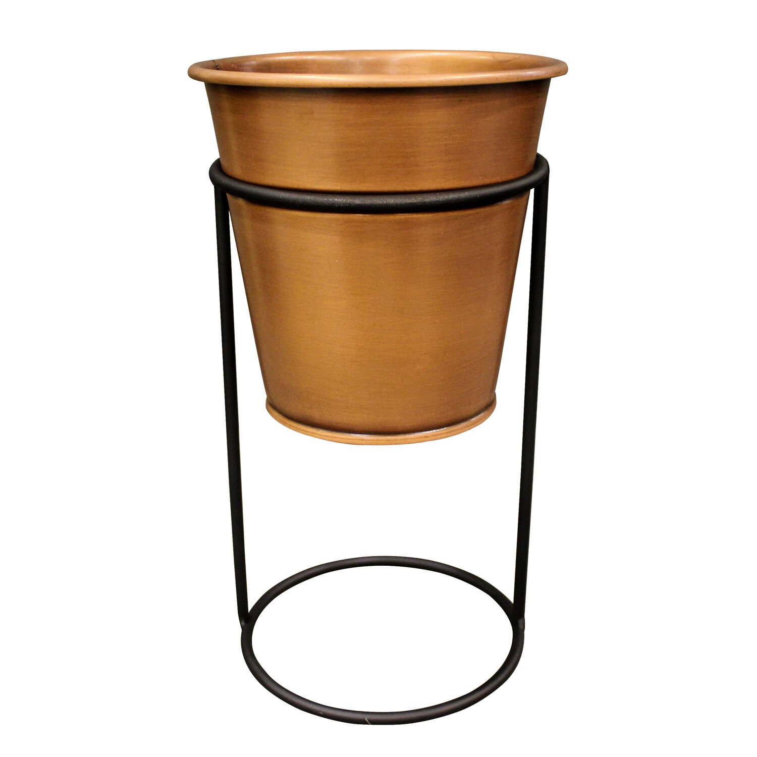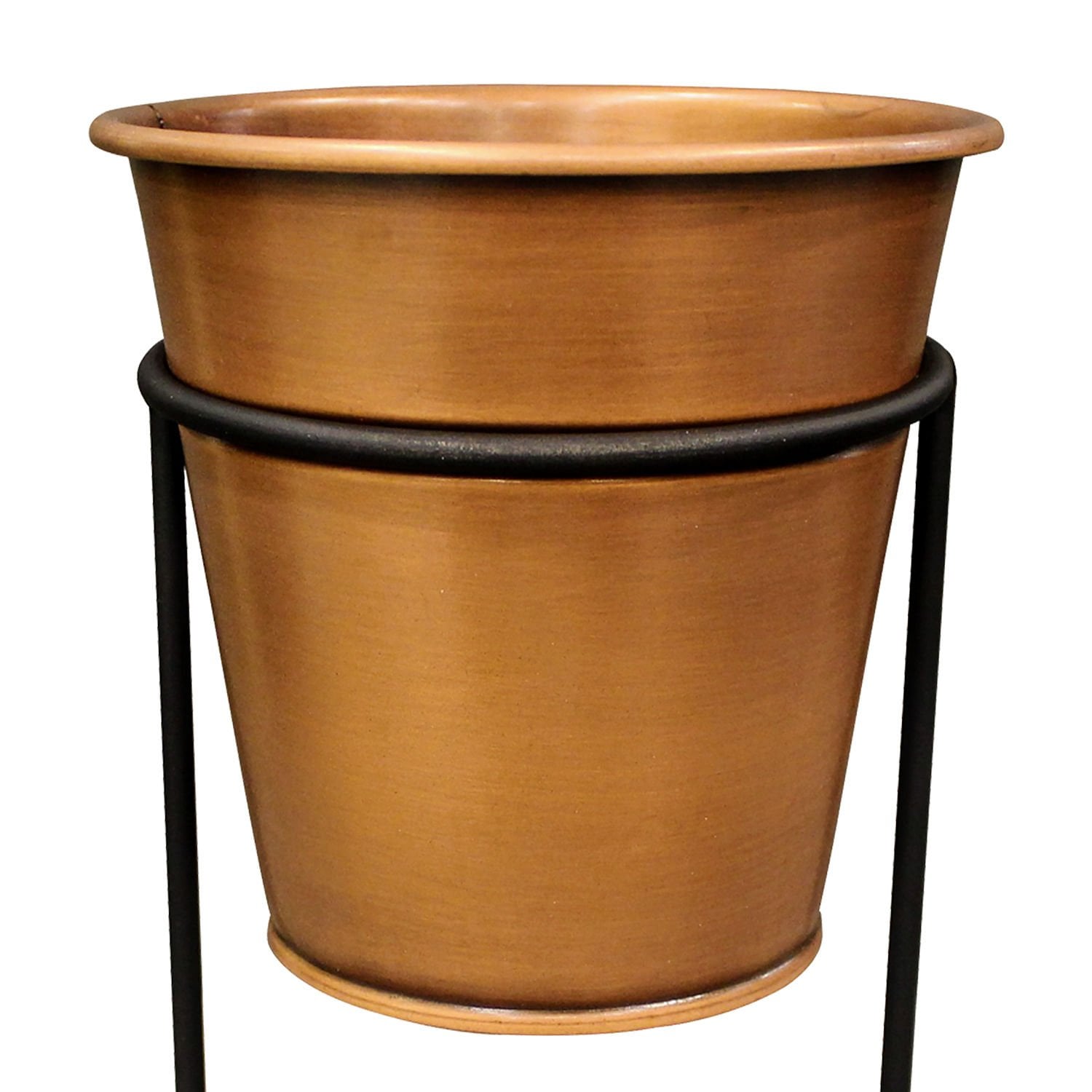 Metal Saksı, Bakır - Tekli, Standlı, 15 x 28 cm
