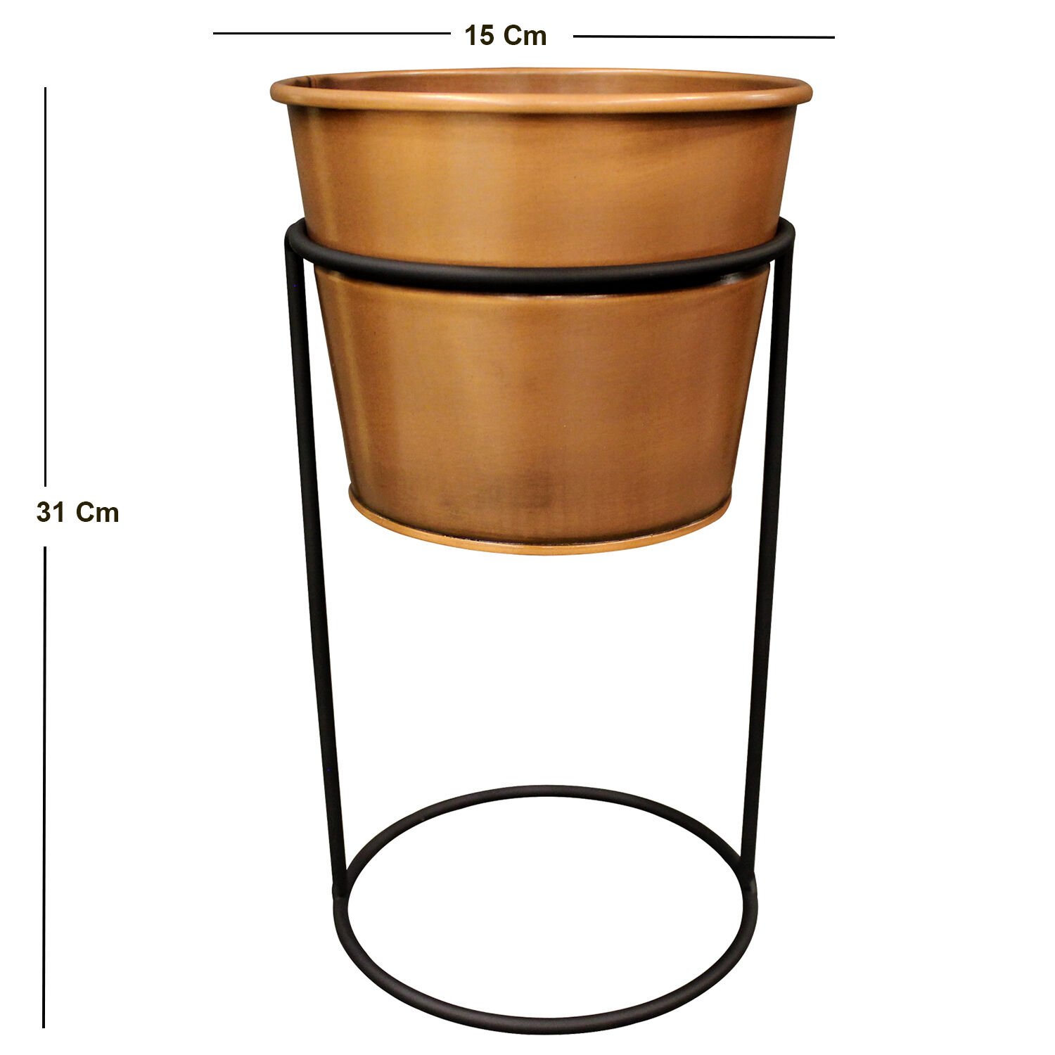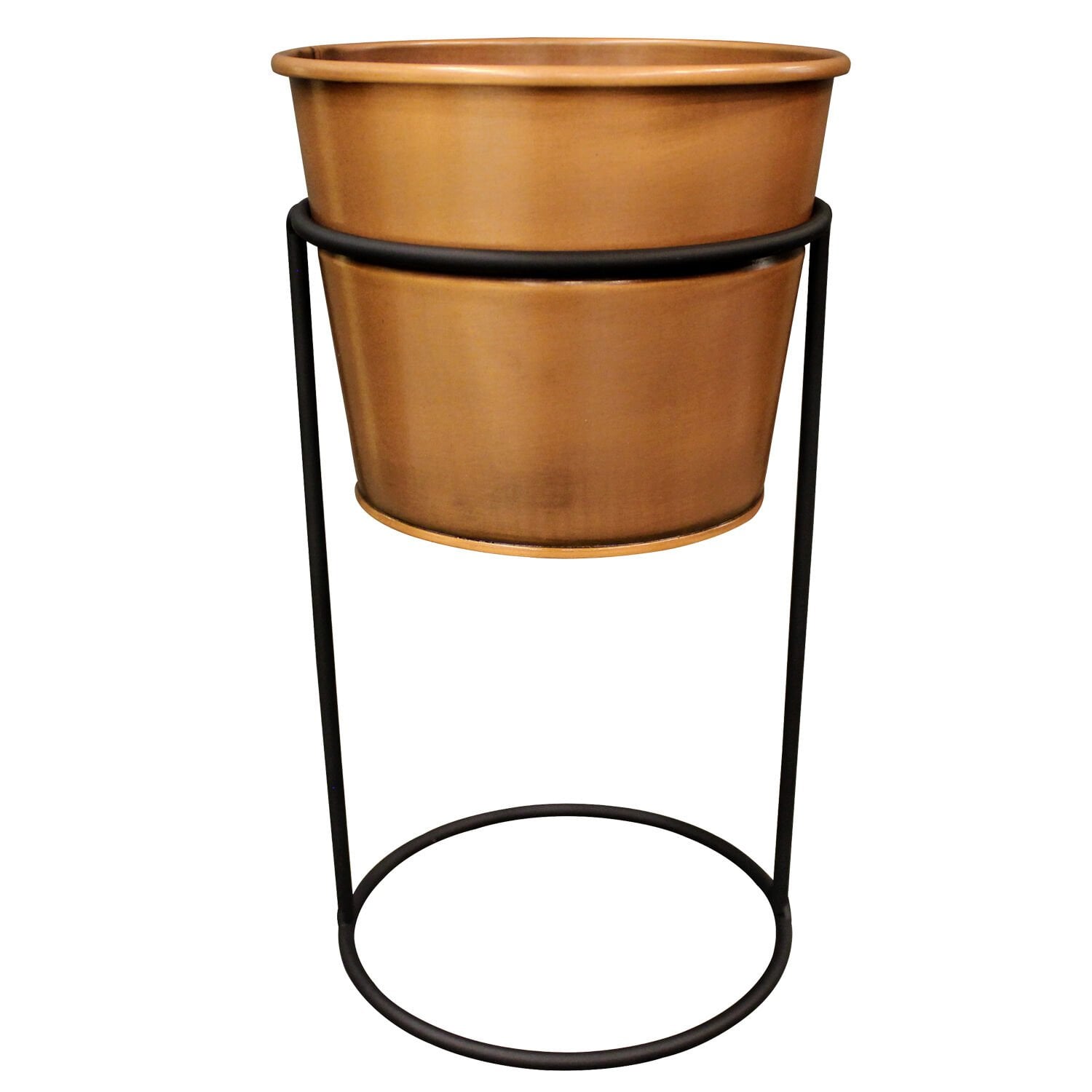 Metal Saksı, Bakır - Tekli, Standlı, 15 x 31 cm
