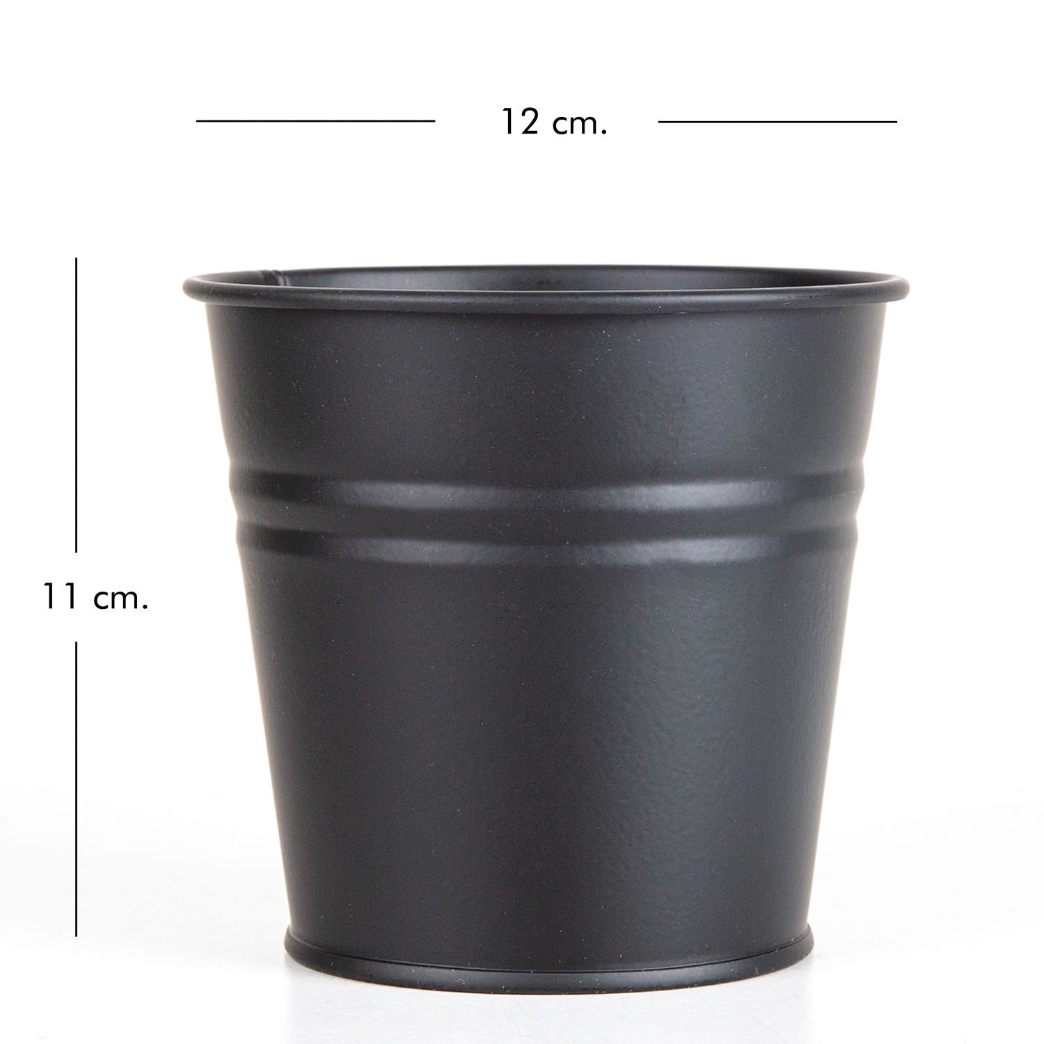 Metal Saksı, Mat, Siyah - 12x11 cm