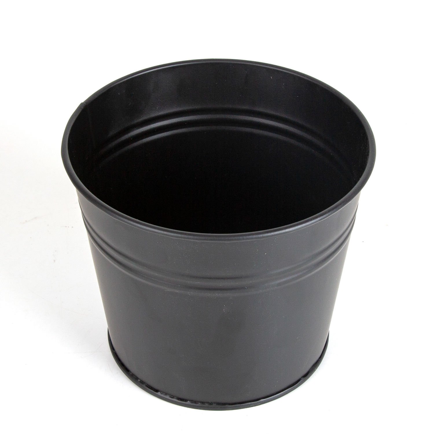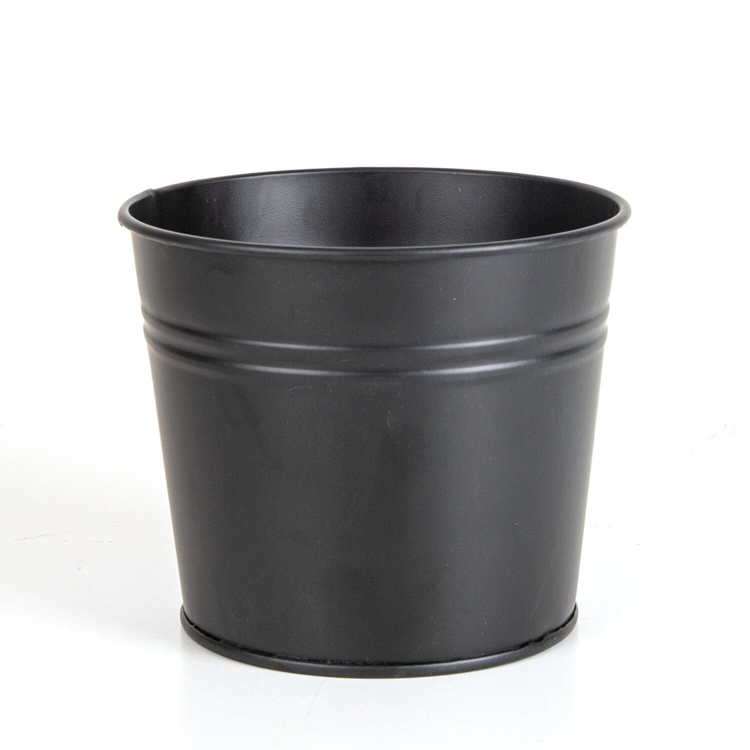 Metal Saksı, Mat, Siyah - 14x17 cm