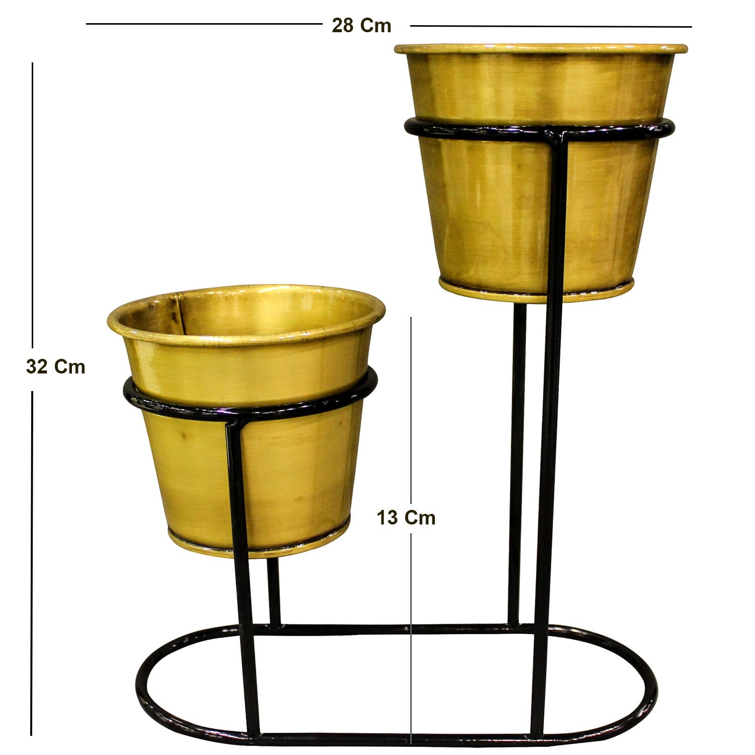 Metal Saksı, Parlak Altın - Standlı, 2'li, 28 x 13 x 32 cm