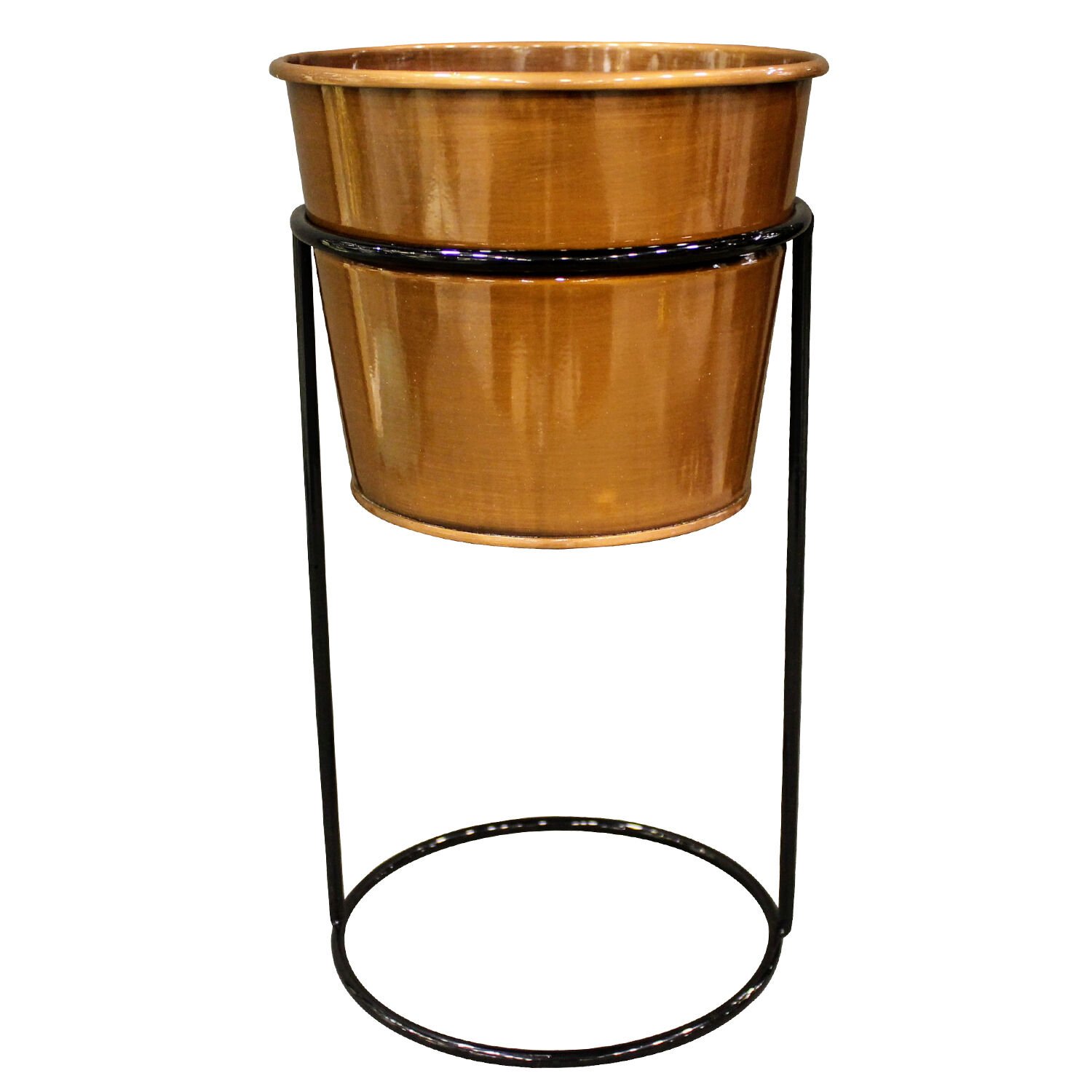 Tekli Standlı Metal Saksı Parlak Bakır 18 X 31 Cm.