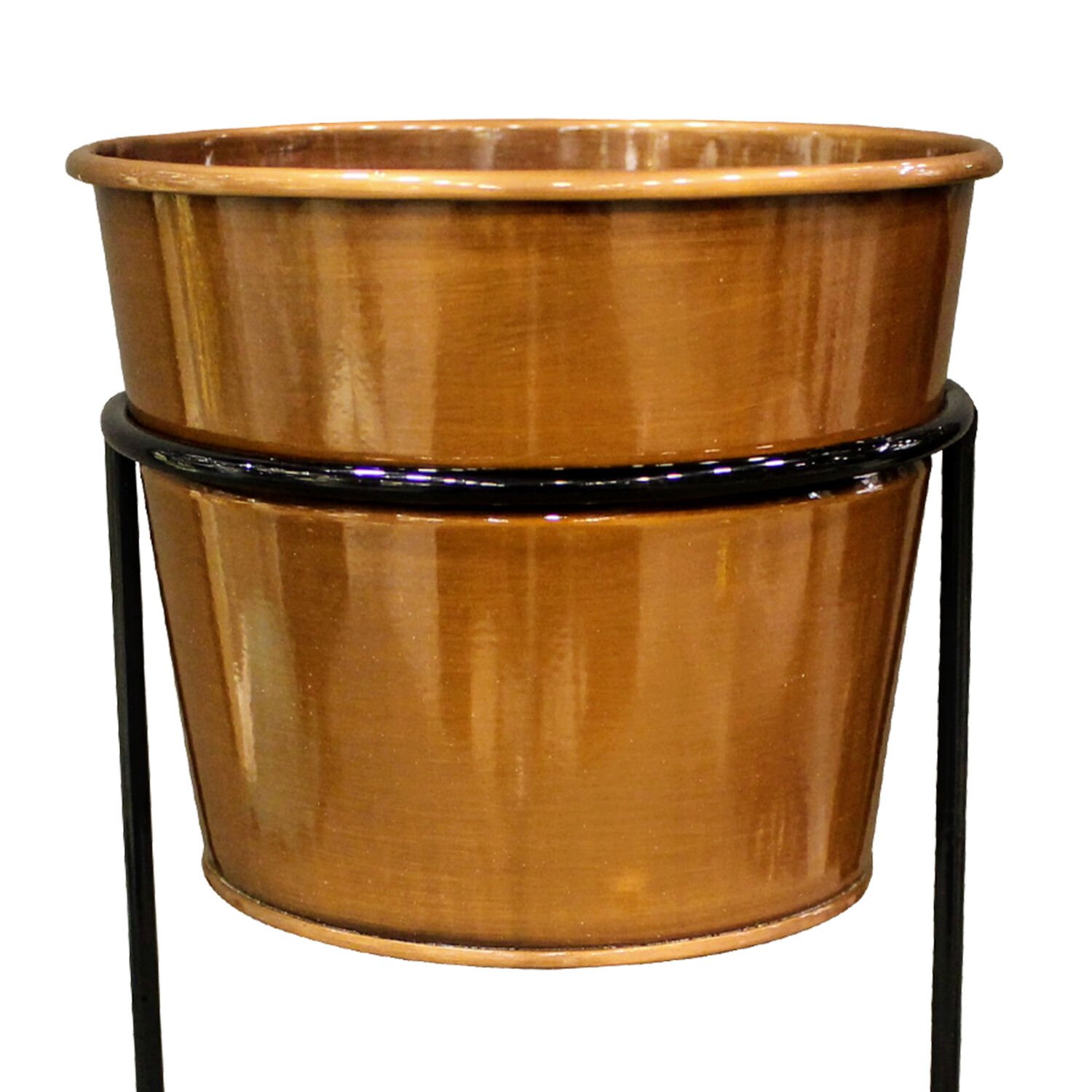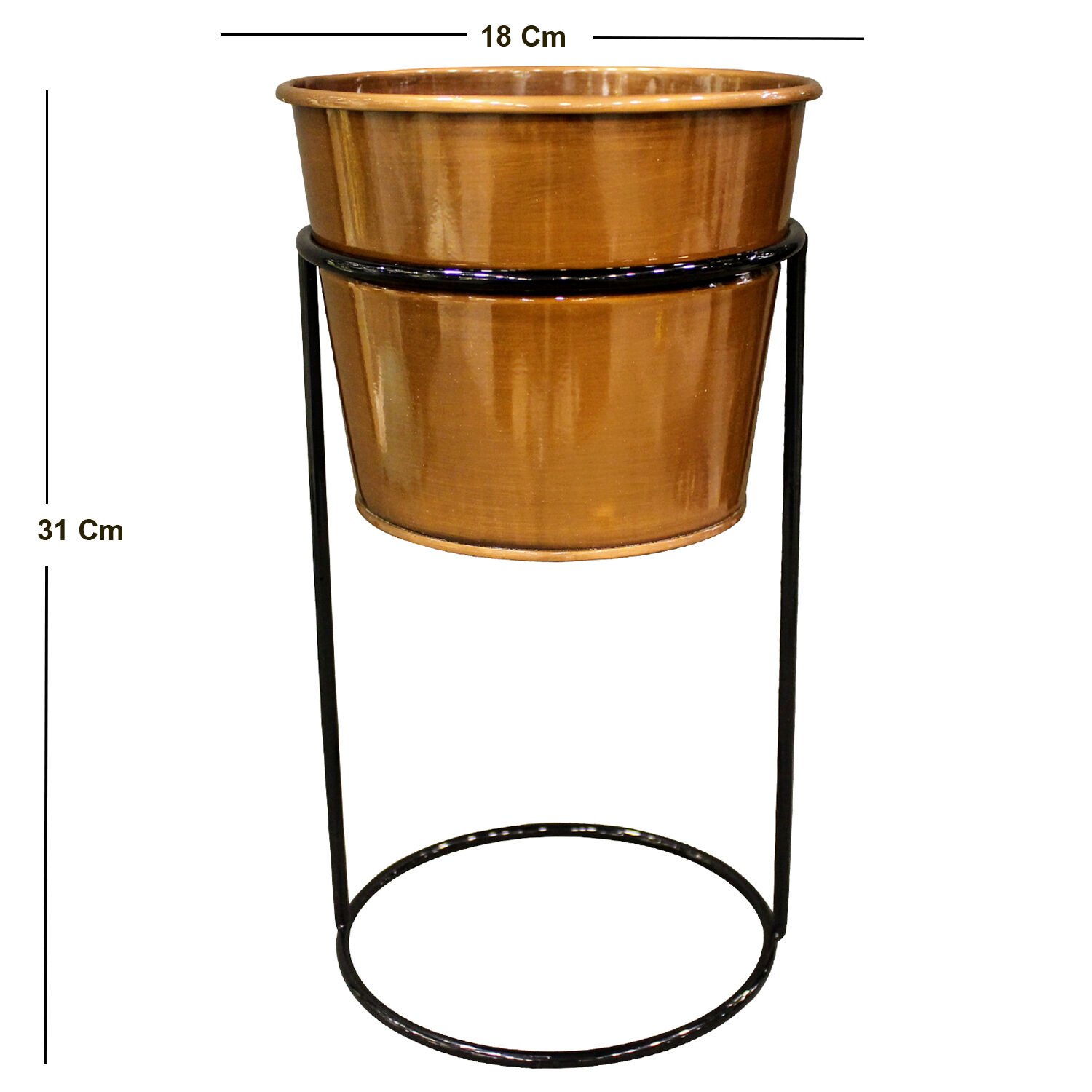 Metal Saksı, Parlak Bakır - Tekli, Standlı, 18 x 31 cm