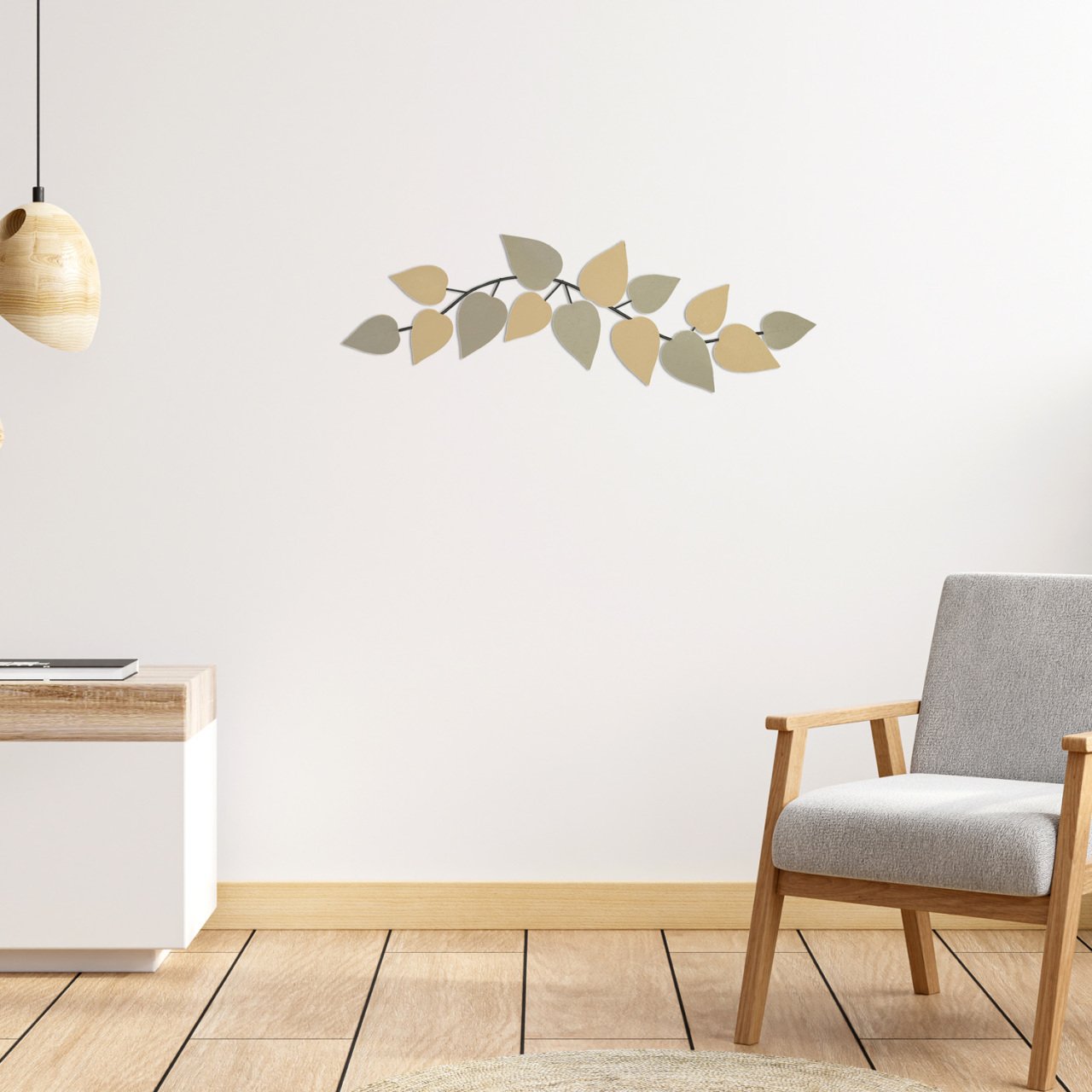 Metal Sarmaşık Yeşil/bej Duvar Panosu 95x35 Cm