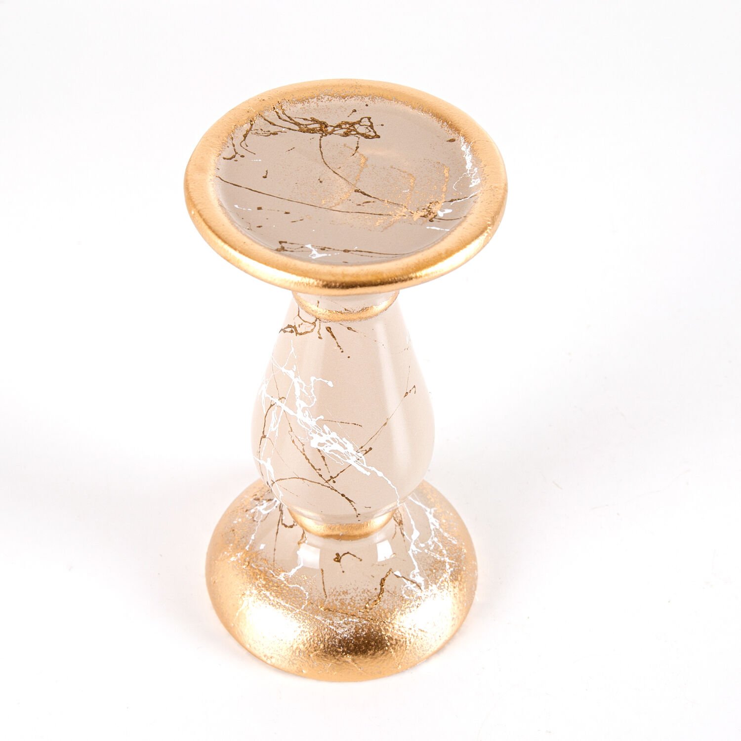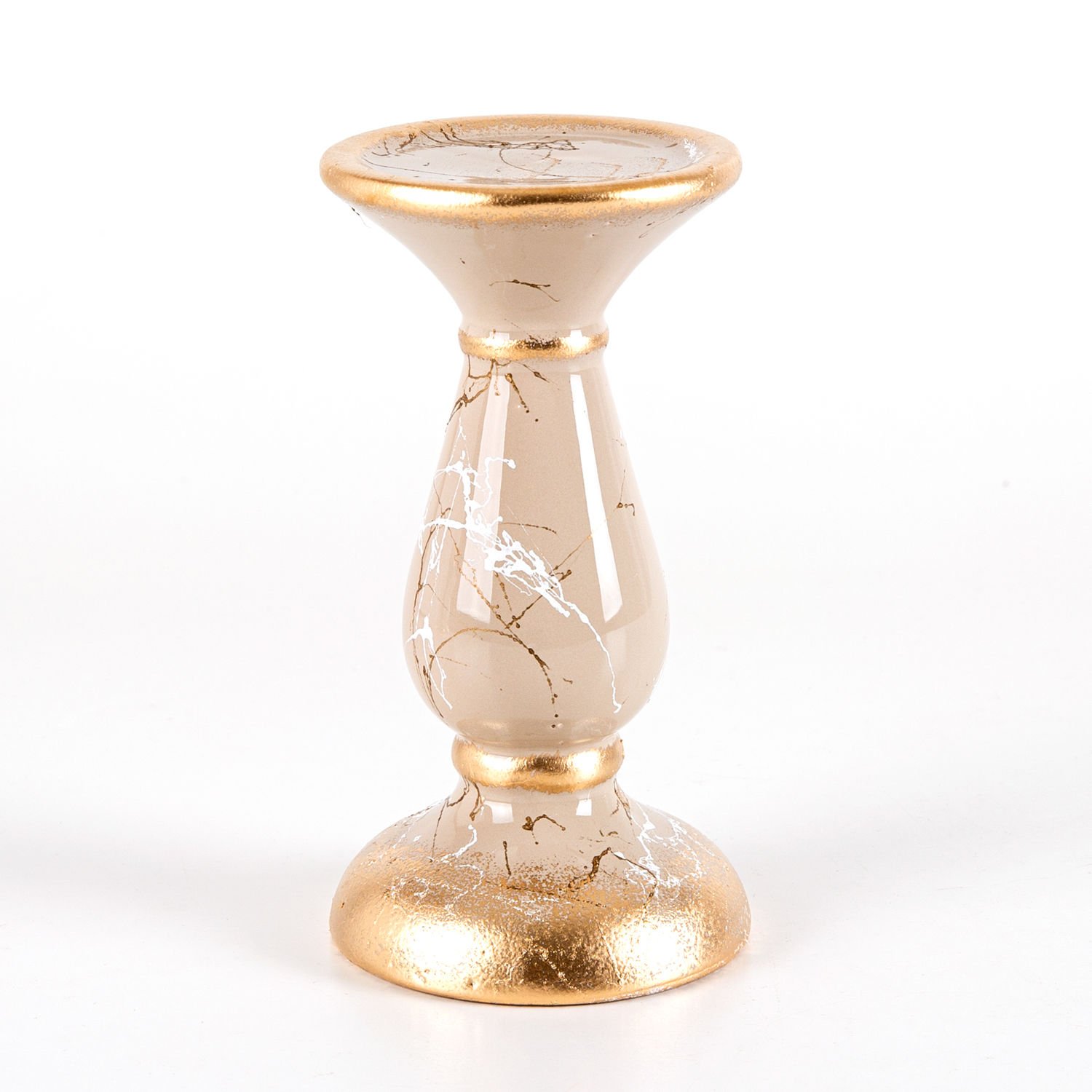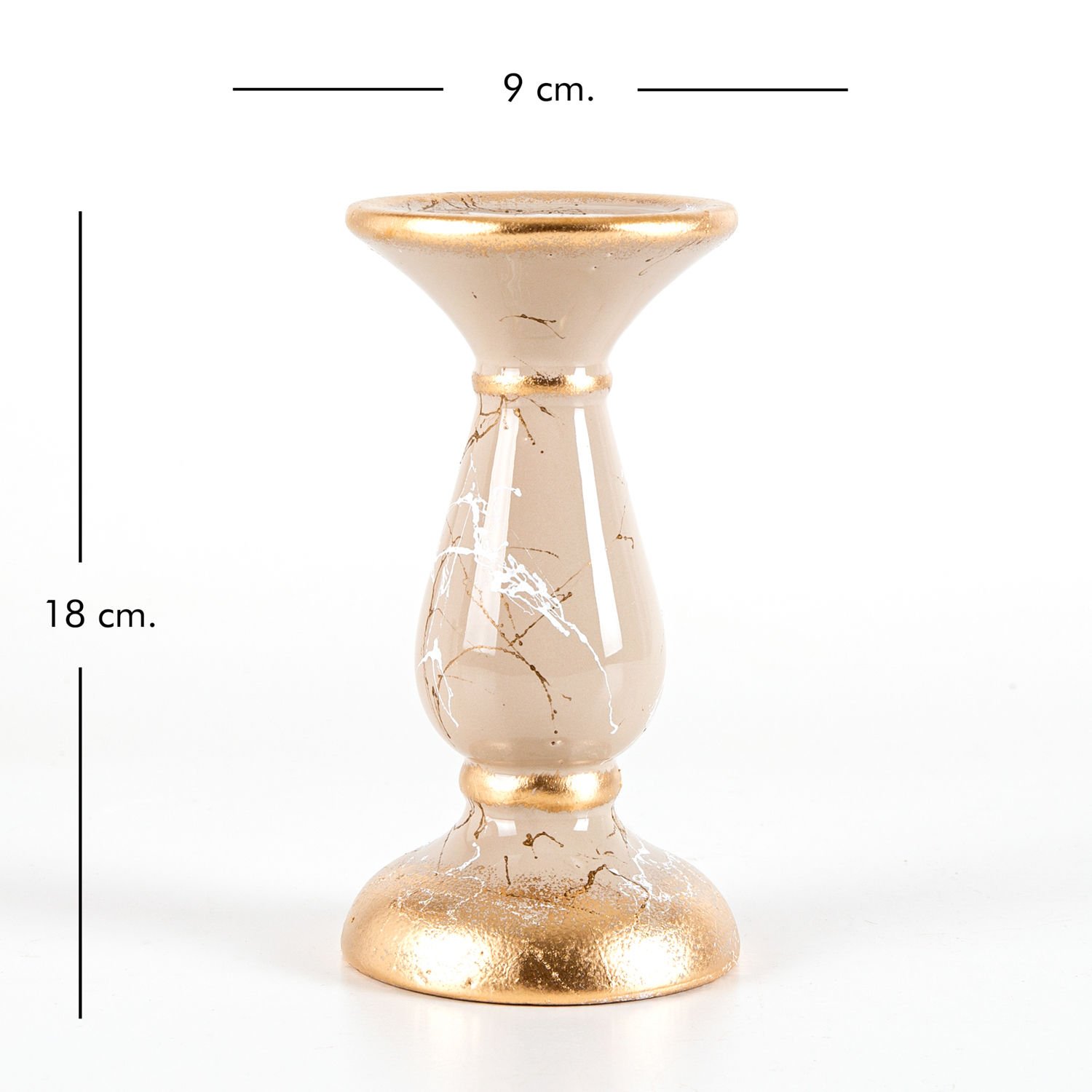 Mumluk, Seramik, Mermer Dekor, Bej - No:2, 18 cm