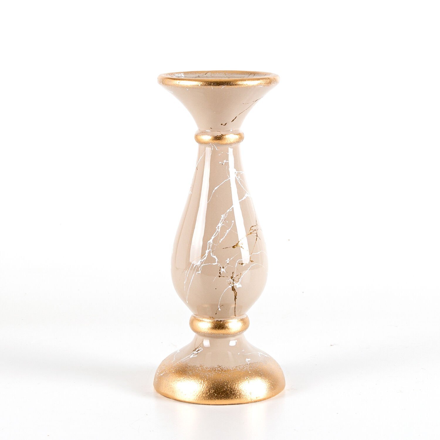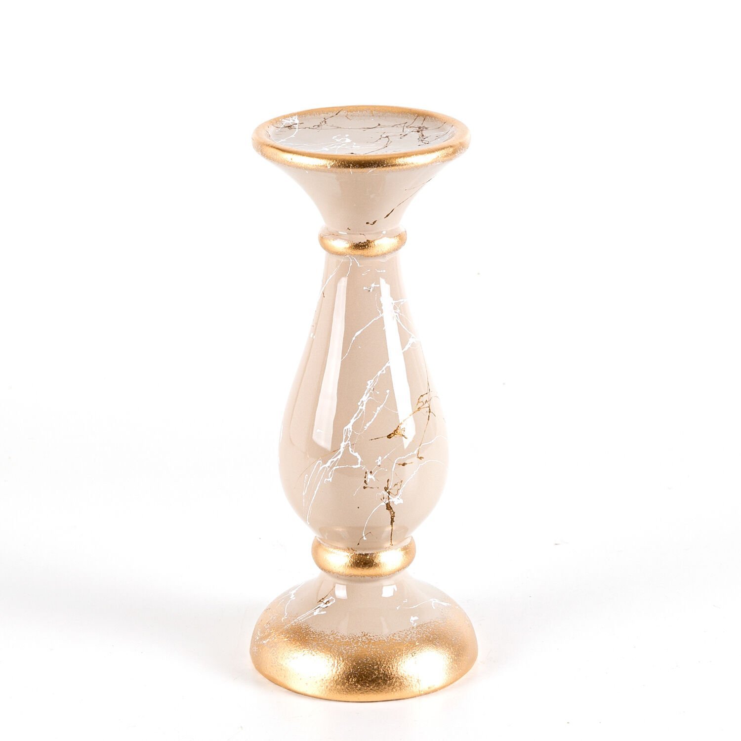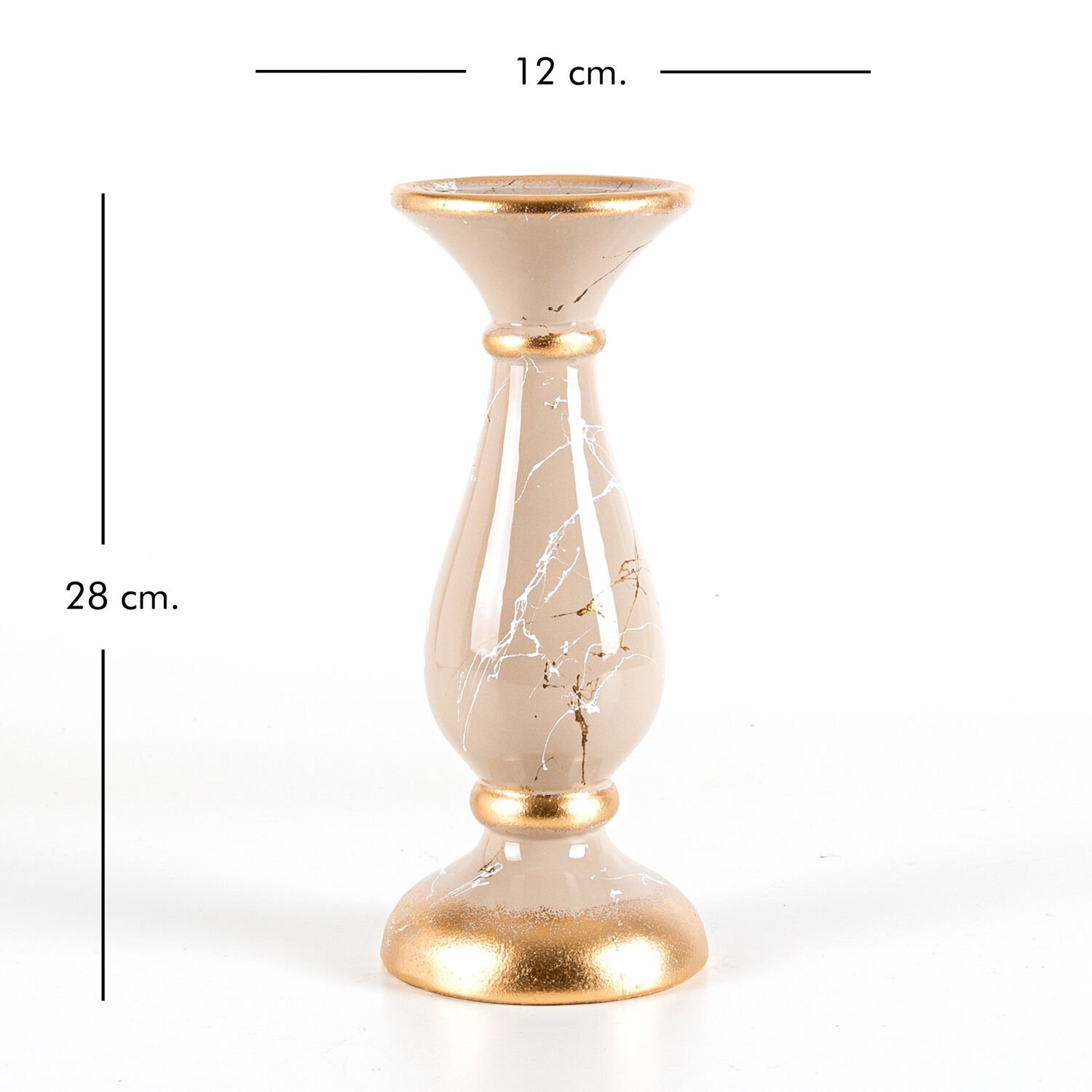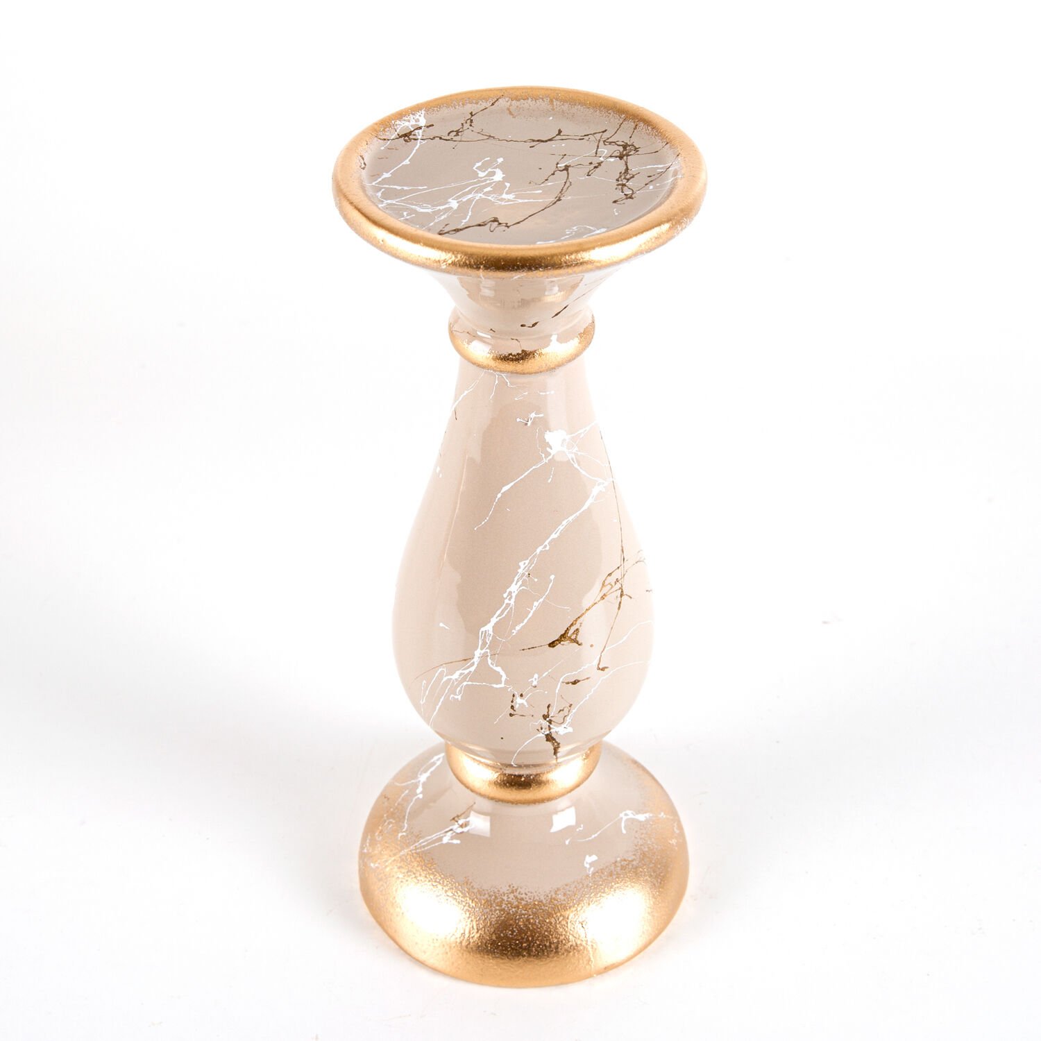 Mumluk, Seramik, Mermer Dekor, Bej - No:4, 28 cm