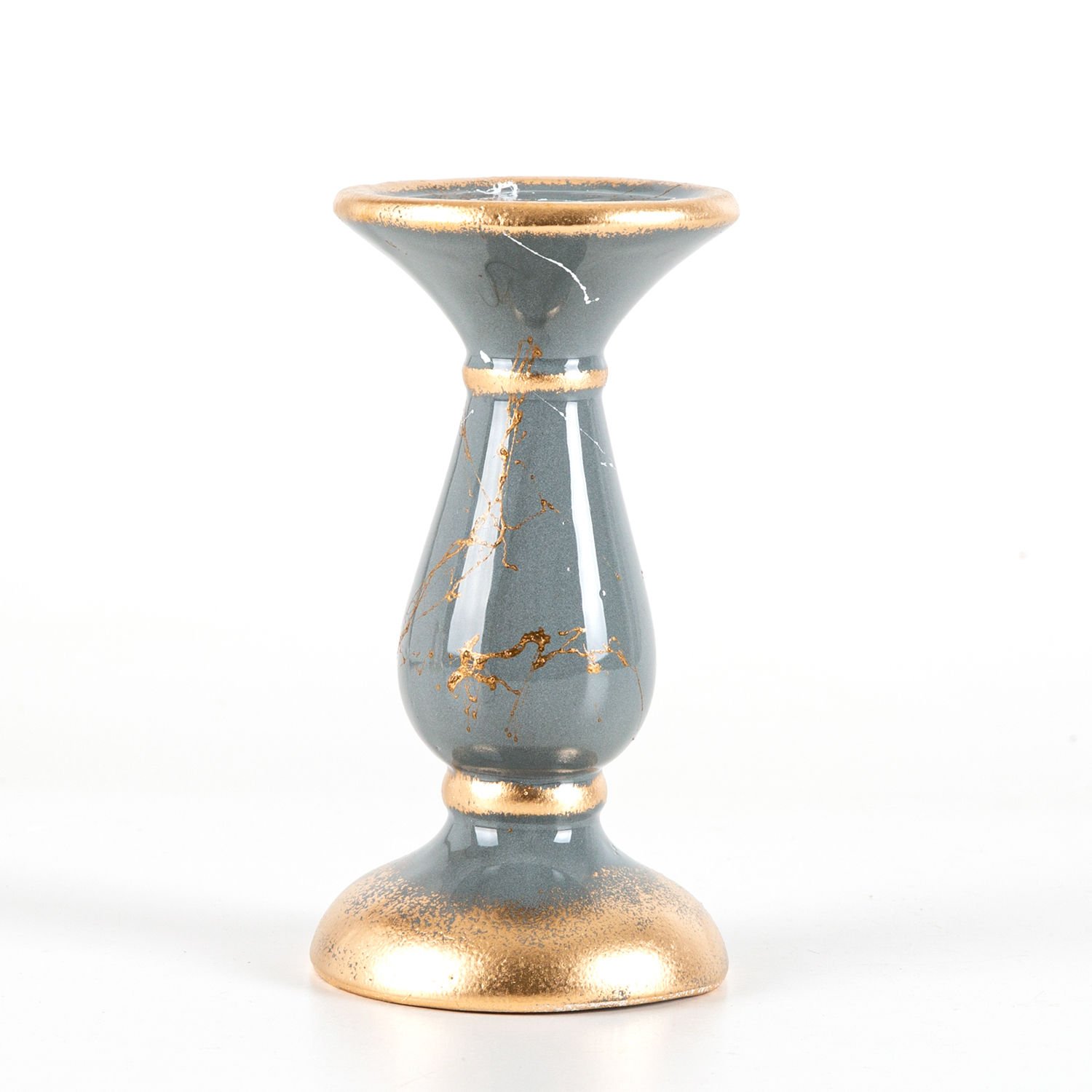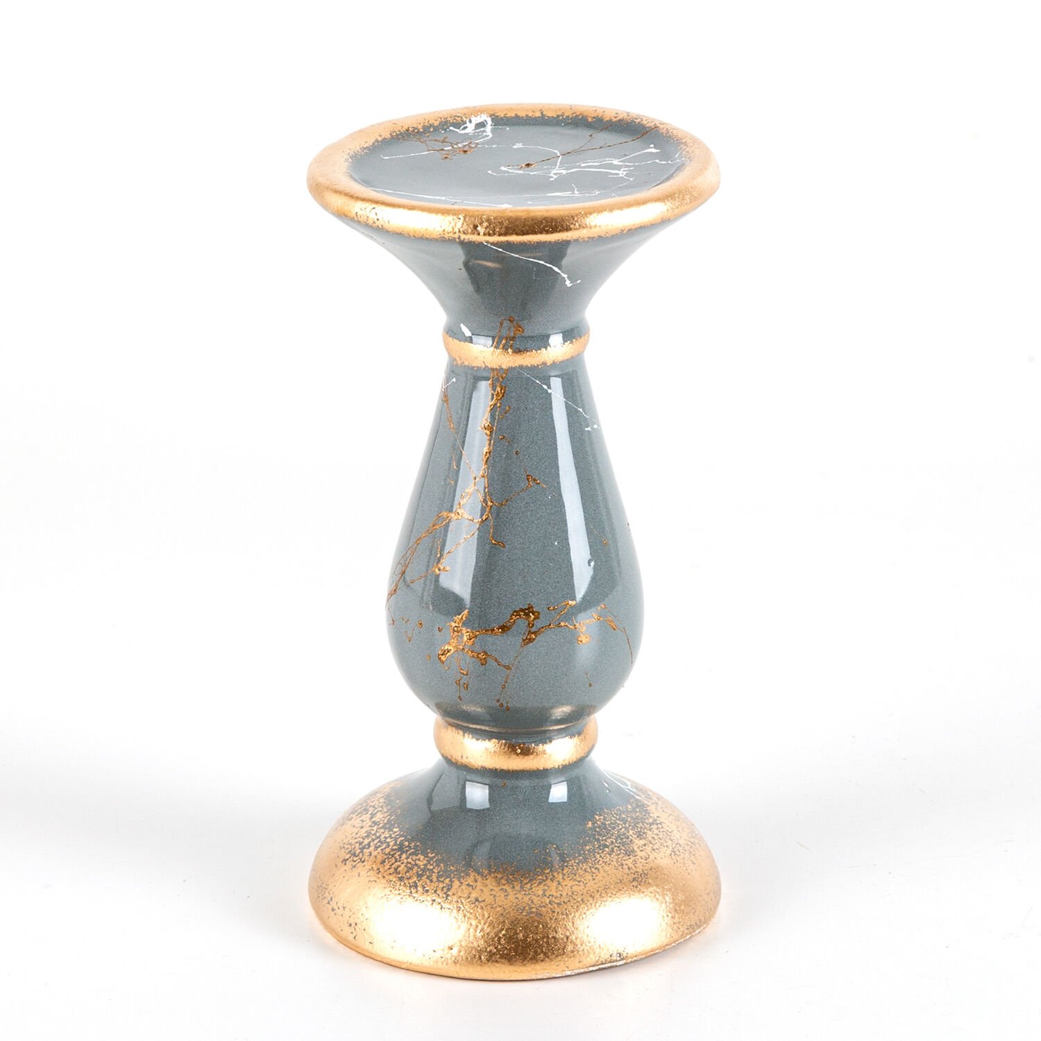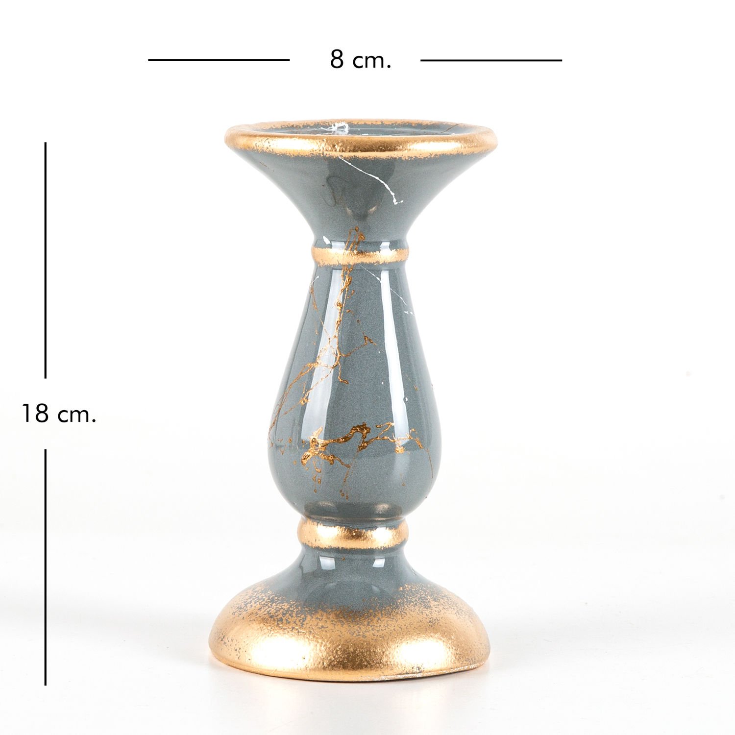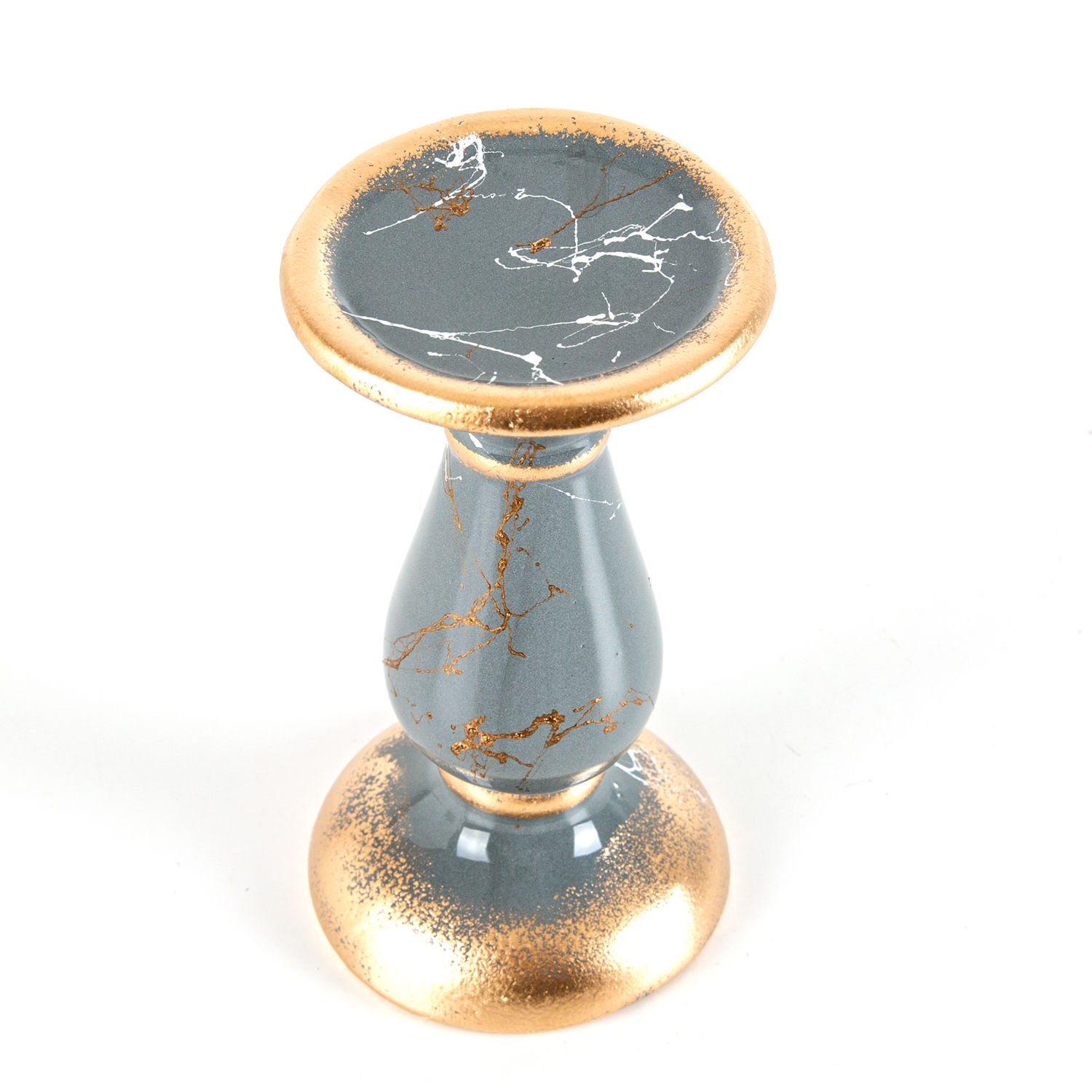 Mumluk, Seramik, Mermer Dekor, Gri - No:2, 18 cm