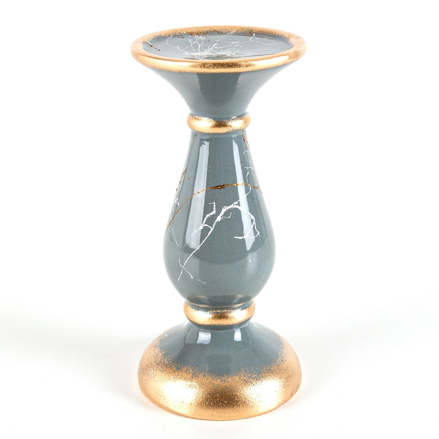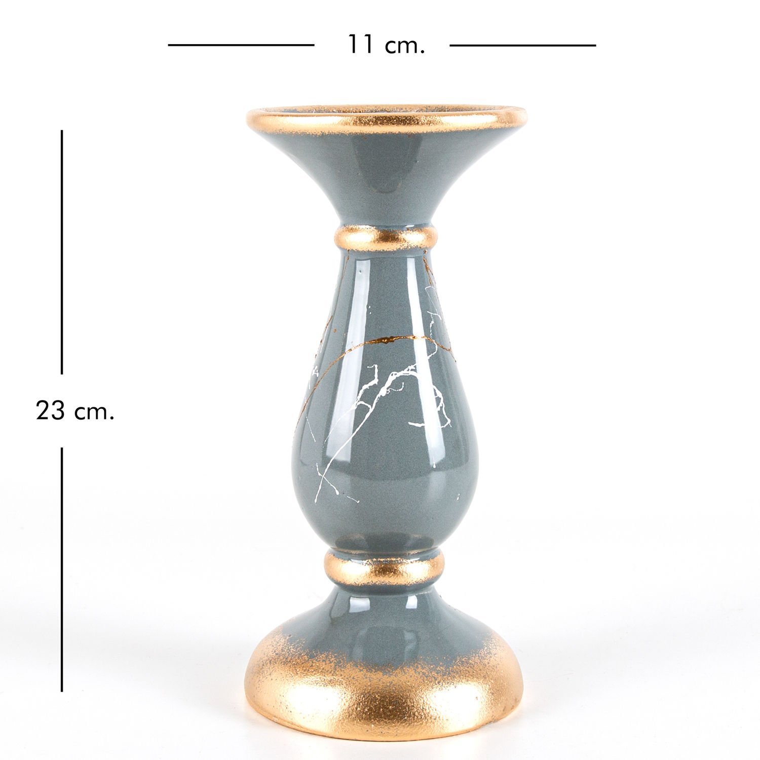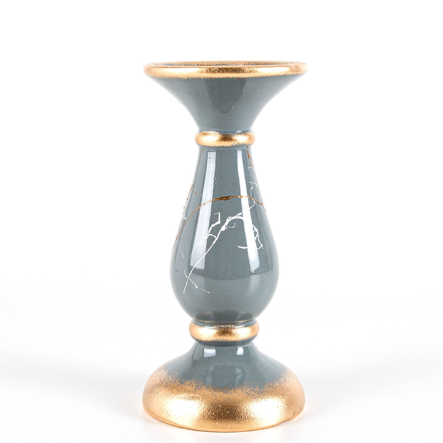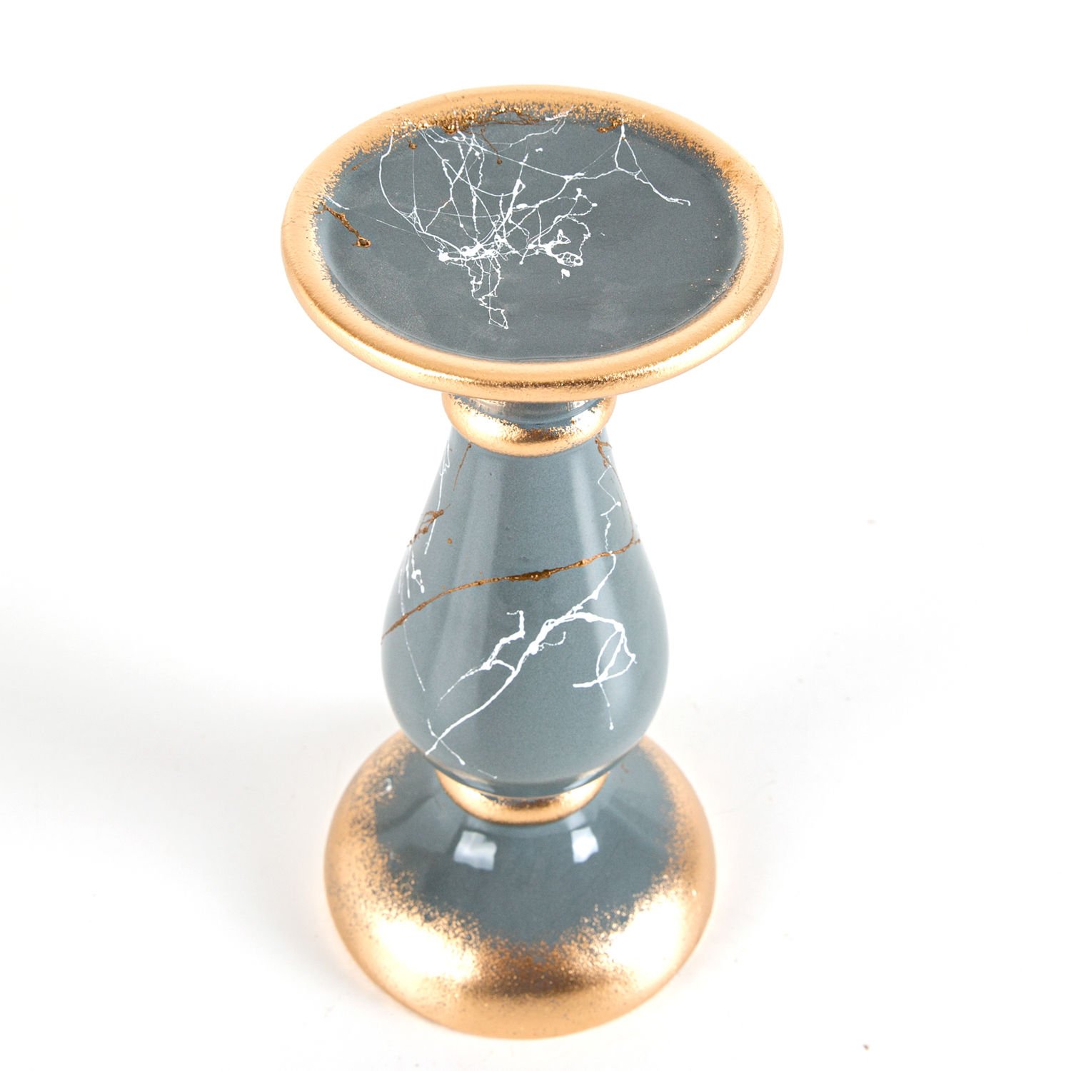 Mumluk, Seramik, Mermer Dekor, Gri - No:3, 23 cm