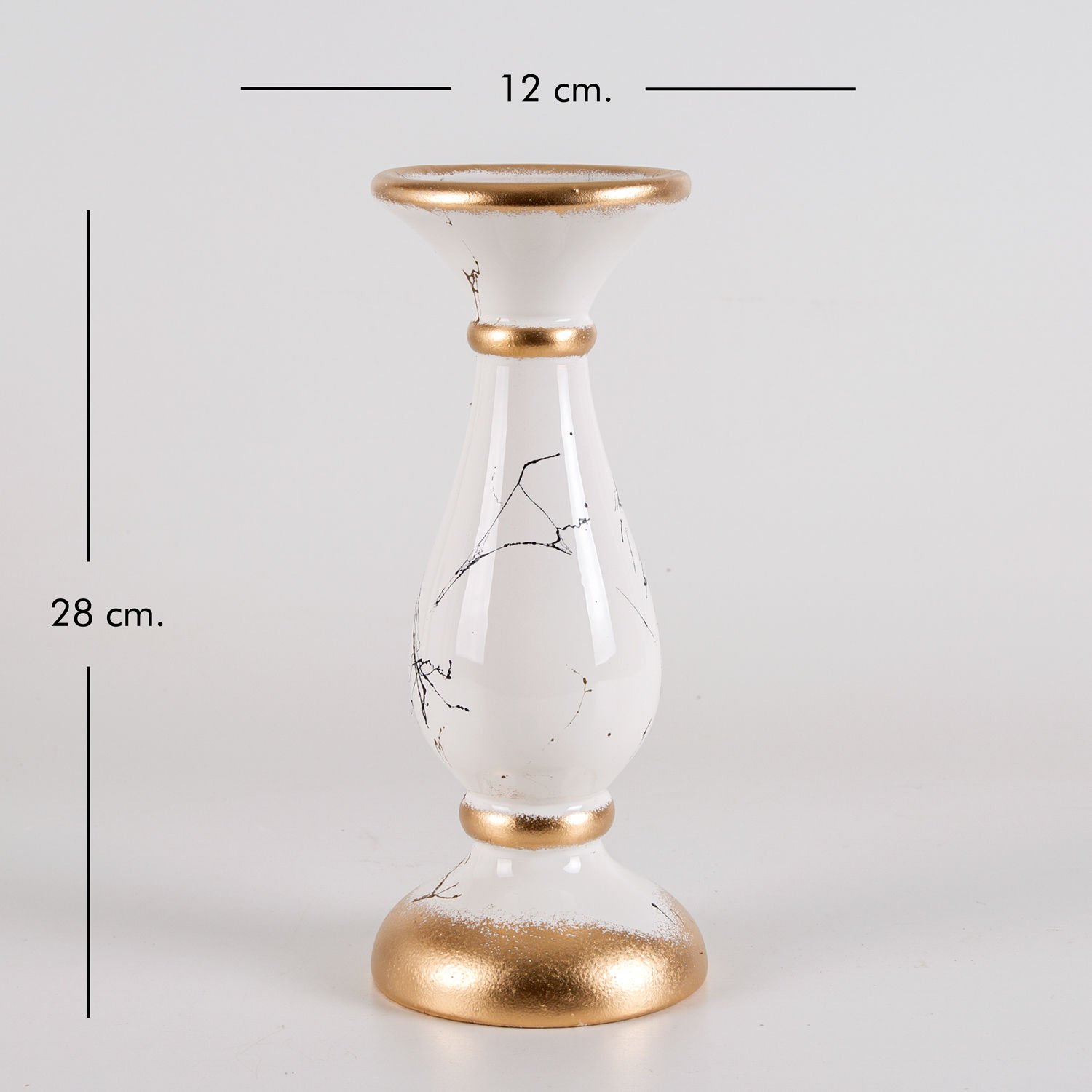 Mumluk, Seramik, Mermer Dekor, Krem - No:4, 28 cm