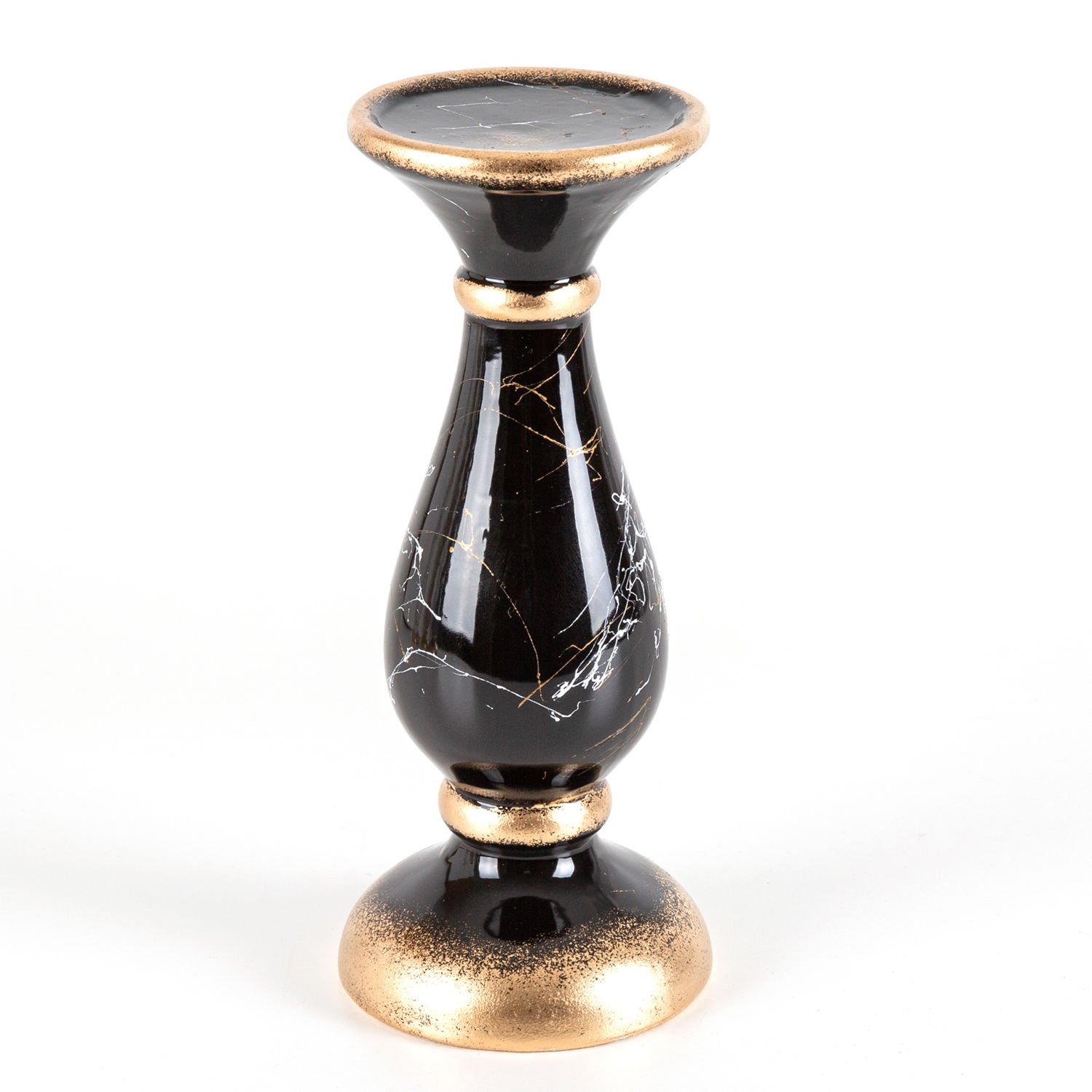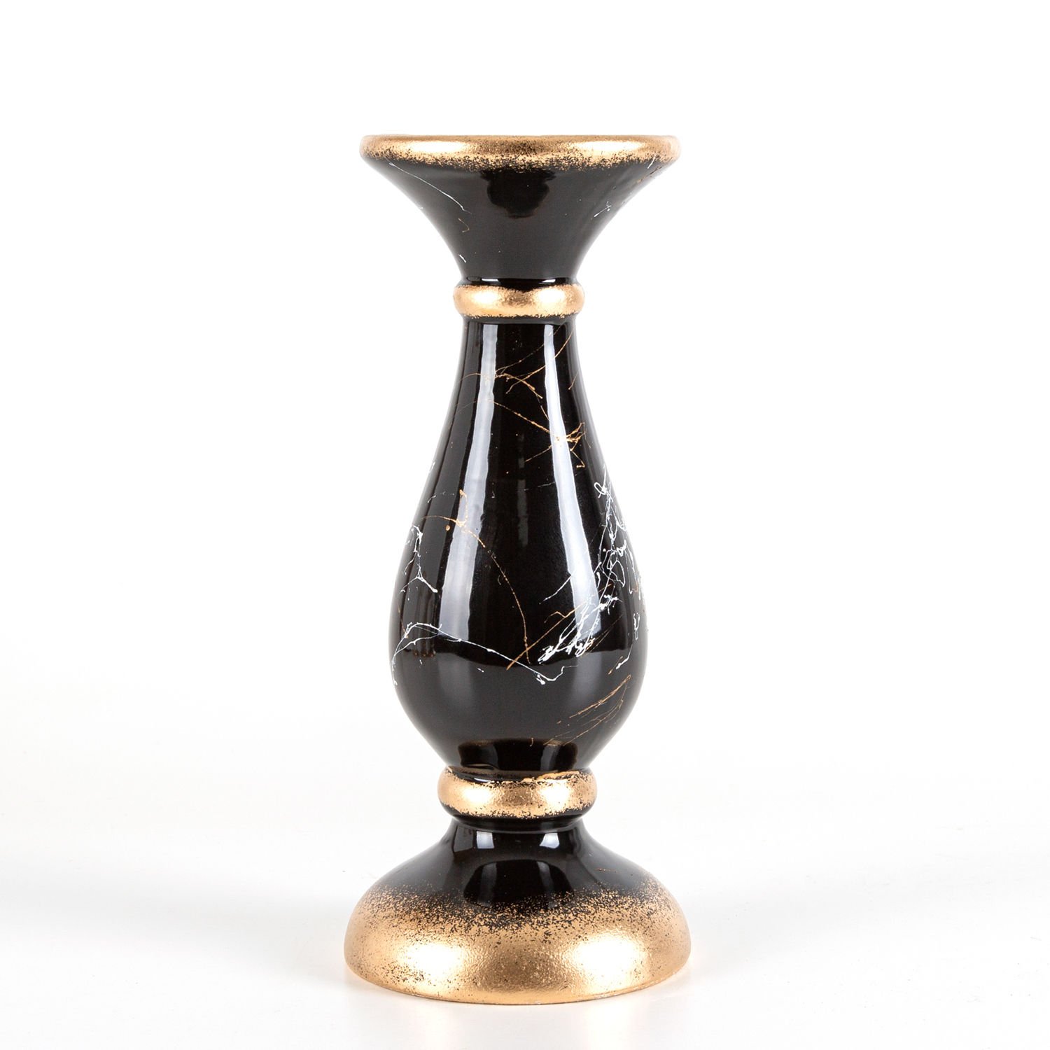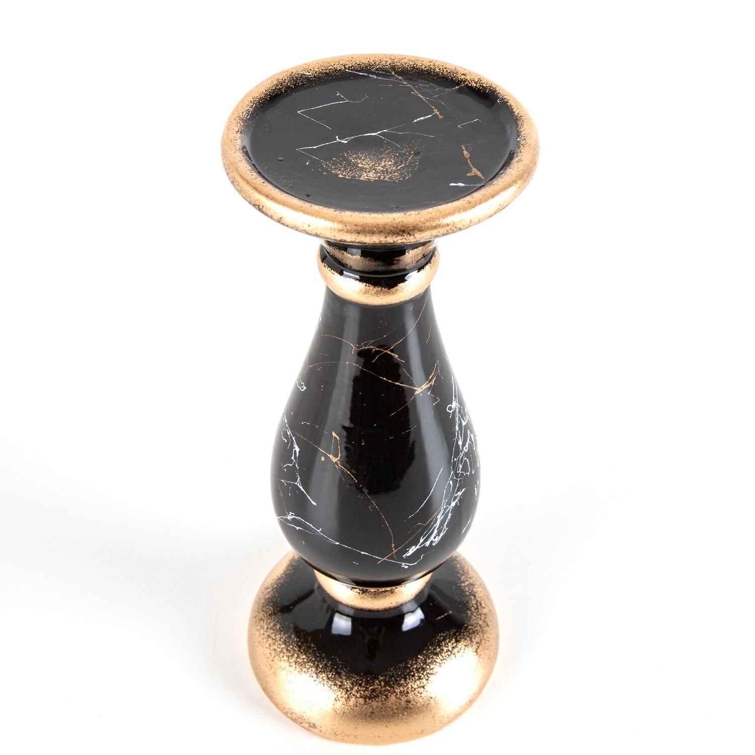 Mumluk, Seramik, Mermer Dekor, Siyah - No:4, 28 cm