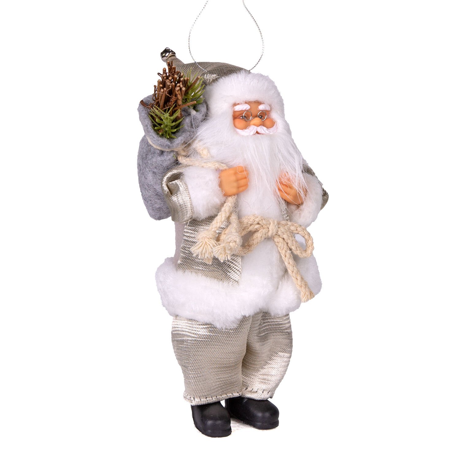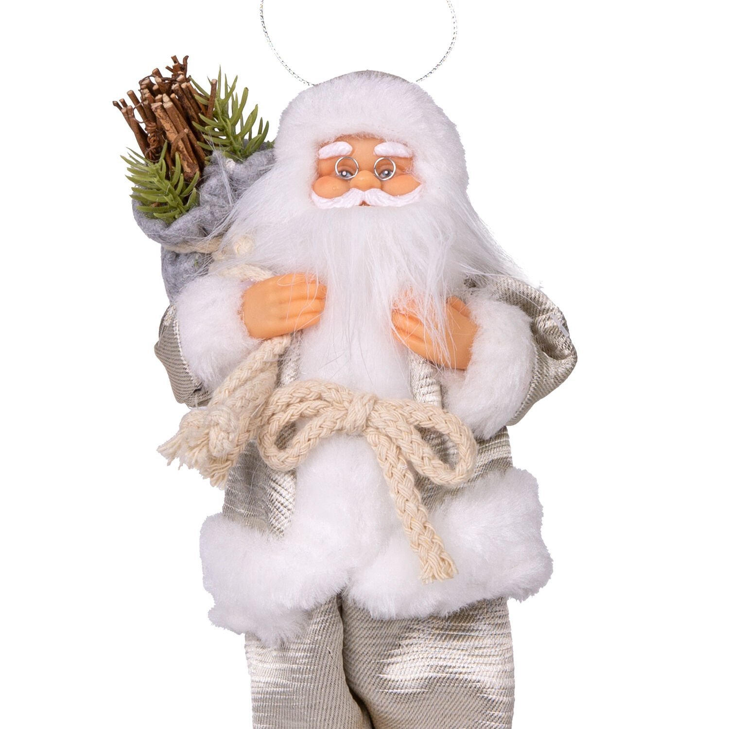 Çam Dalı ve Çalı Taşıyan Noel Baba Şampanya Rengi 20 Cm.
