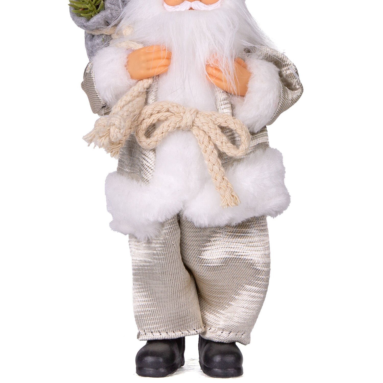 Noel Baba, Çam Dalı ve Çalı Taşıyan, Şampanya Rengi - 20 cm