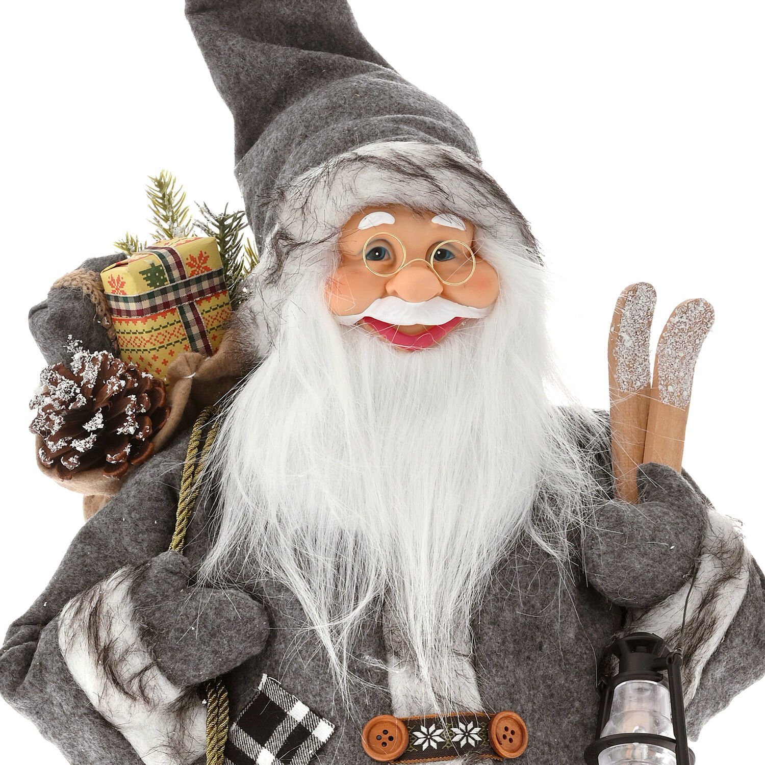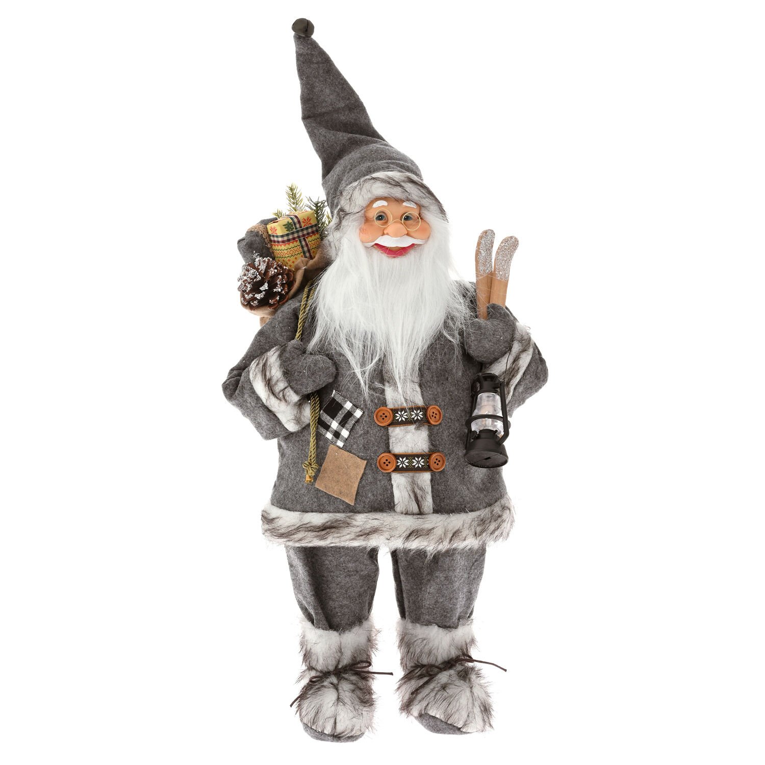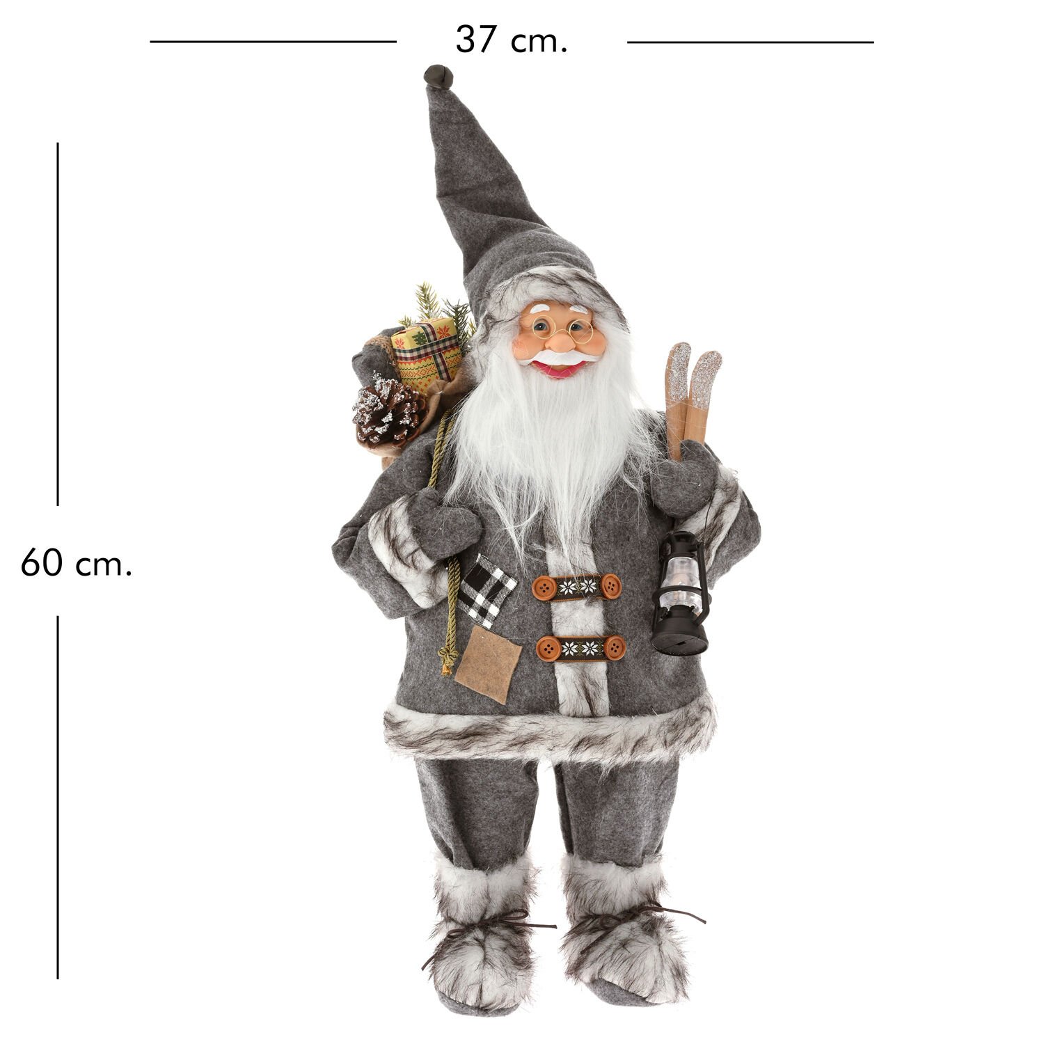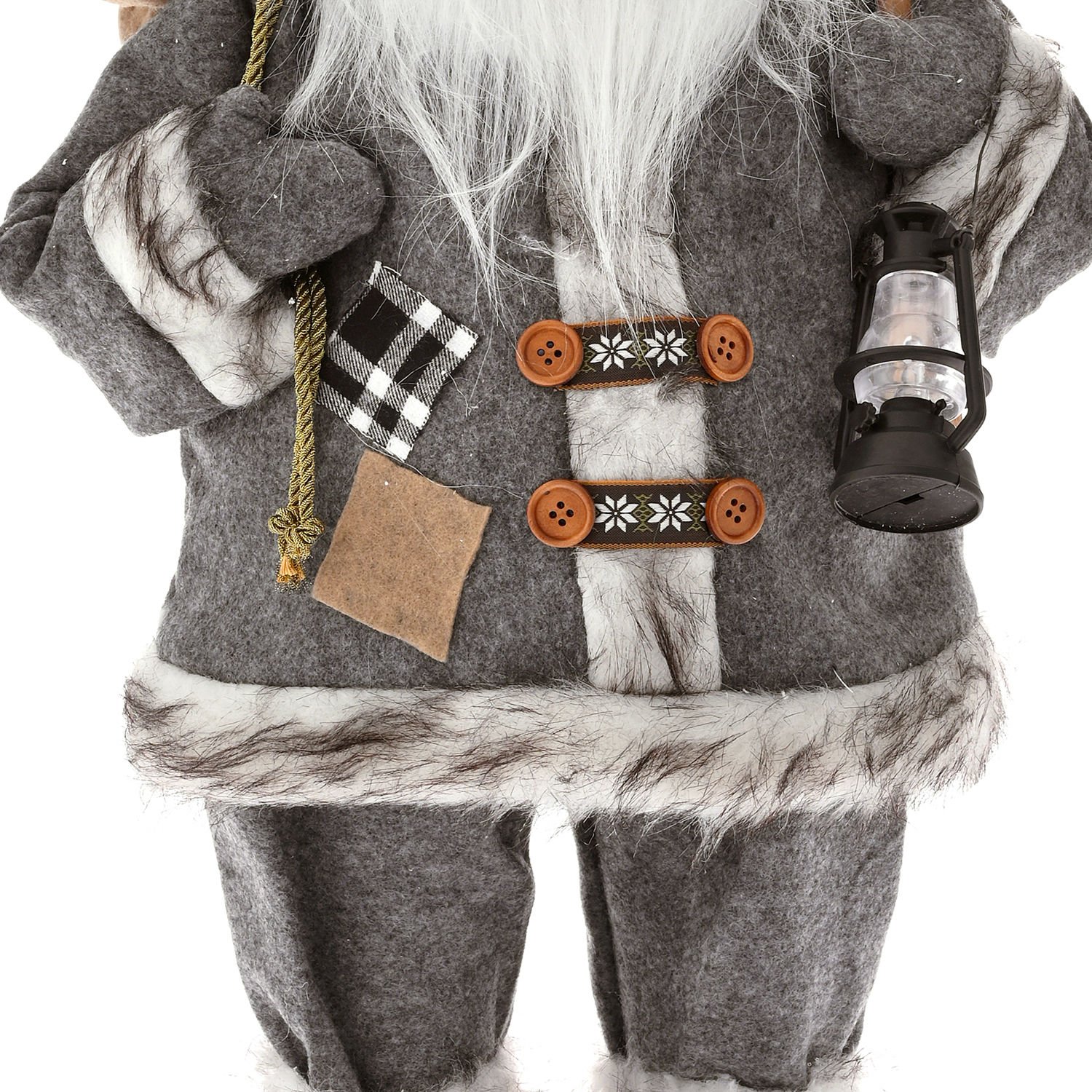 - Bir adet Gri Kadife Elbiseli Sırtında Hediye Elinde Fener Taşıyan Noel Baba