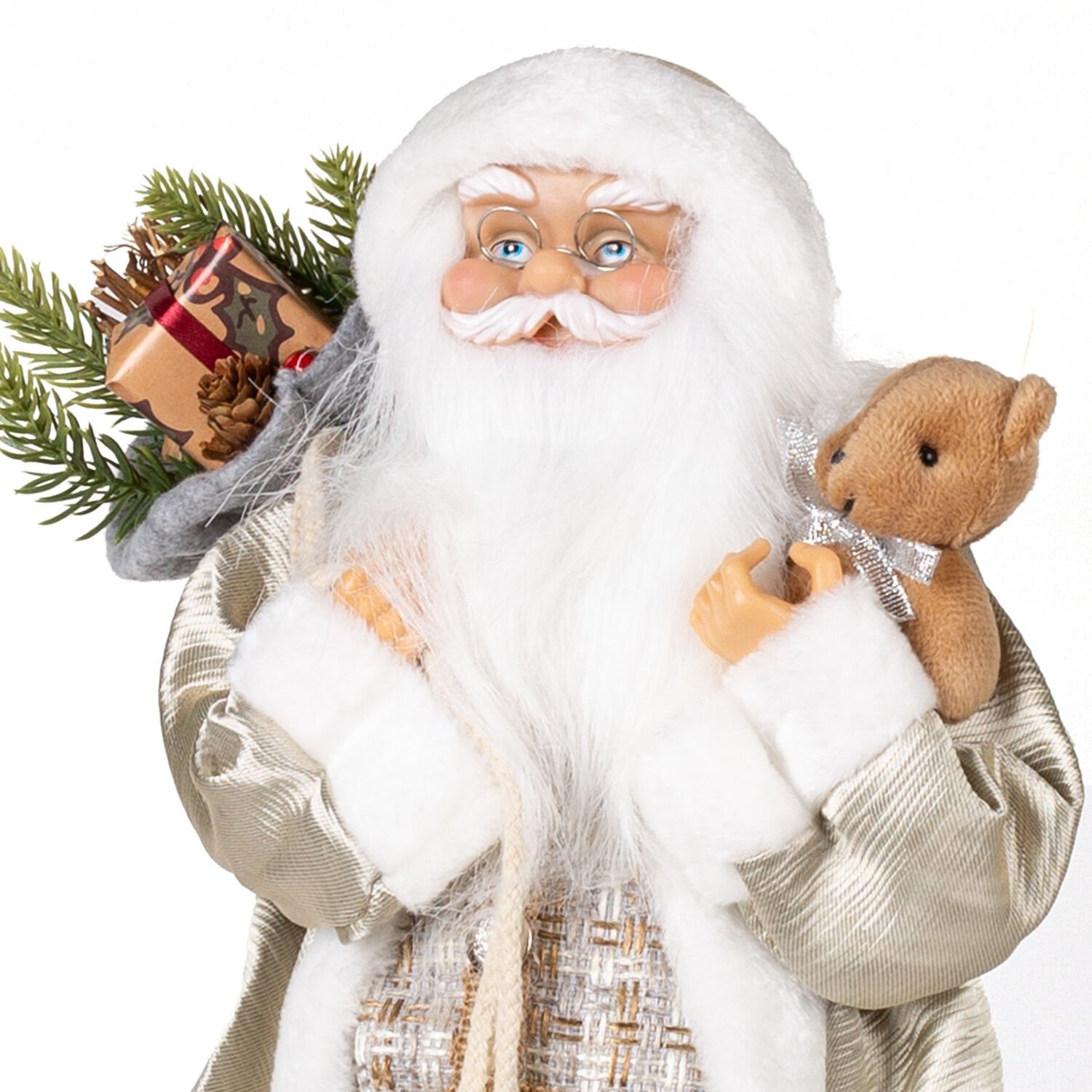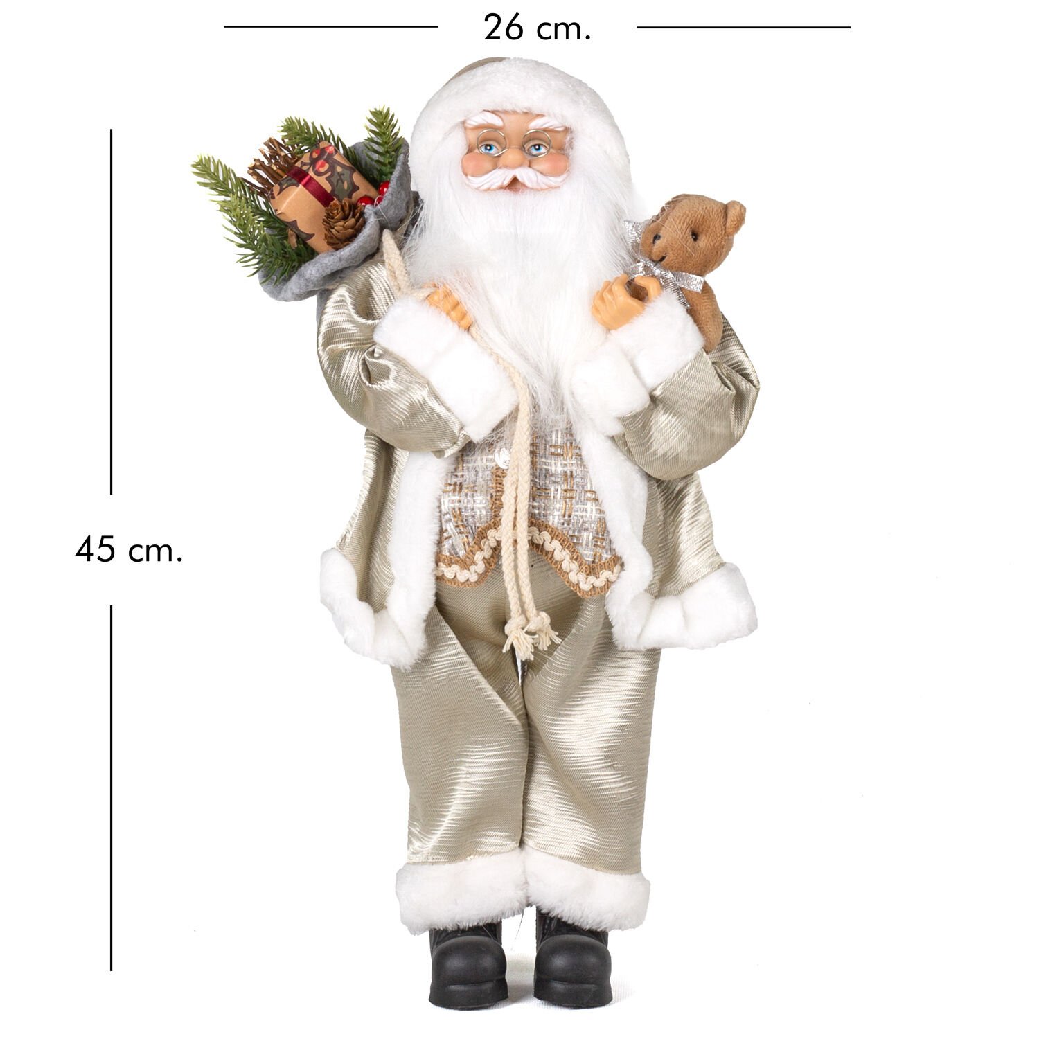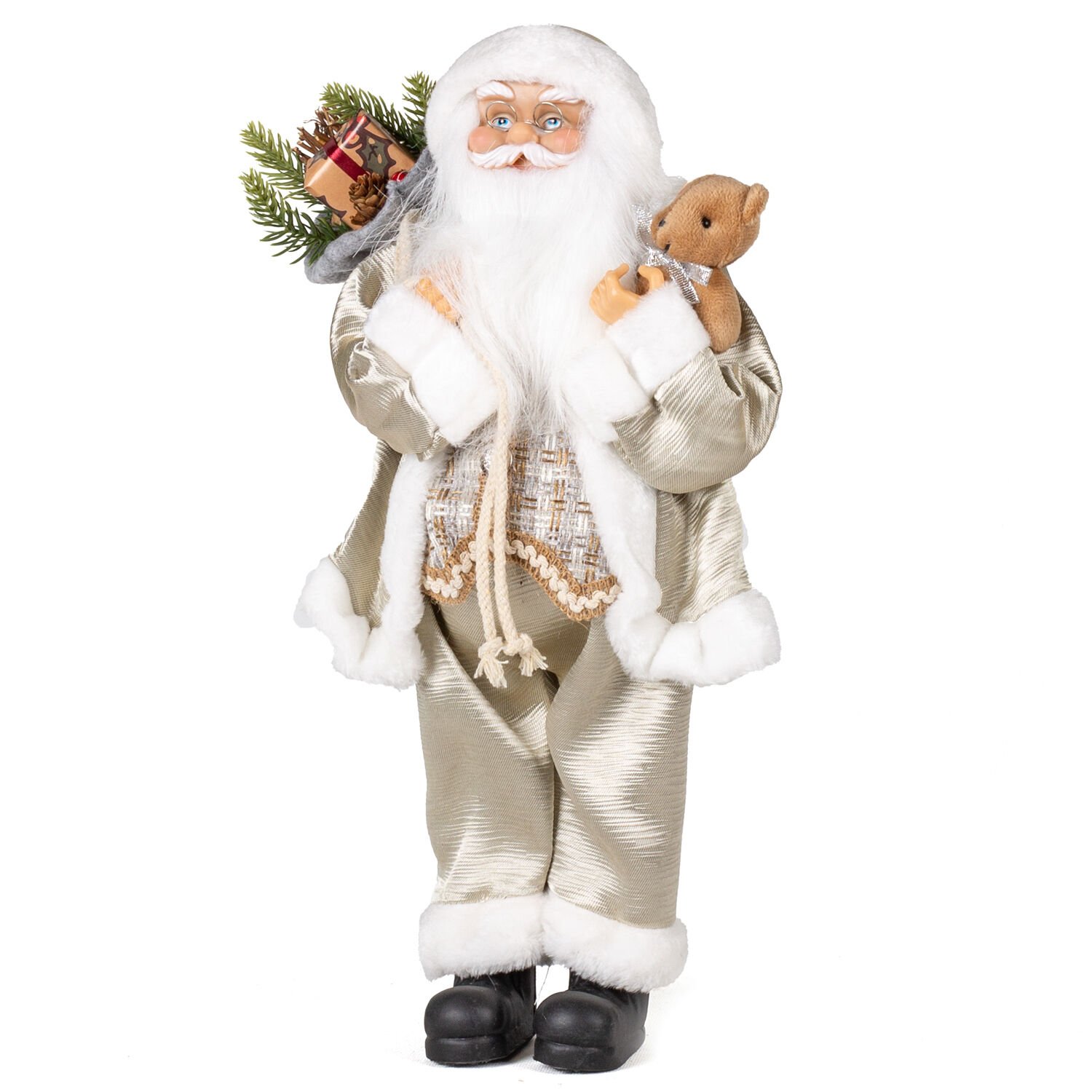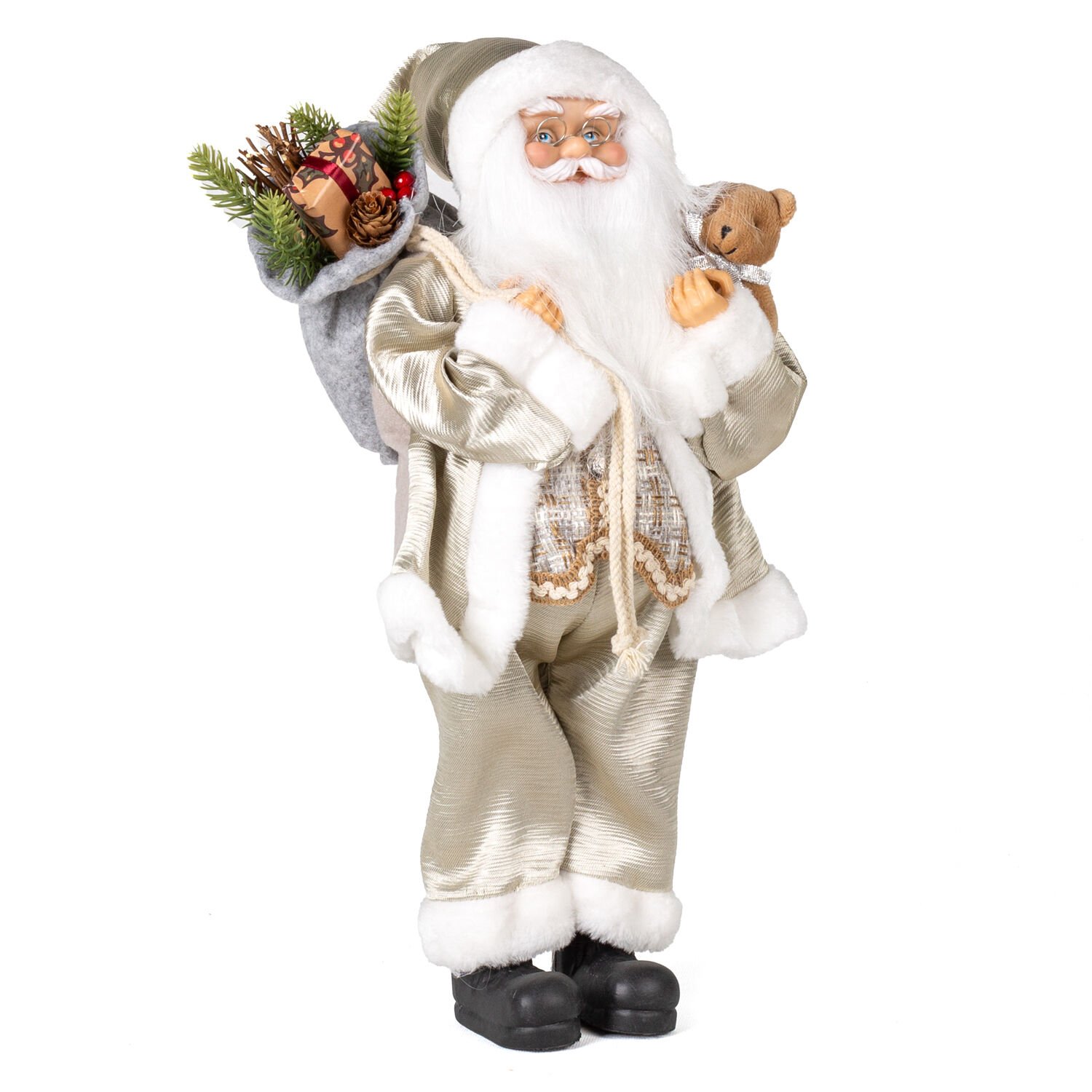 Yılbaşı Dekorlu Ayıcık Figürlü Noel Baba Şampanya 45 Cm.