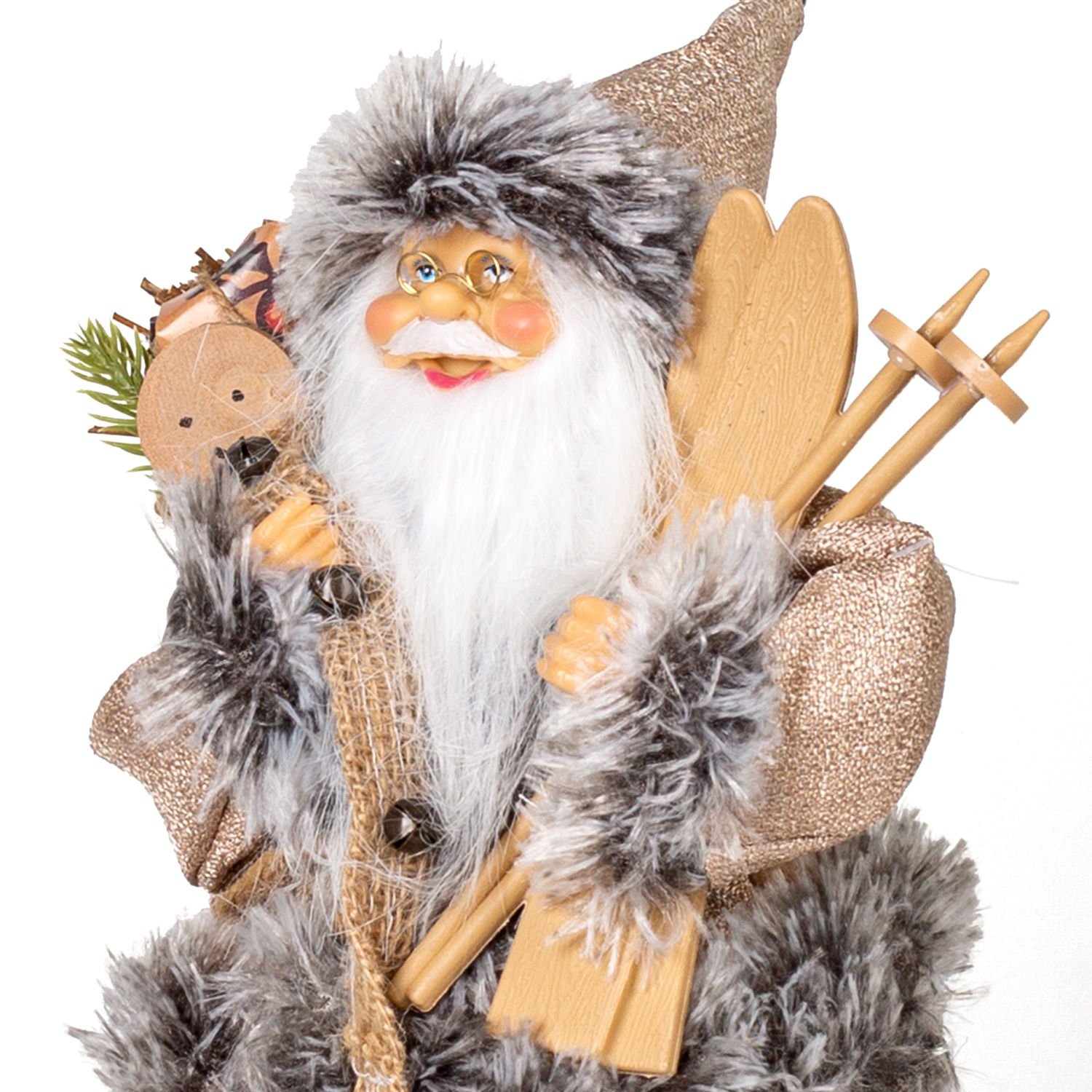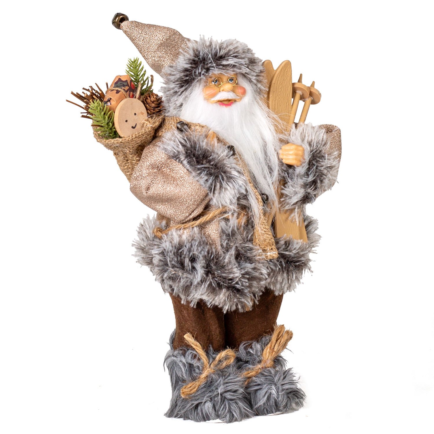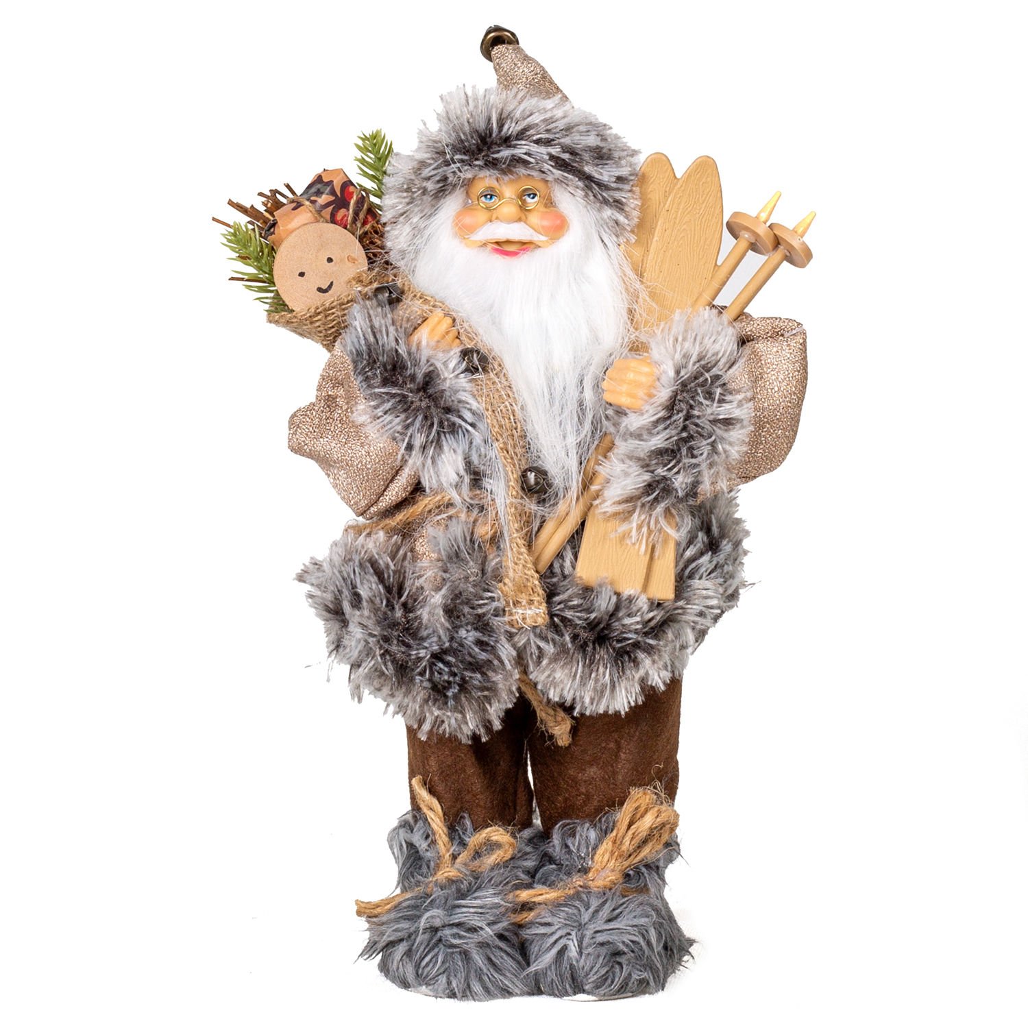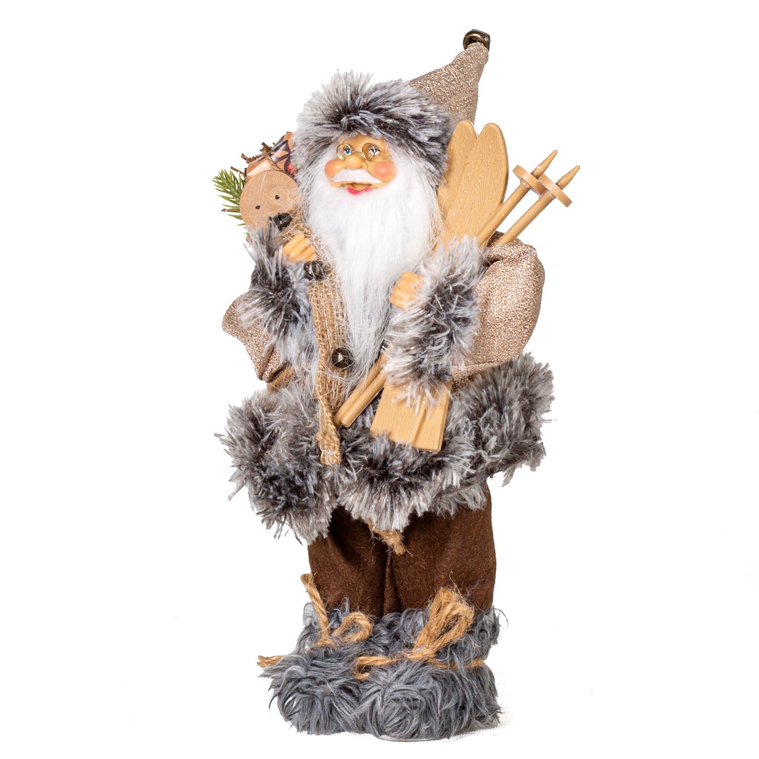 Noel Baba, Kahverengi Pantolonlu Kayak Takımı ve Paket Taşıyan - Yılbaşı, 30 cm
