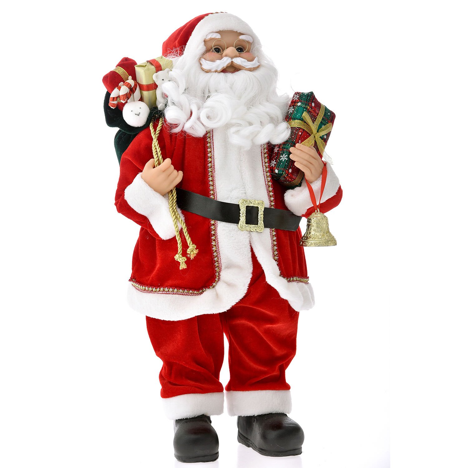 Noel Baba, Klasik, Kadife Elbiseli, Kırmızı - Hediye Taşıyan, 45x80 cm