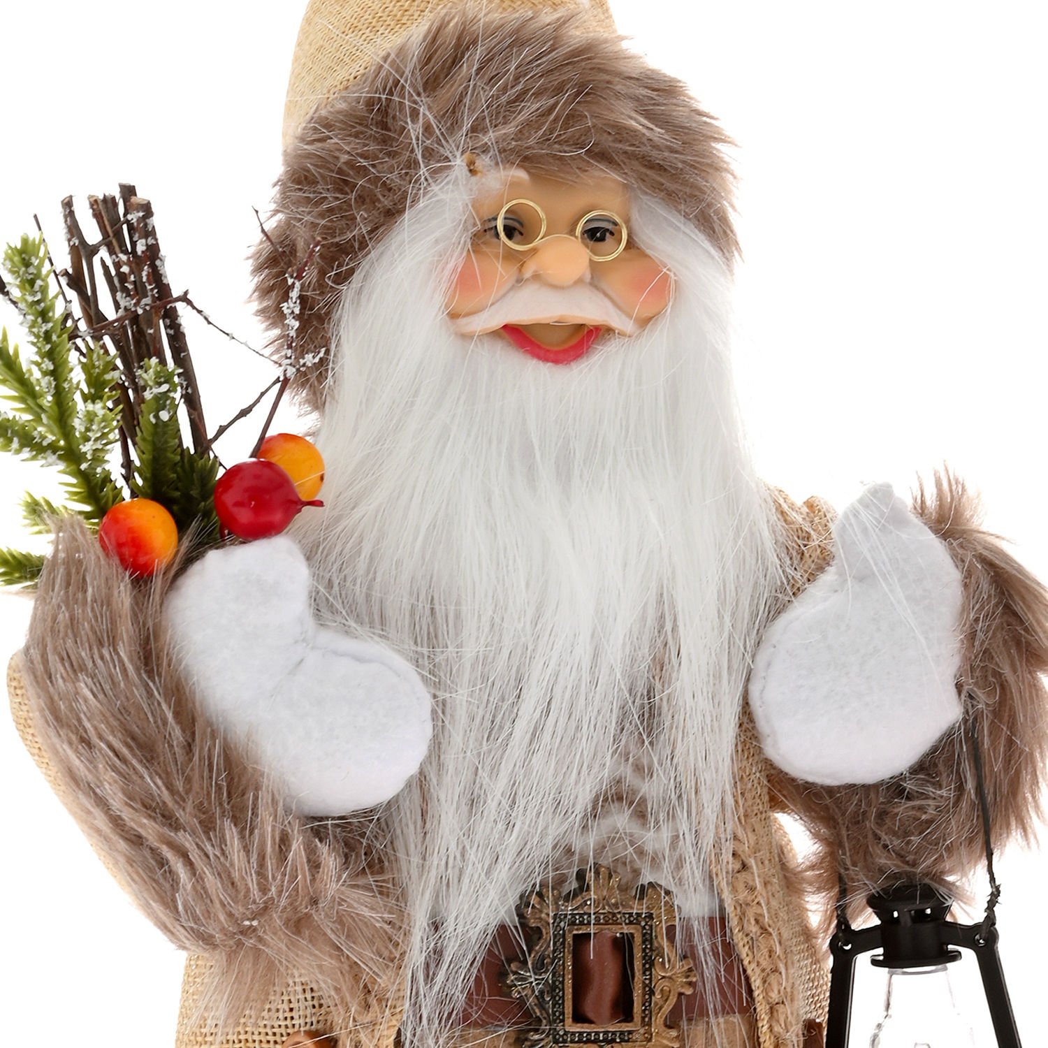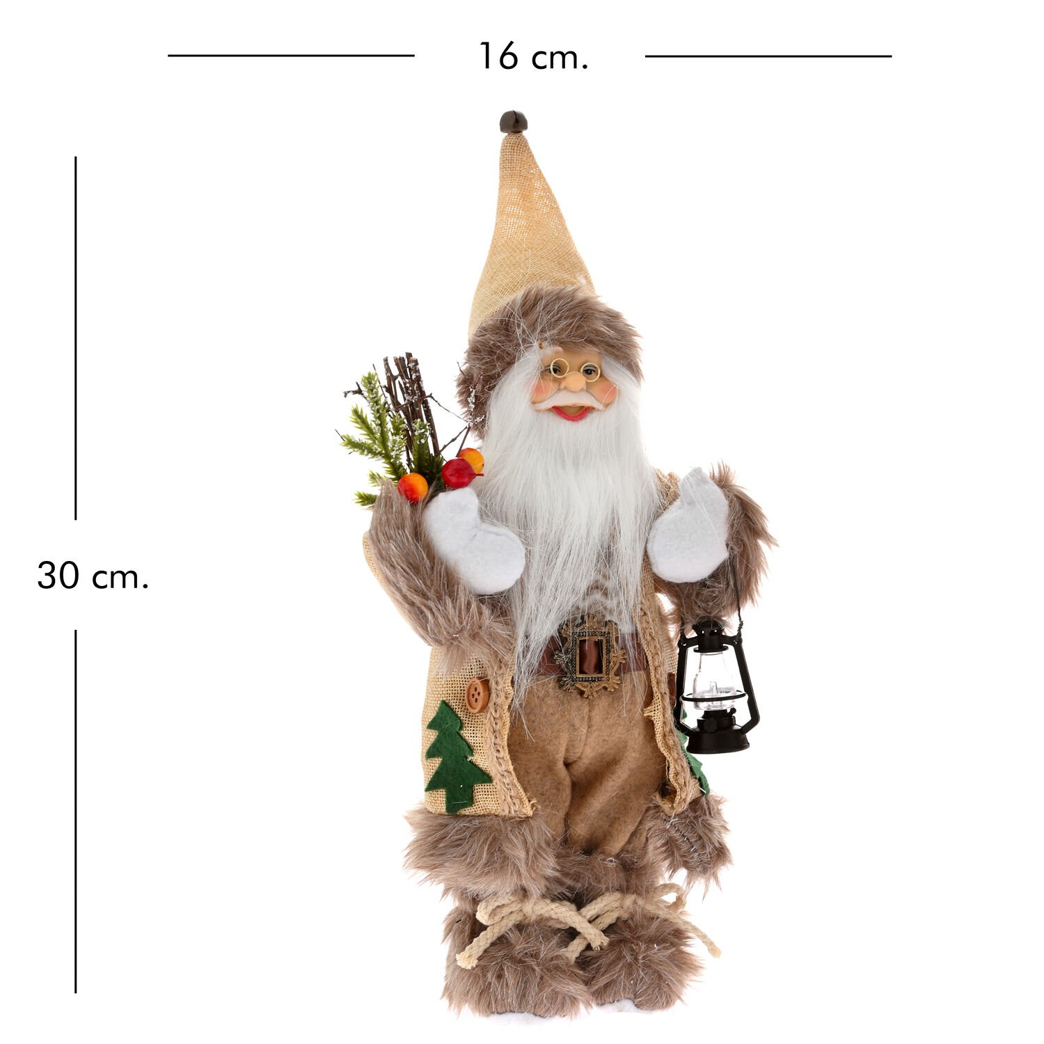 Noel Baba, Krem - Sağ Elinde Yılbaşı Süsü, Sol Elinde Fener Taşıyan, 16 x 30 cm