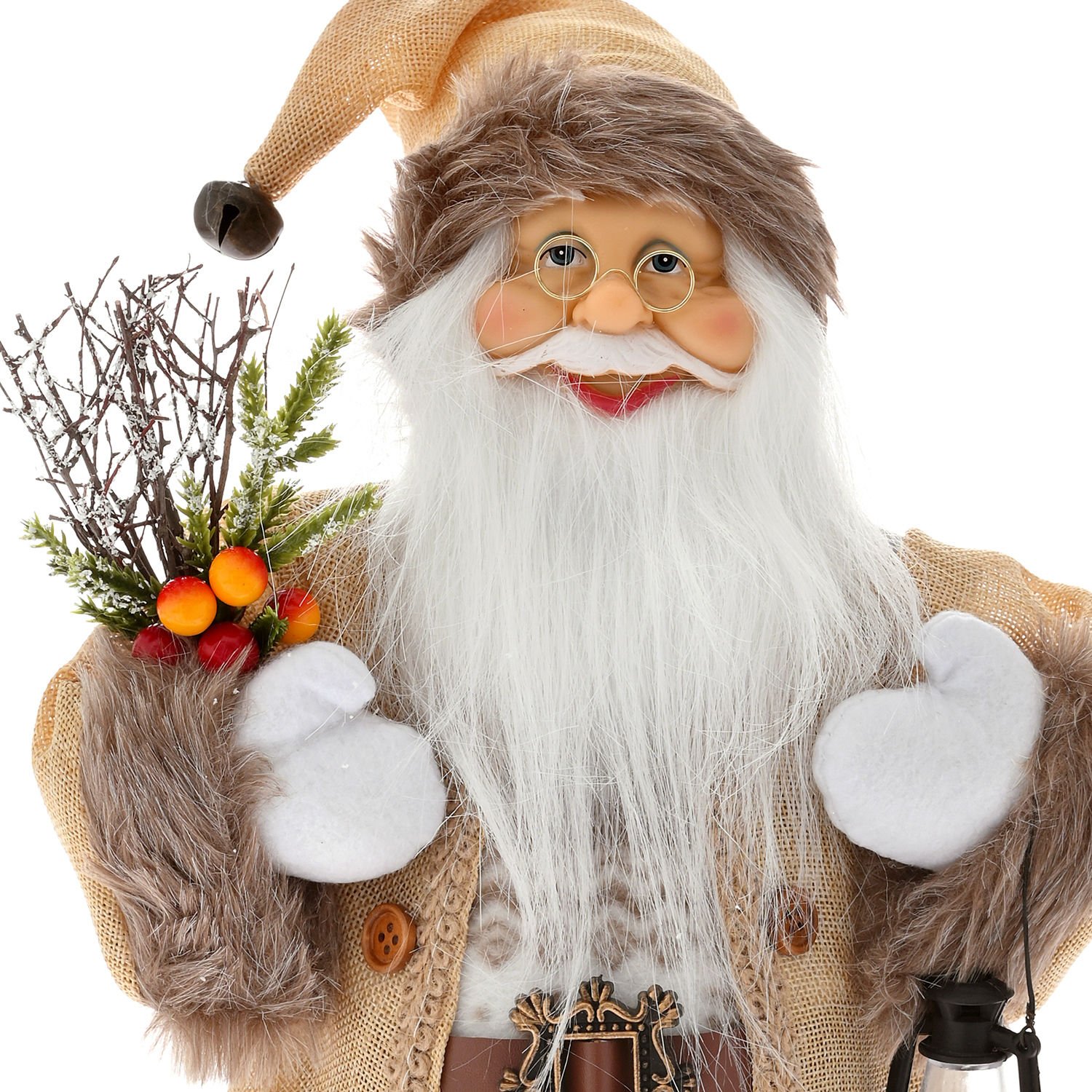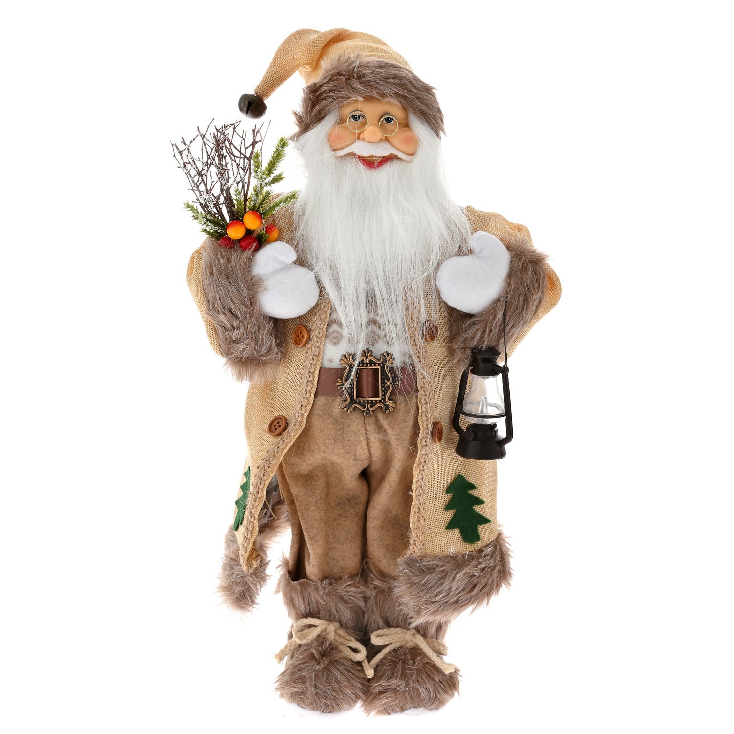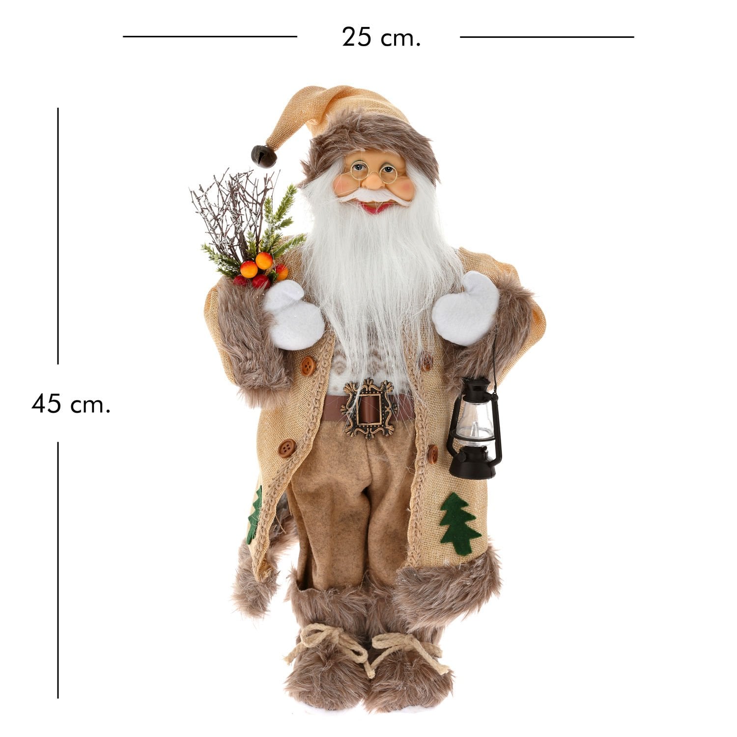 Sağ Elinde Yılbaşı Süsü Sol Elinde Fener Taşıyan Noel Baba Krem 25 x 45 Cm.