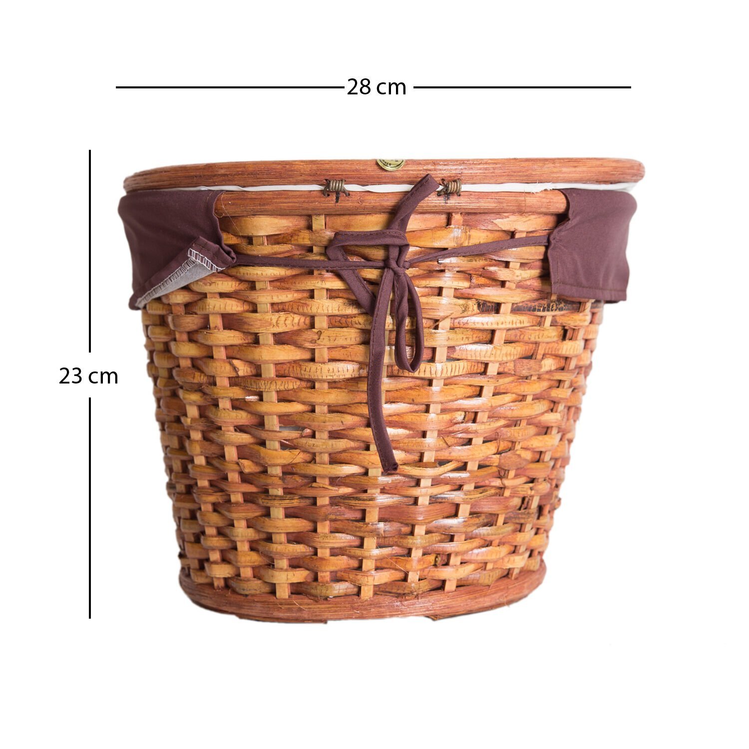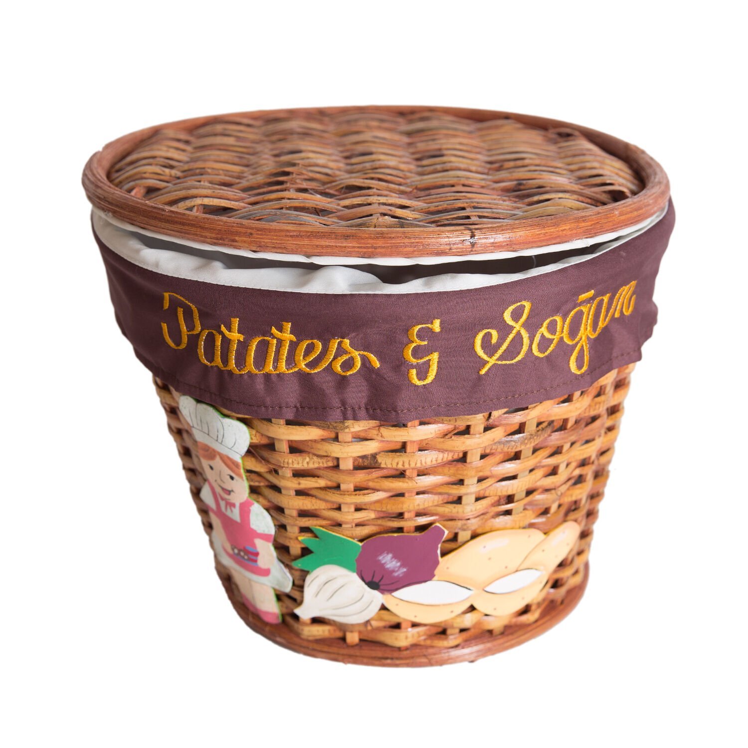 - Bir adet Kapaklı Bambu Patates Soğan Sepeti (Kumaş İçli) Bayan Şef Figürlü Koyu Kahve Kuşaklı