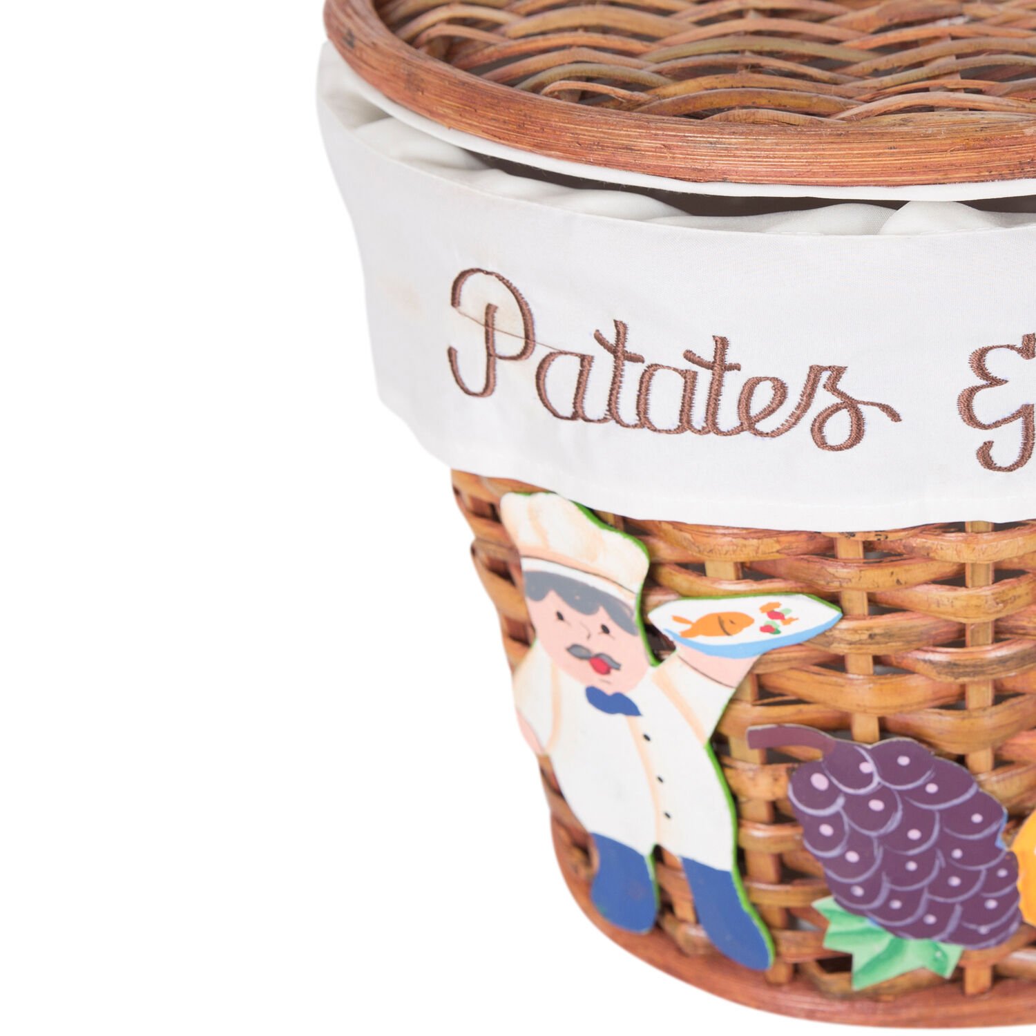 Patates Soğan Sepeti, Kapaklı, Bambu, Erkek Şef Figürlü, Beyaz Kuşaklı, Kahverengi - Kumaş İçli, 32 x 25 cm