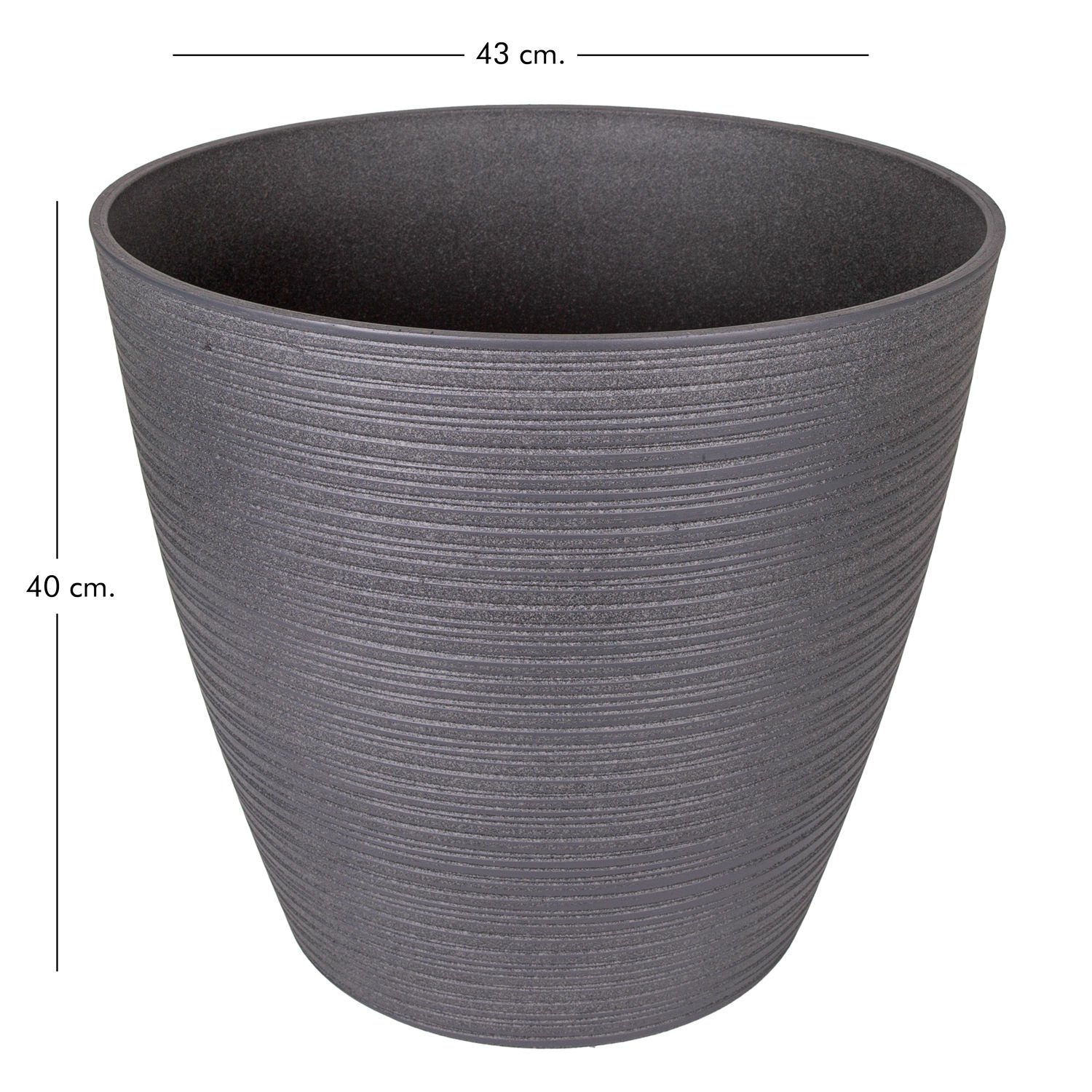 Plastik Saksı, Oval, Antrasit Gri - İç ve Dış Mekan, Büyük Boy, 43x43x40 cm