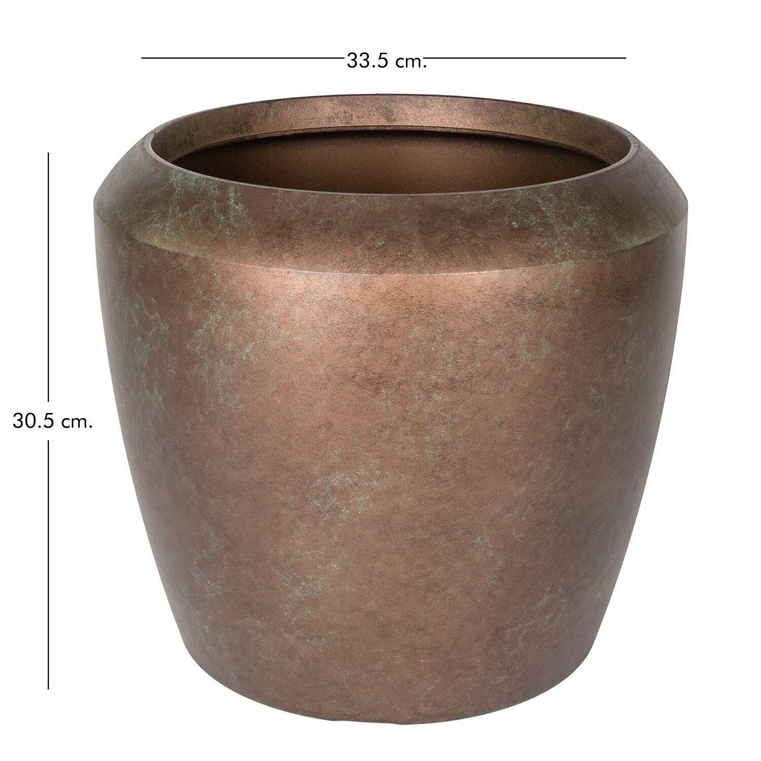 Oval İç ve Dış Mekan Saksı Küçük Boy Bakır Eskitme 33,5x33,5x30,5 Cm.