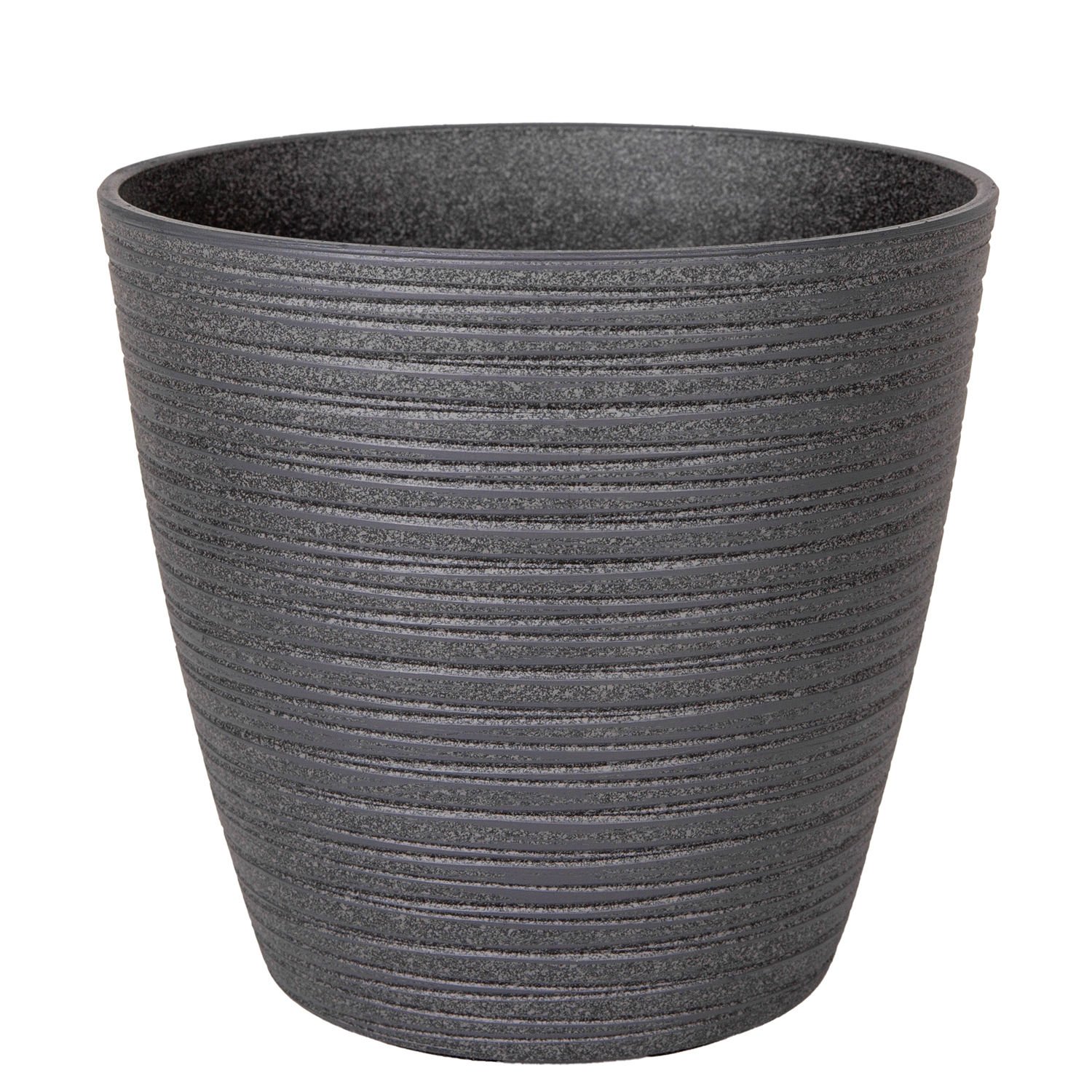 Plastik Saksı, Oval, İç ve Dış Mekan, Antrasit Gri, Mini Boy - 21x21x19,5 cm