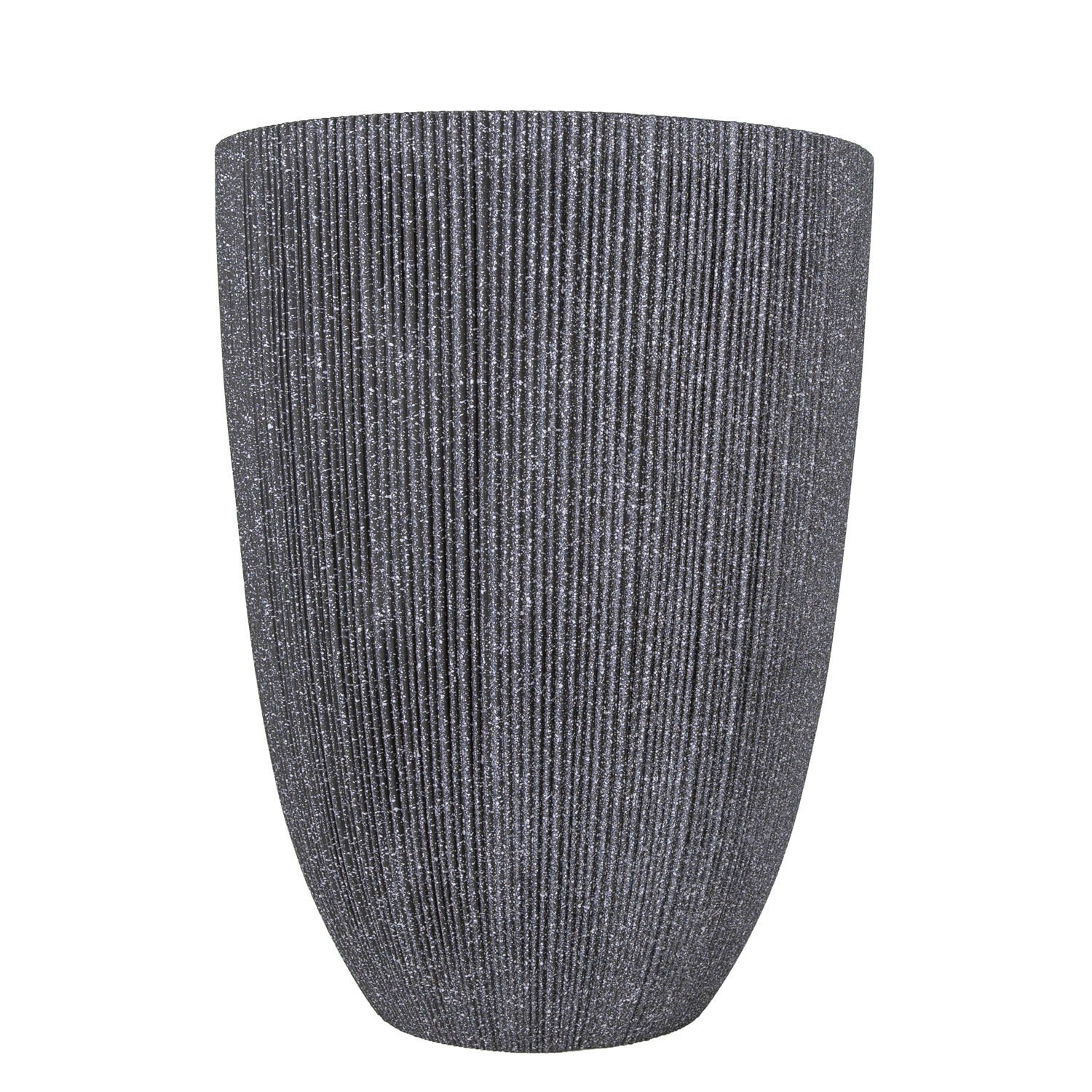 Plastik Saksı, Oval, İç ve Dış Mekan, Siyah, Orta Boy - 37x37x48,5 cm