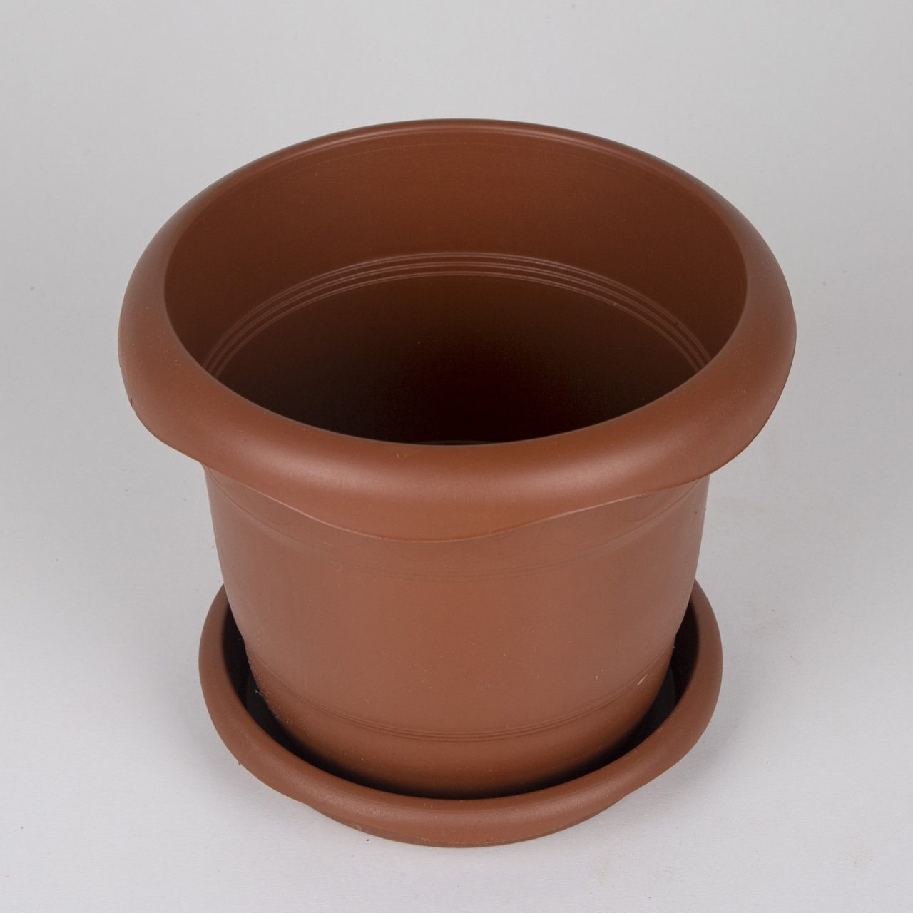 Plastik Saksı, Tabaklı, Kahverengi - No:1, 2,8 Litre, 20x16,5 cm