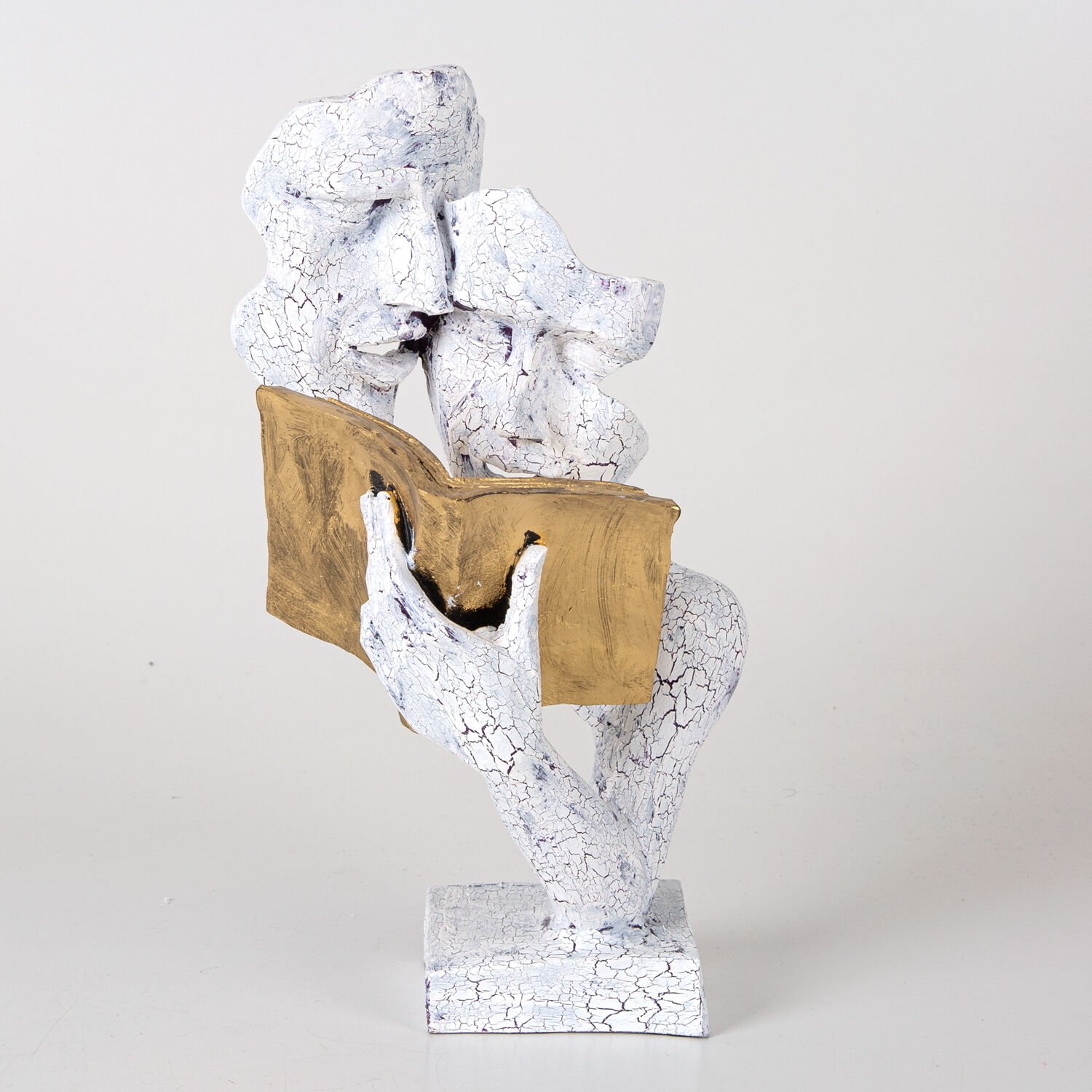 Dekoratif Polyester Kitap Okuyan Masklar Beyaz-Gold ( Ebat 17x34x14 Cm.)