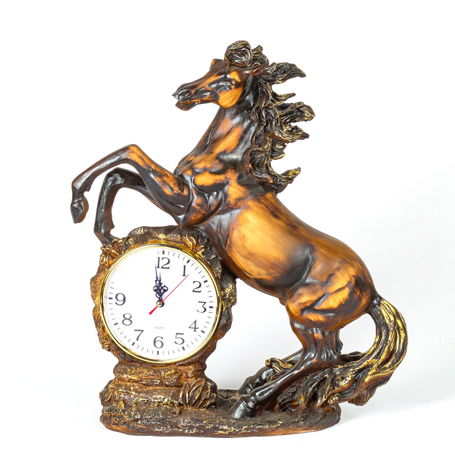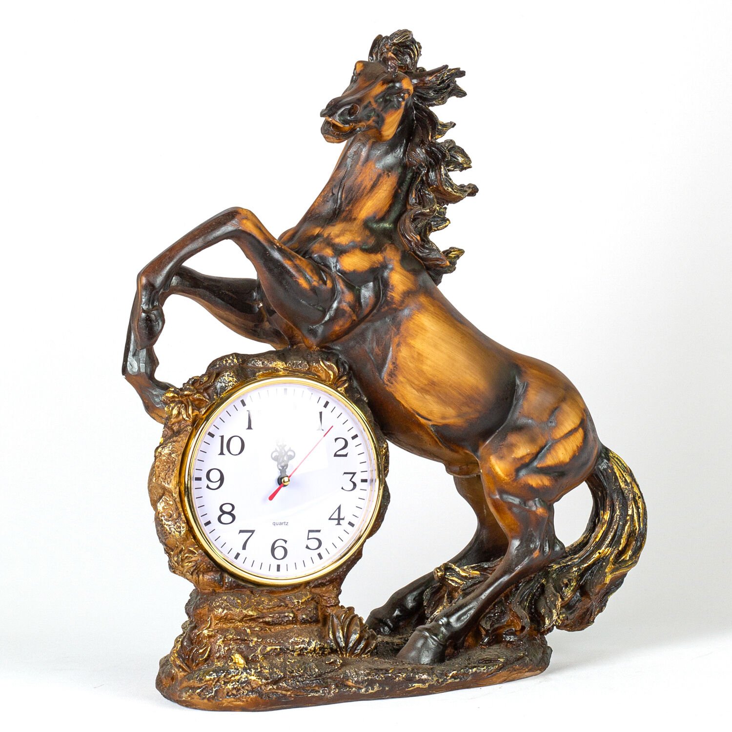 - Bir adet At Figürlü Saat Ahşap Görünüm Biblo
