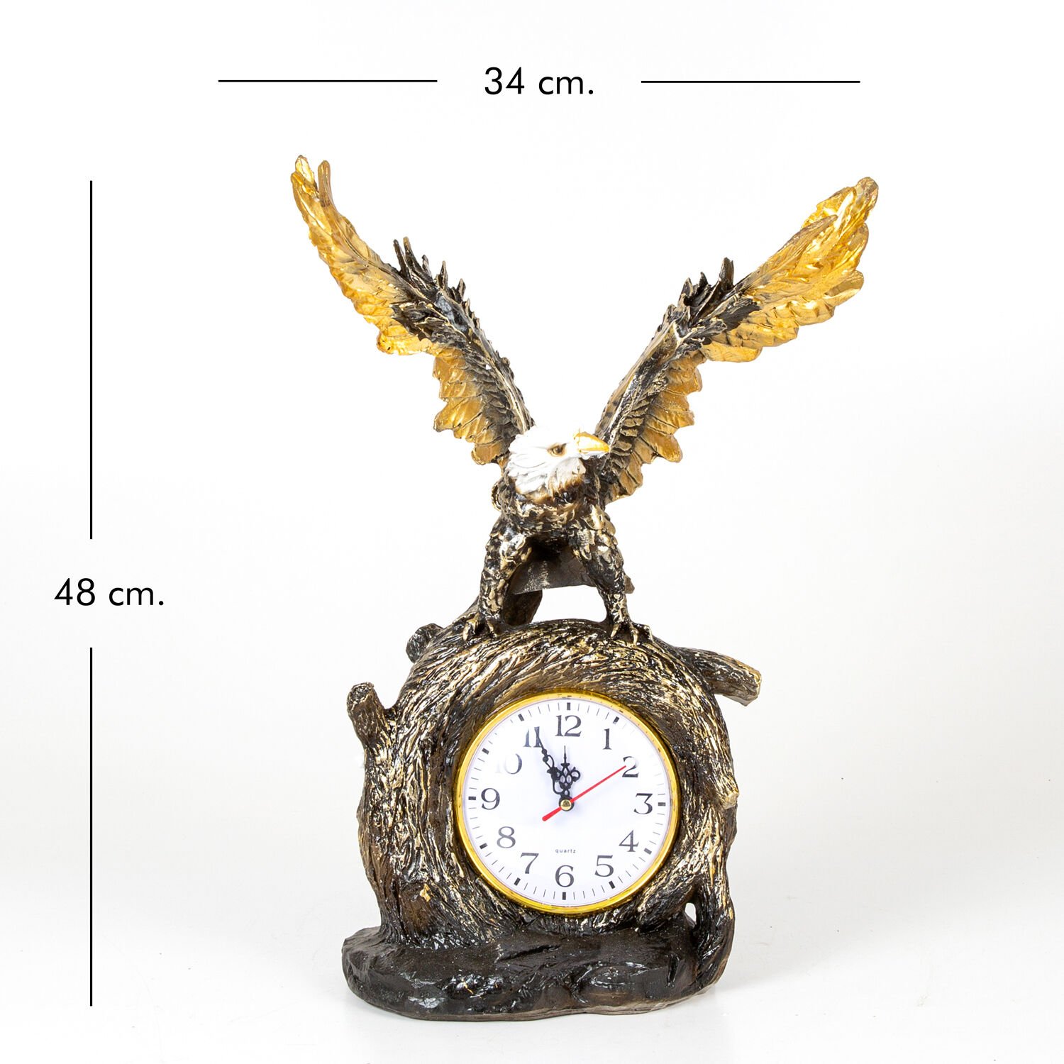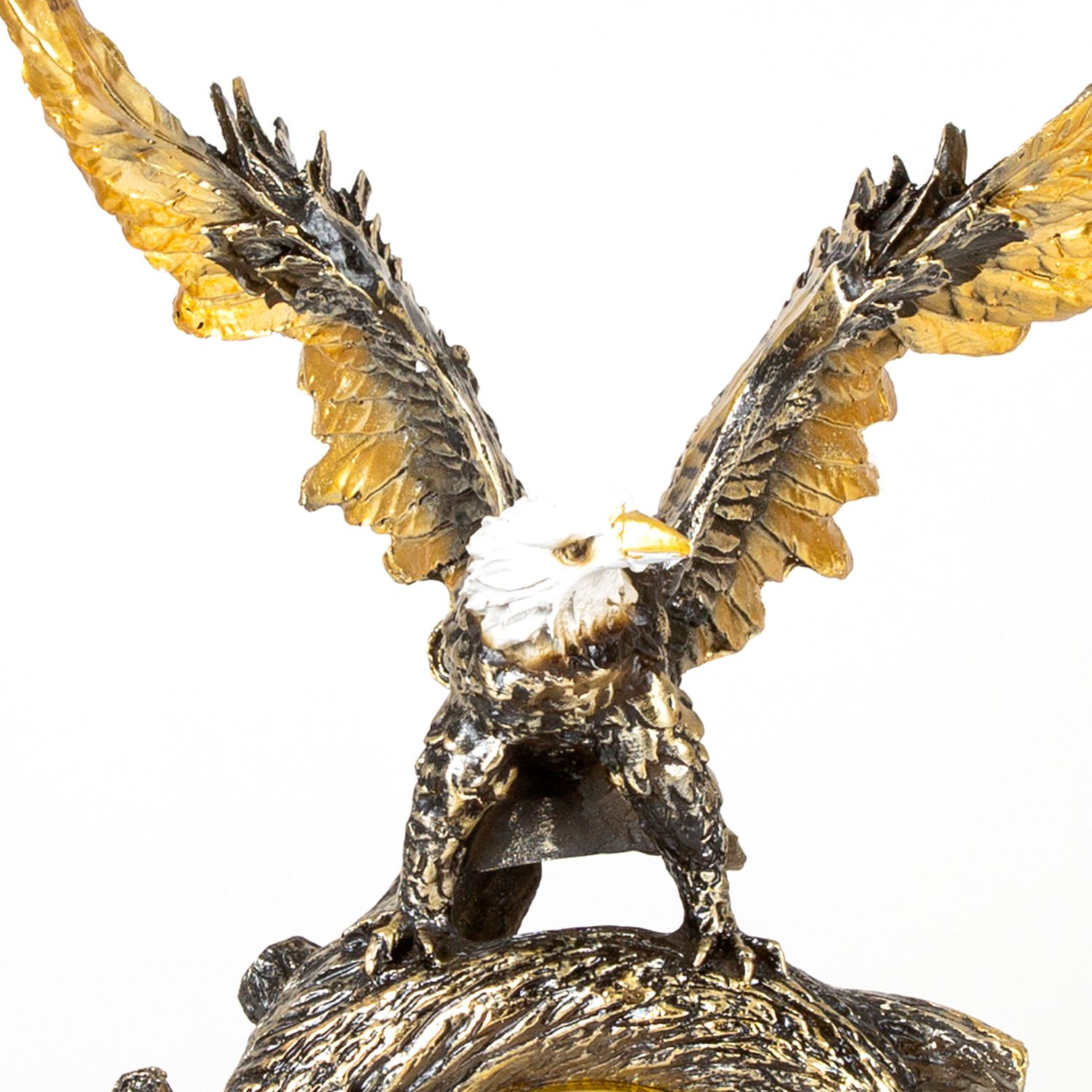 Saat Biblo, Kartal Figürlü, Altın Eskitme-Siyah - 34x48x15 cm