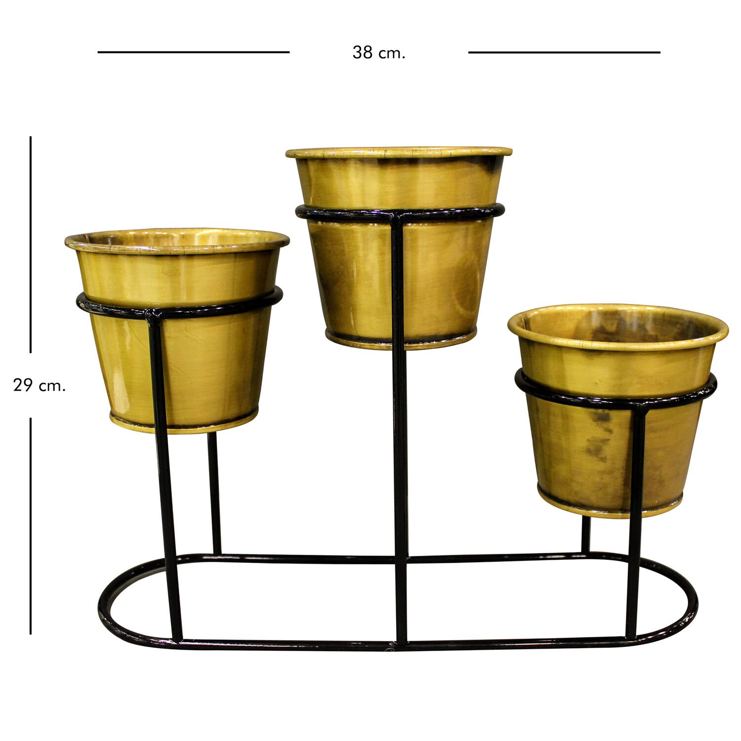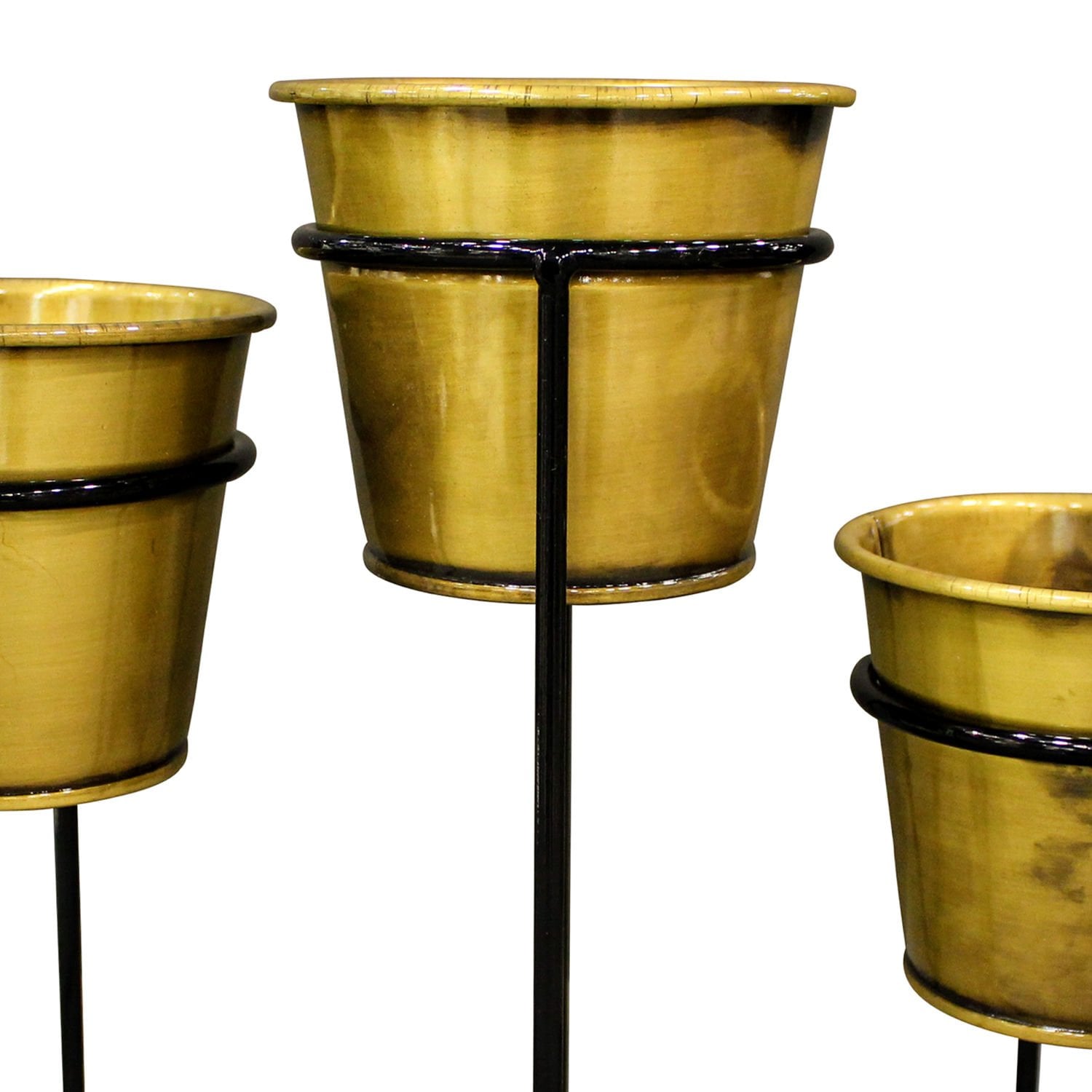 Dekoratif Metal Standlı 3'lü Saksı Parlak Altın 38x29x13 Cm.