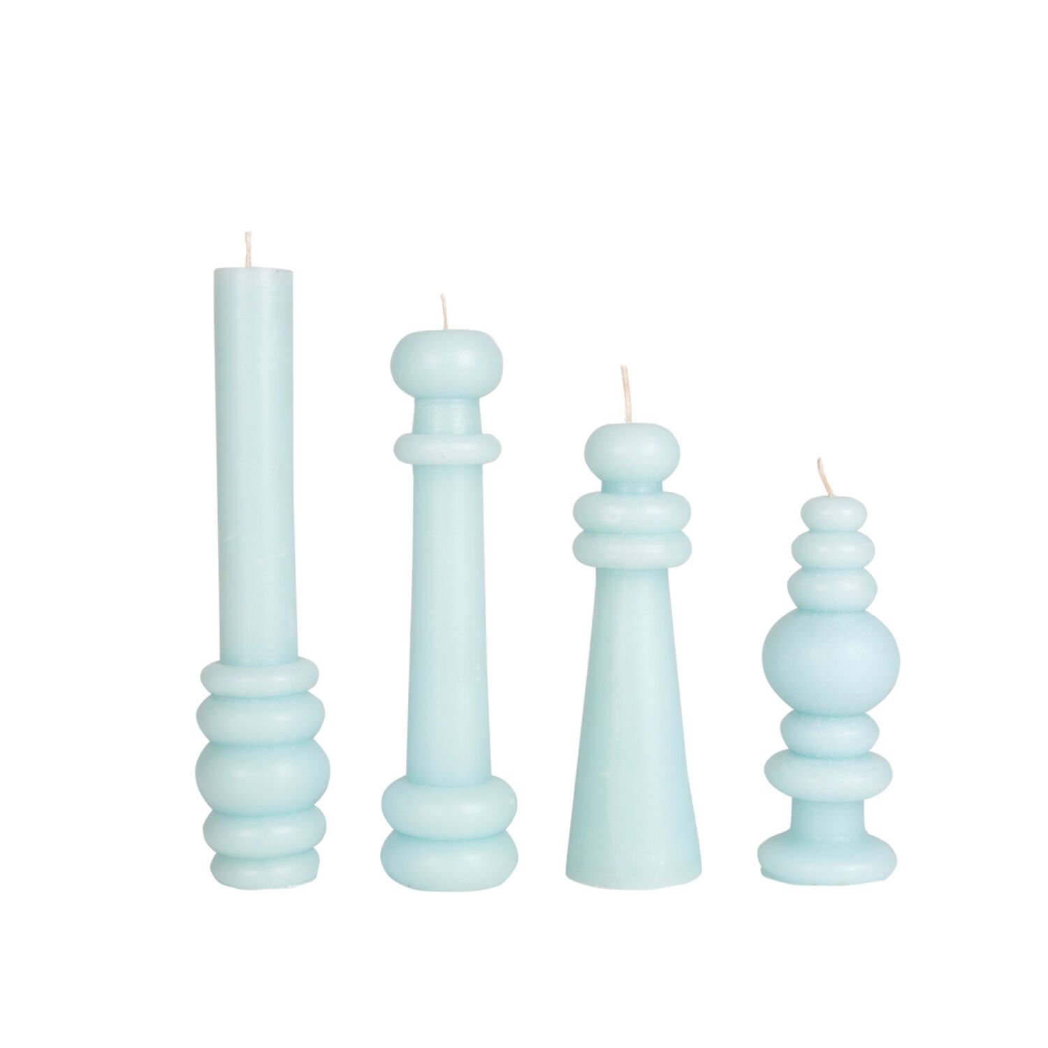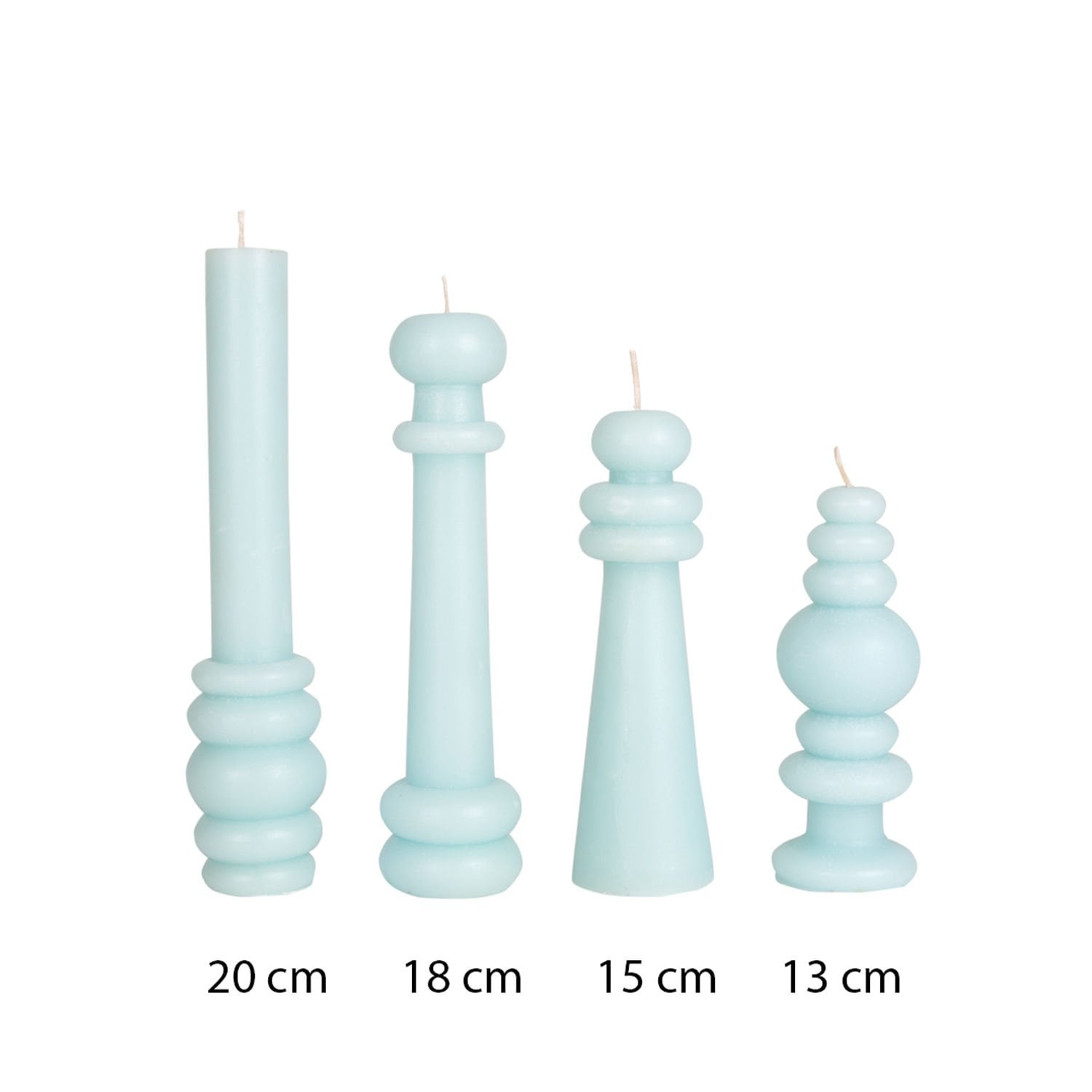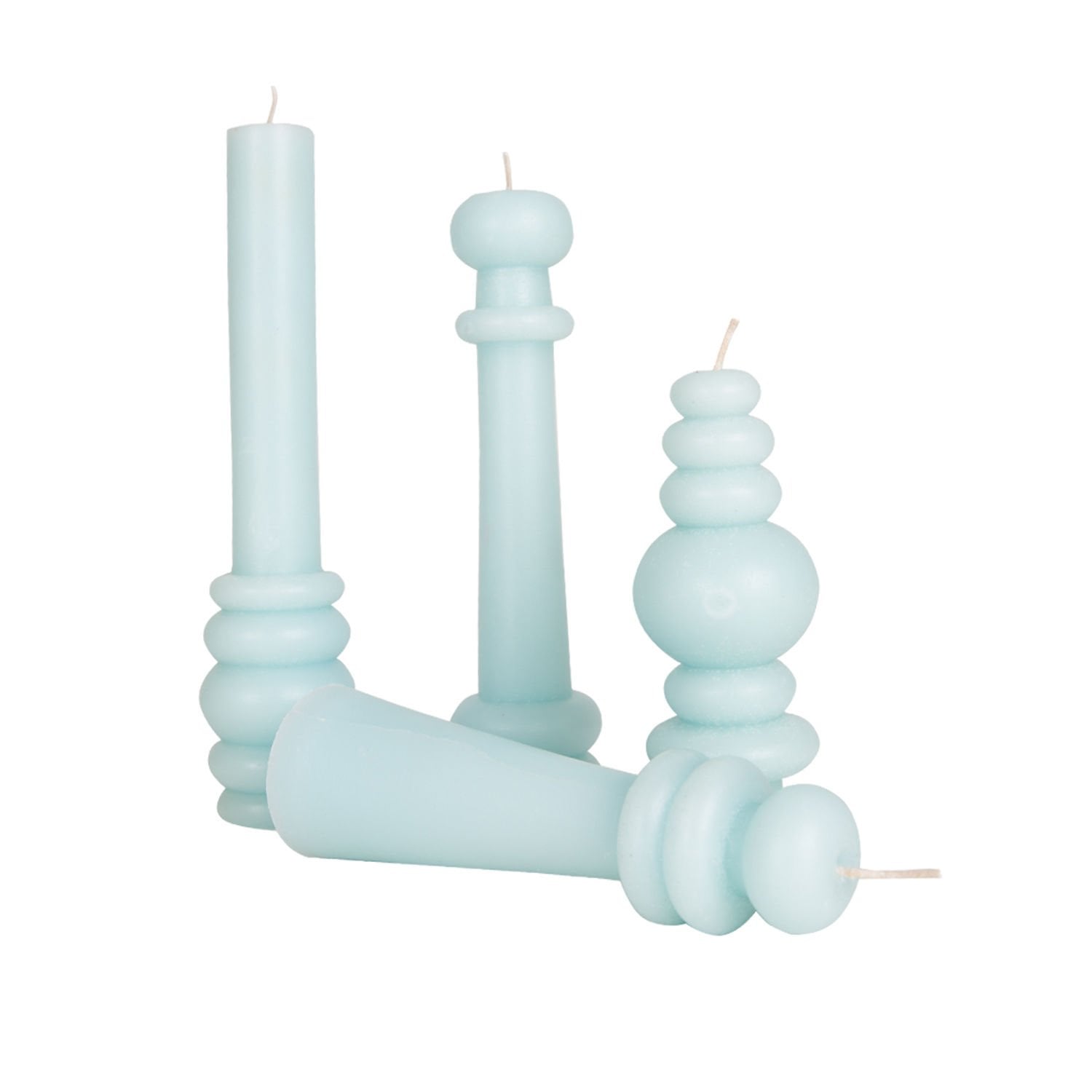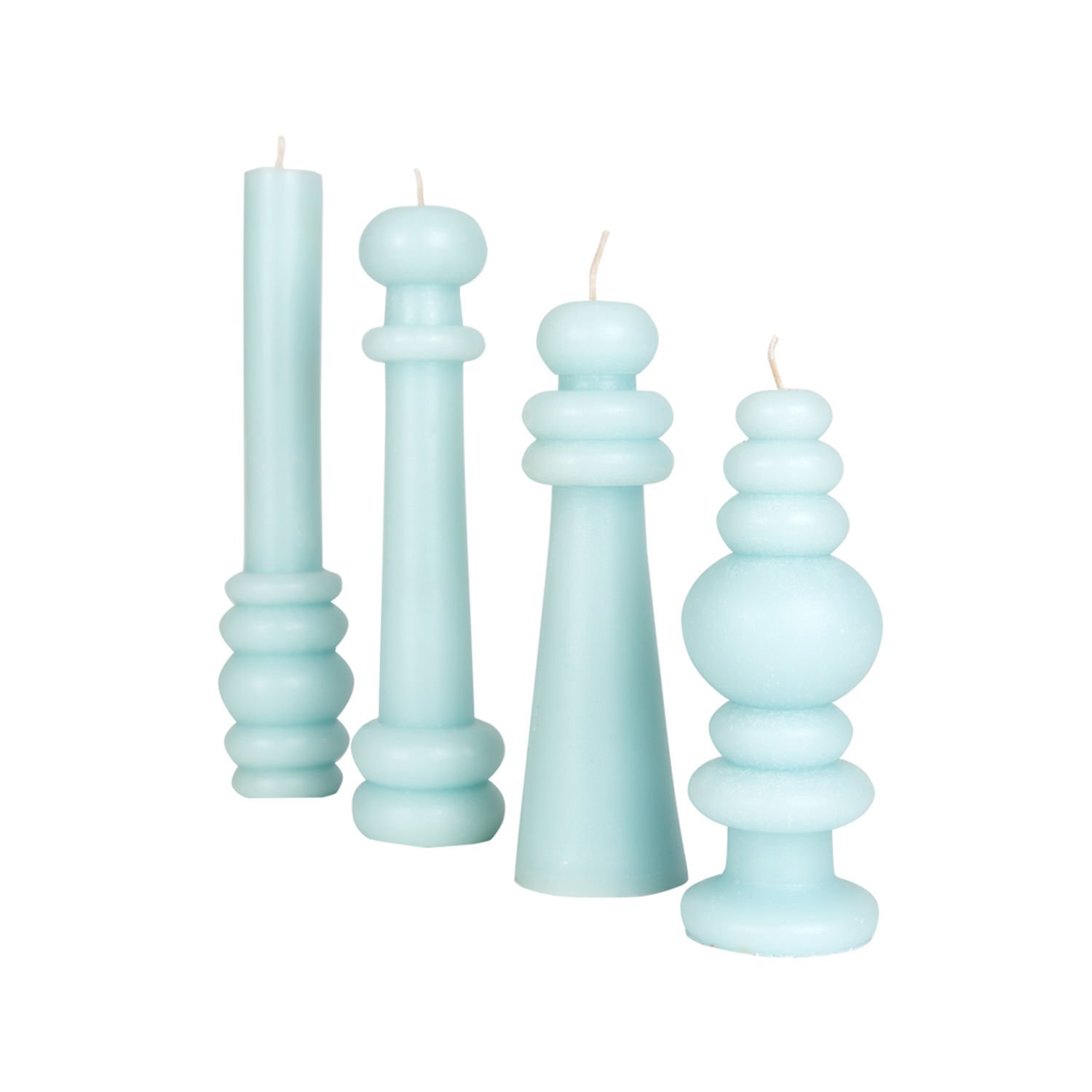 Dekoratif Figürlü Şamdan Mum Pudra Mavi 4'lü set 20 - 18 - 15 - 13 cm.