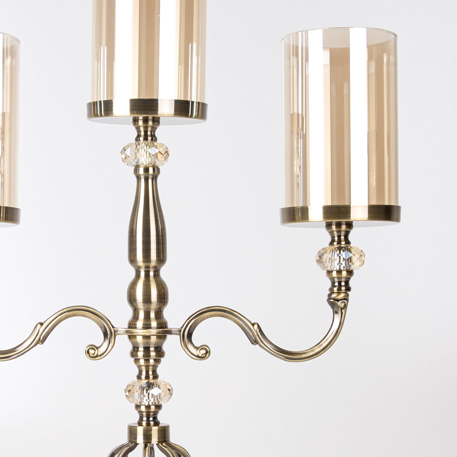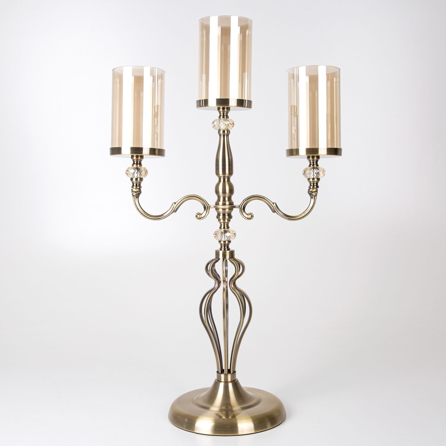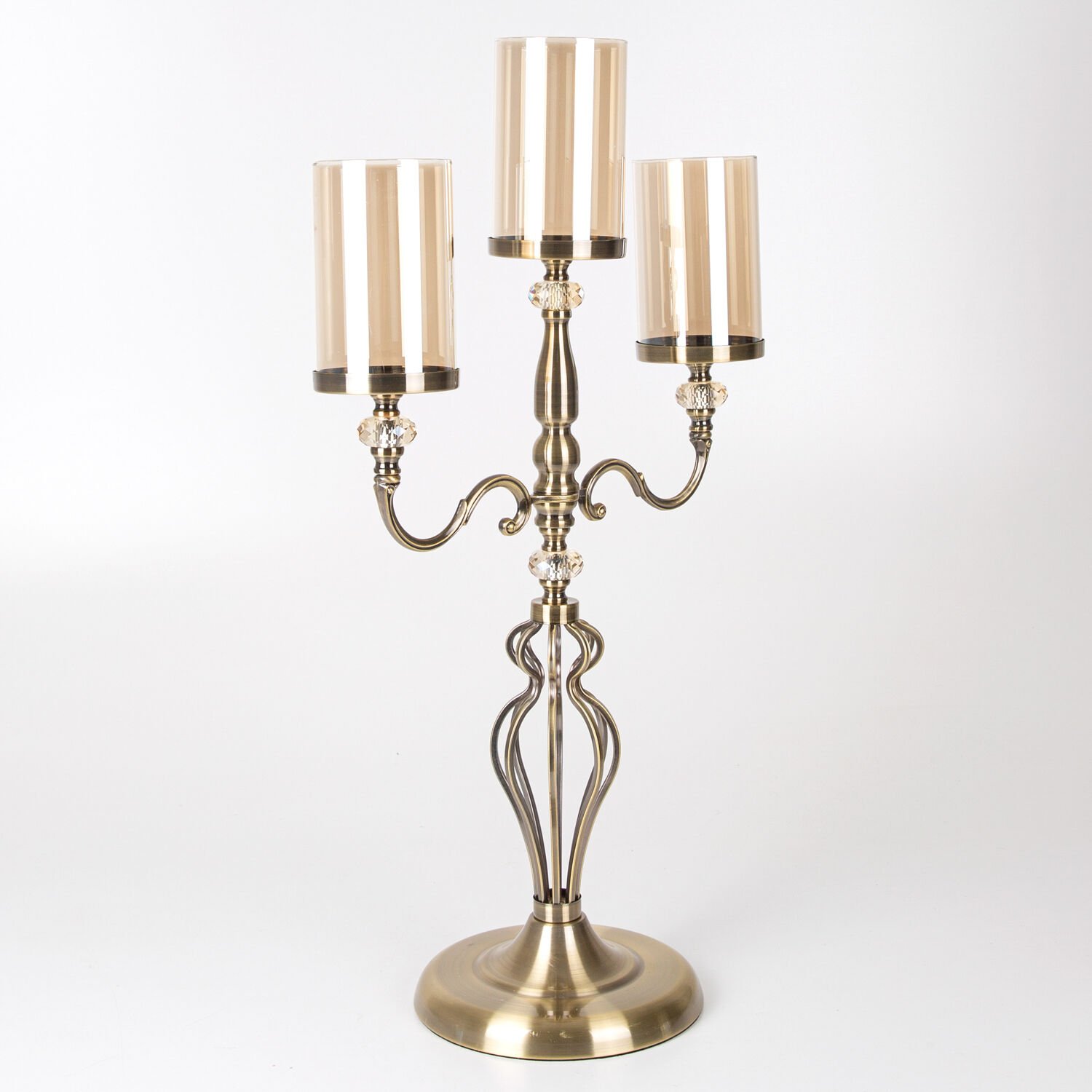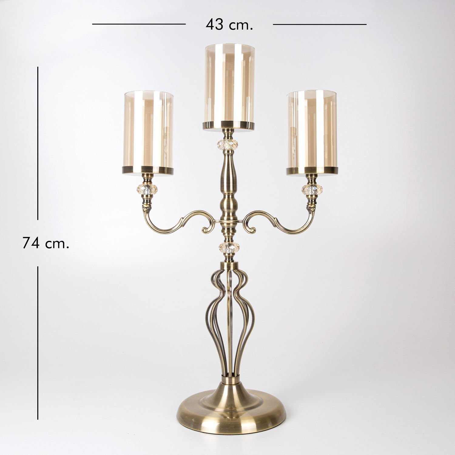 Taç Ayaklı Üstü Cam Üçlü Şamdan Bronz ( Ebat 43x74 Cm.)
