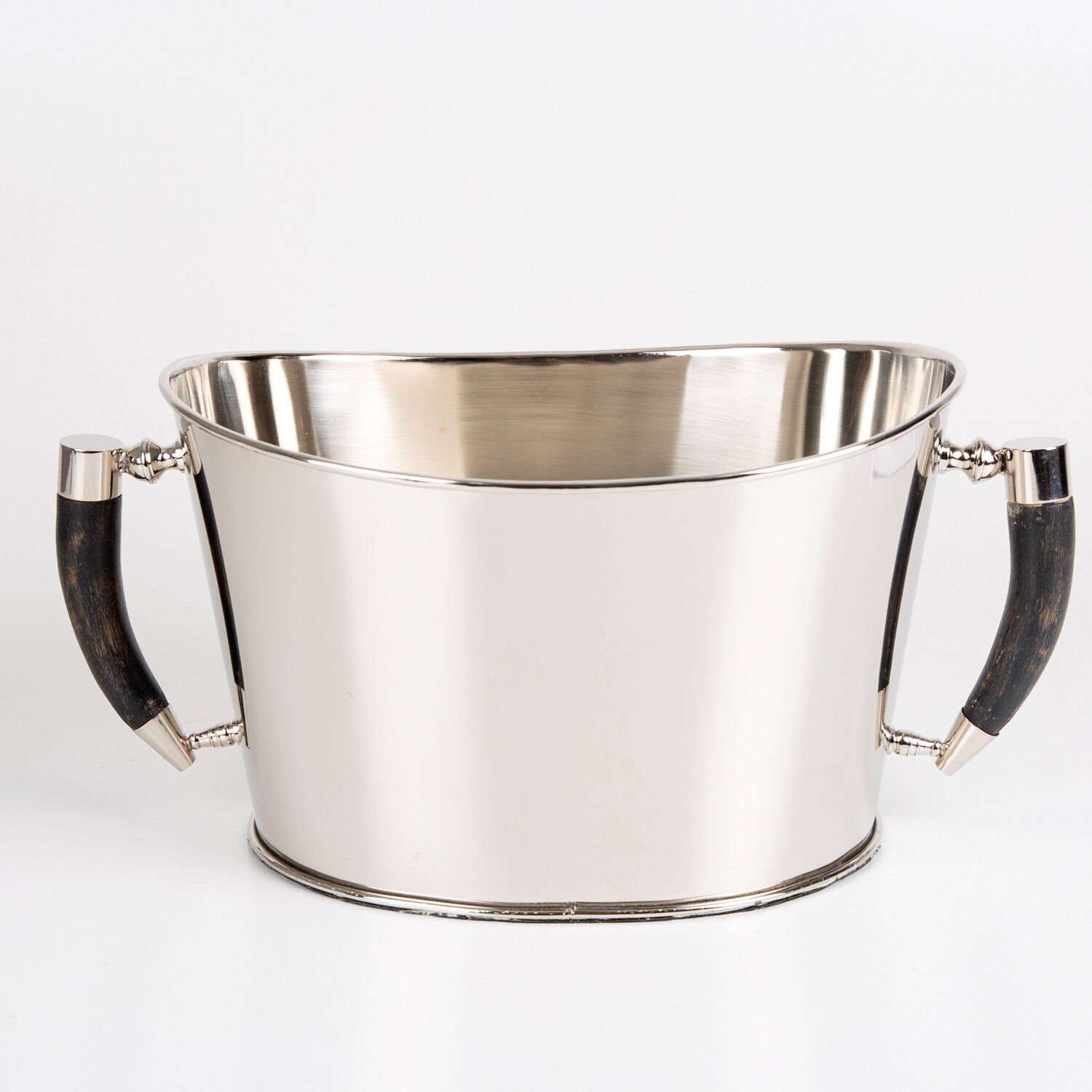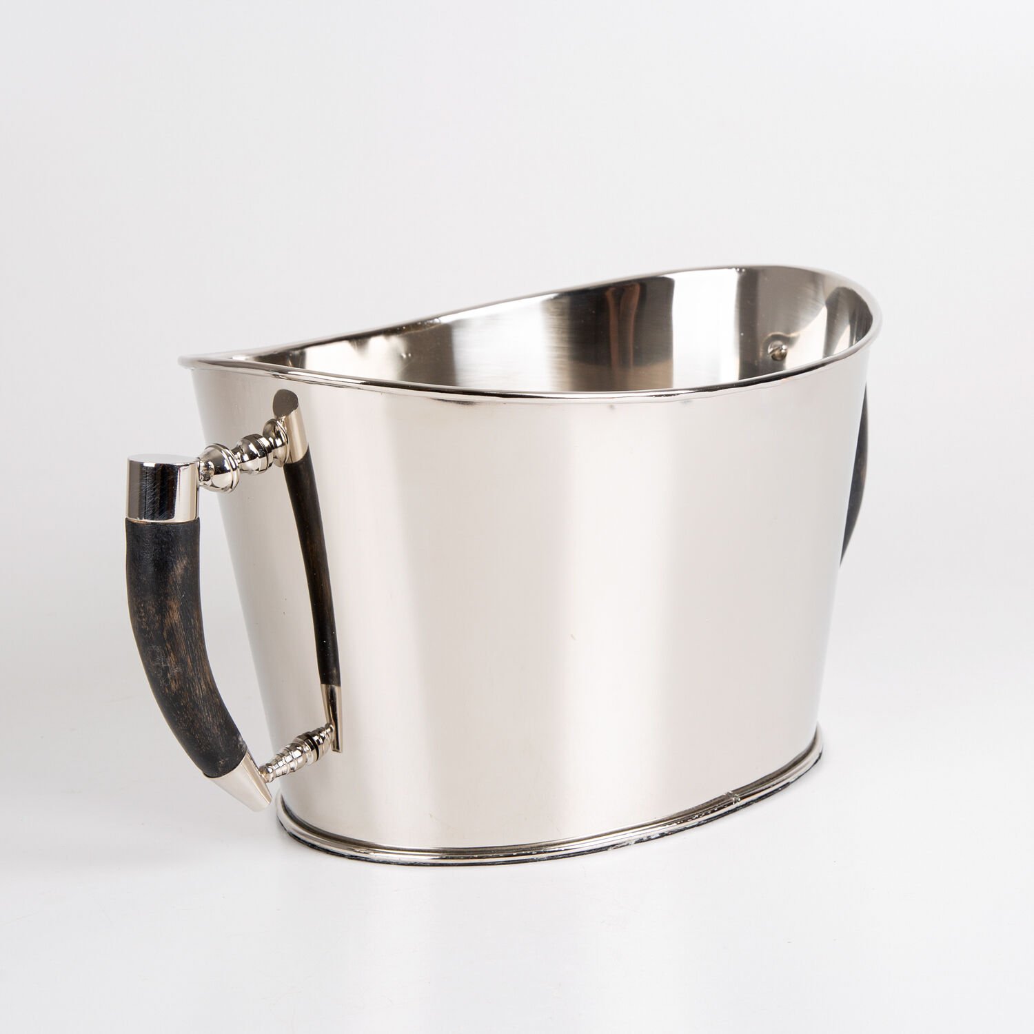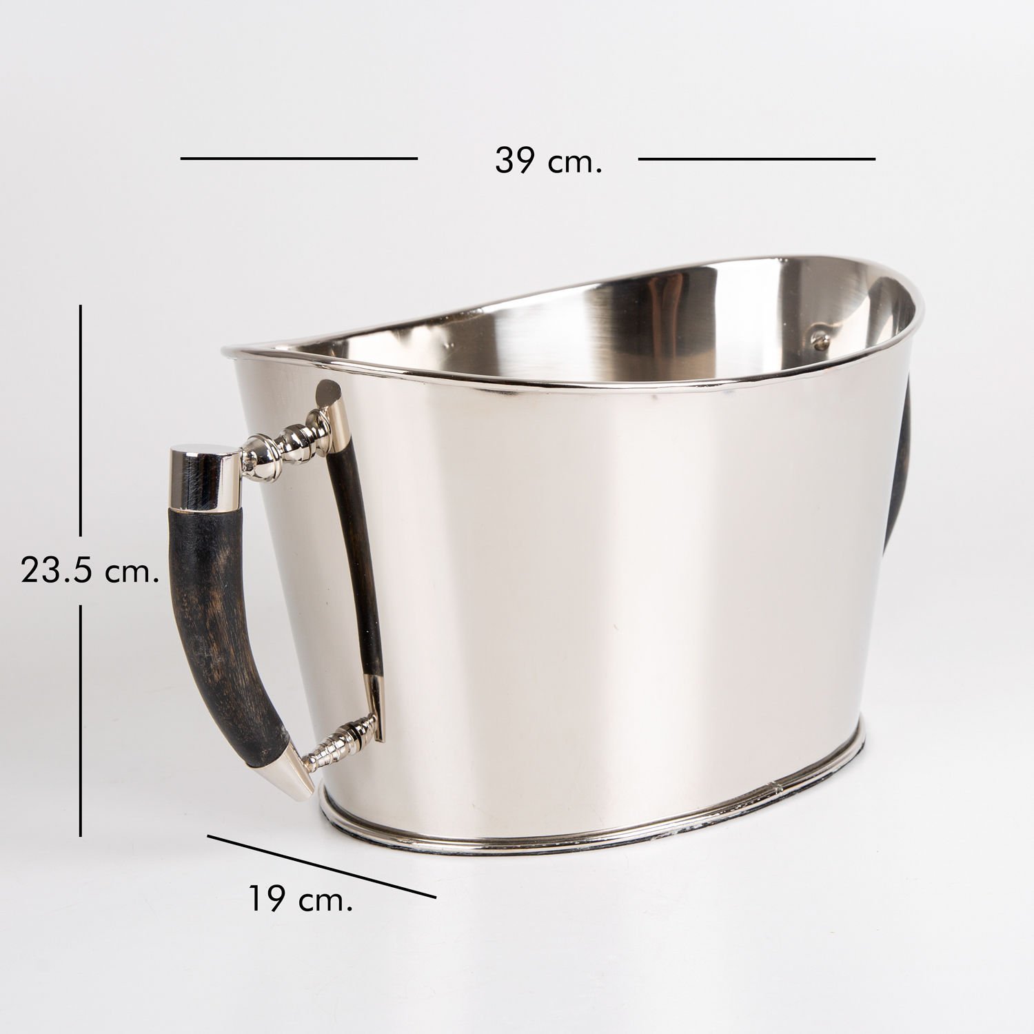 Nikel Kaplama Boynuz Saplı Şampanya Kovası 39 X 23,5 X 19 Cm.