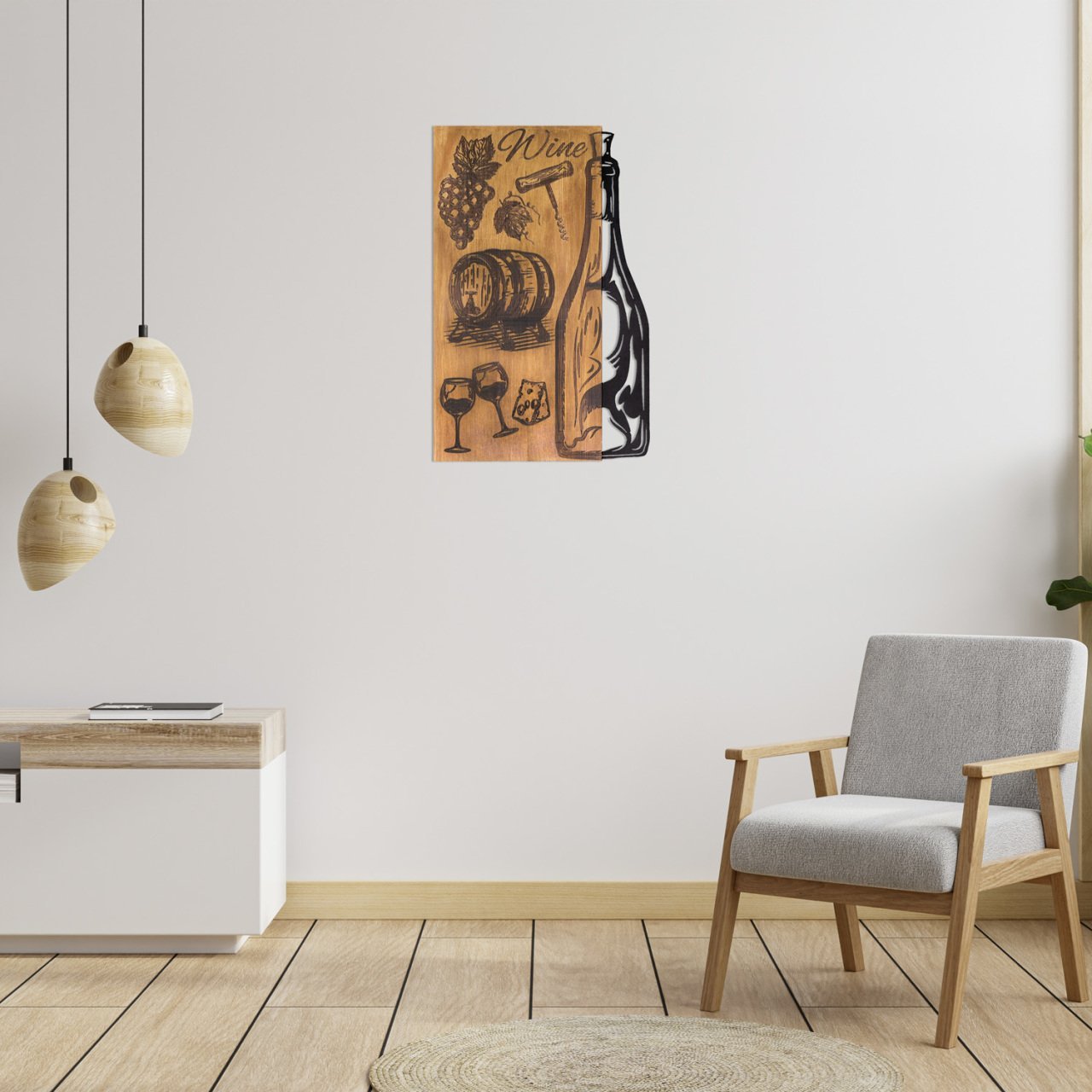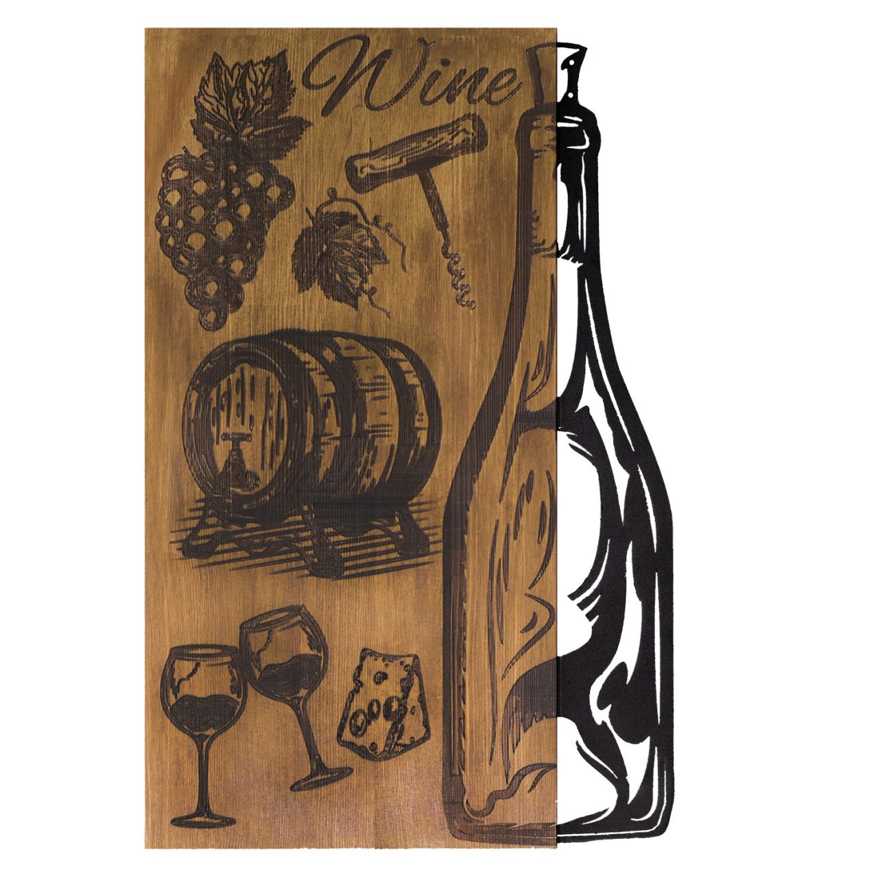 Şarap Şişesi Ahşap/Metal Dikdörtgen Duvar Pano 38x57,5 cm.