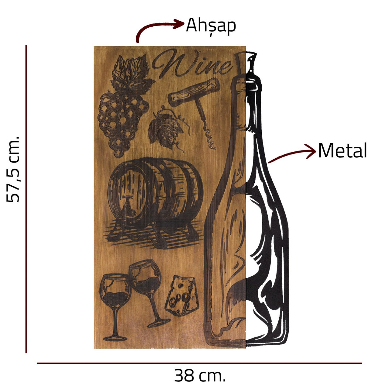 Şarap Şişesi Ahşap/metal Dikdörtgen Duvar Pano 38x57,5 Cm