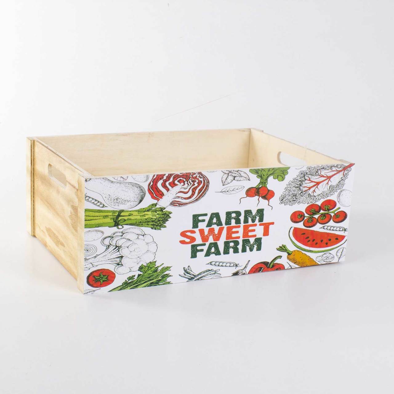 Sebze Desenli Ahşap Kasa 40x28x15 Cm