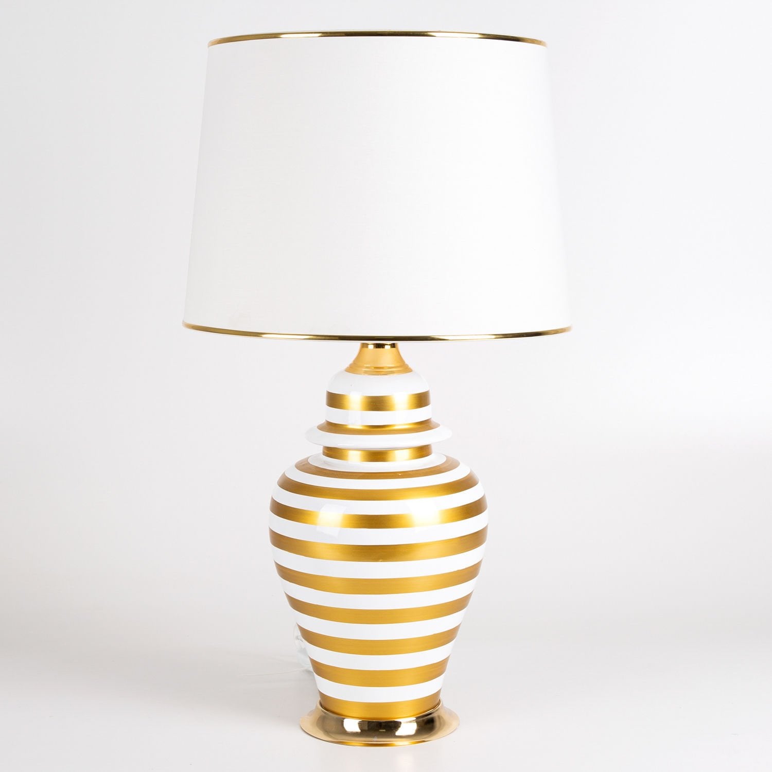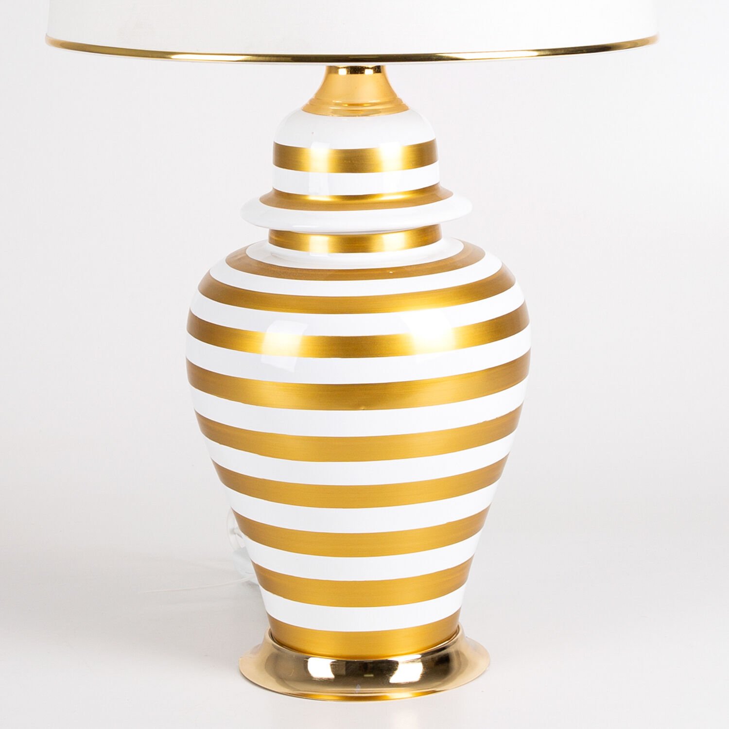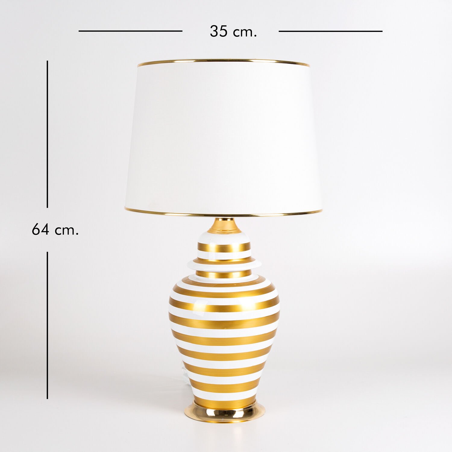 Seramik Gövdeli Krem Şapkalı Çizgi Desenli Klasik Abajur Krem-Altın 35 x 64 Cm.