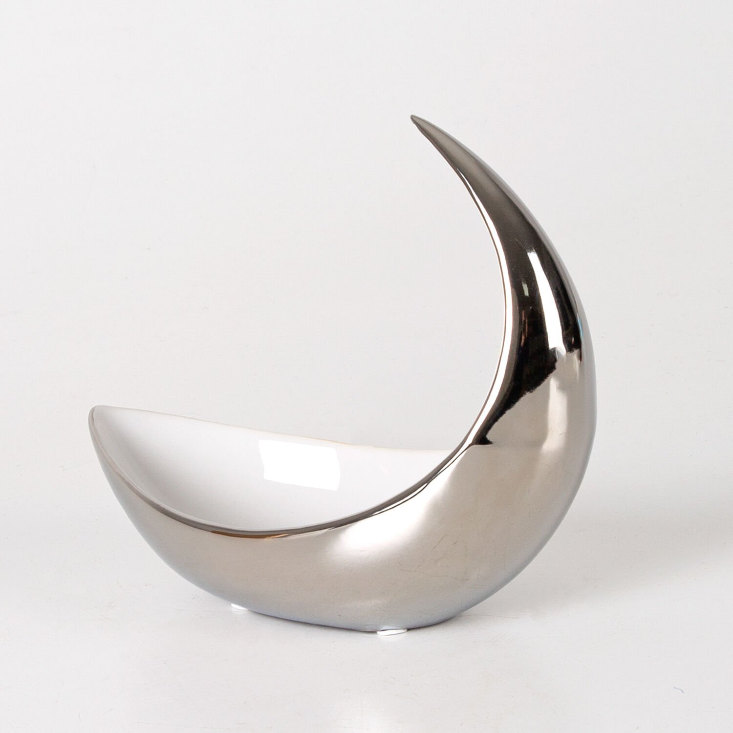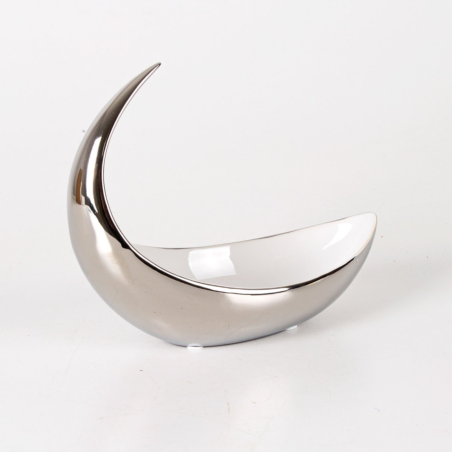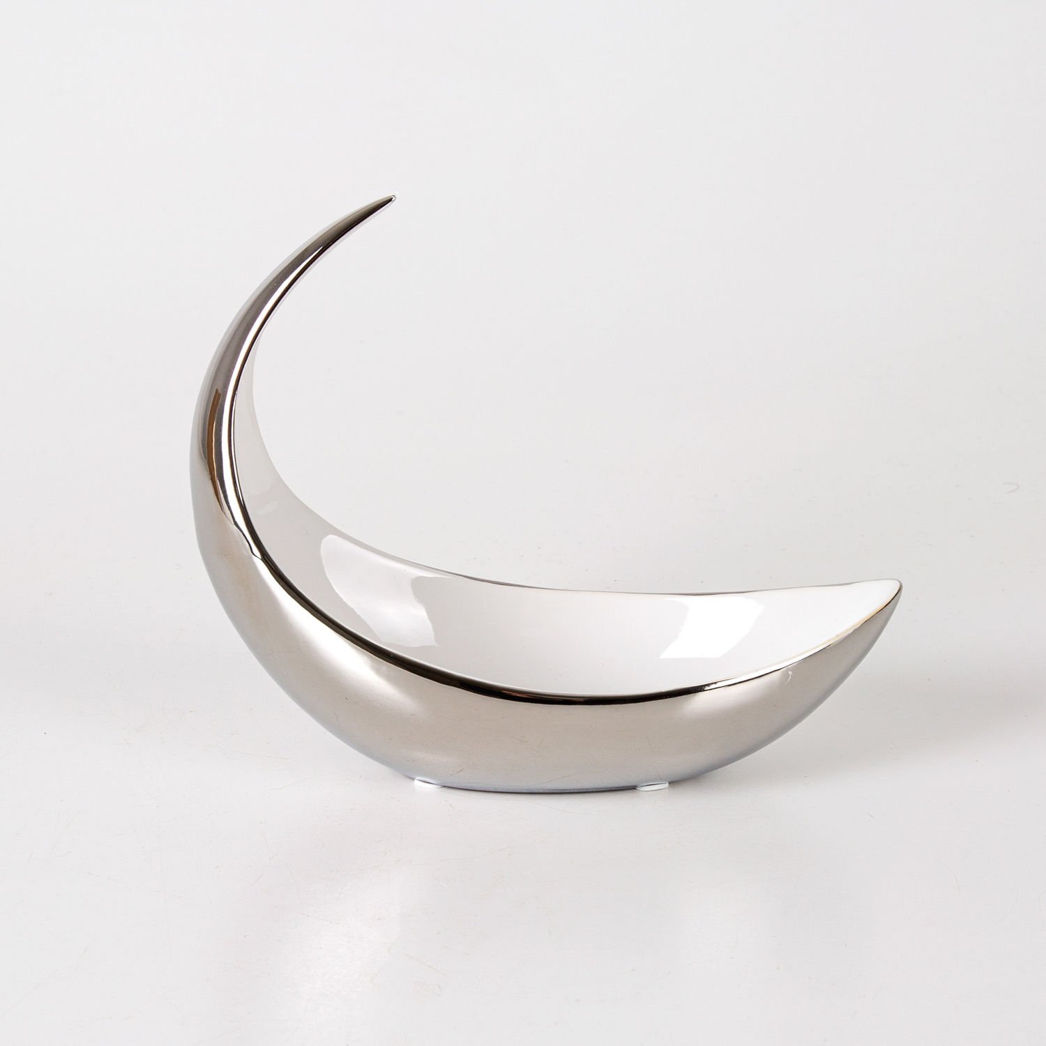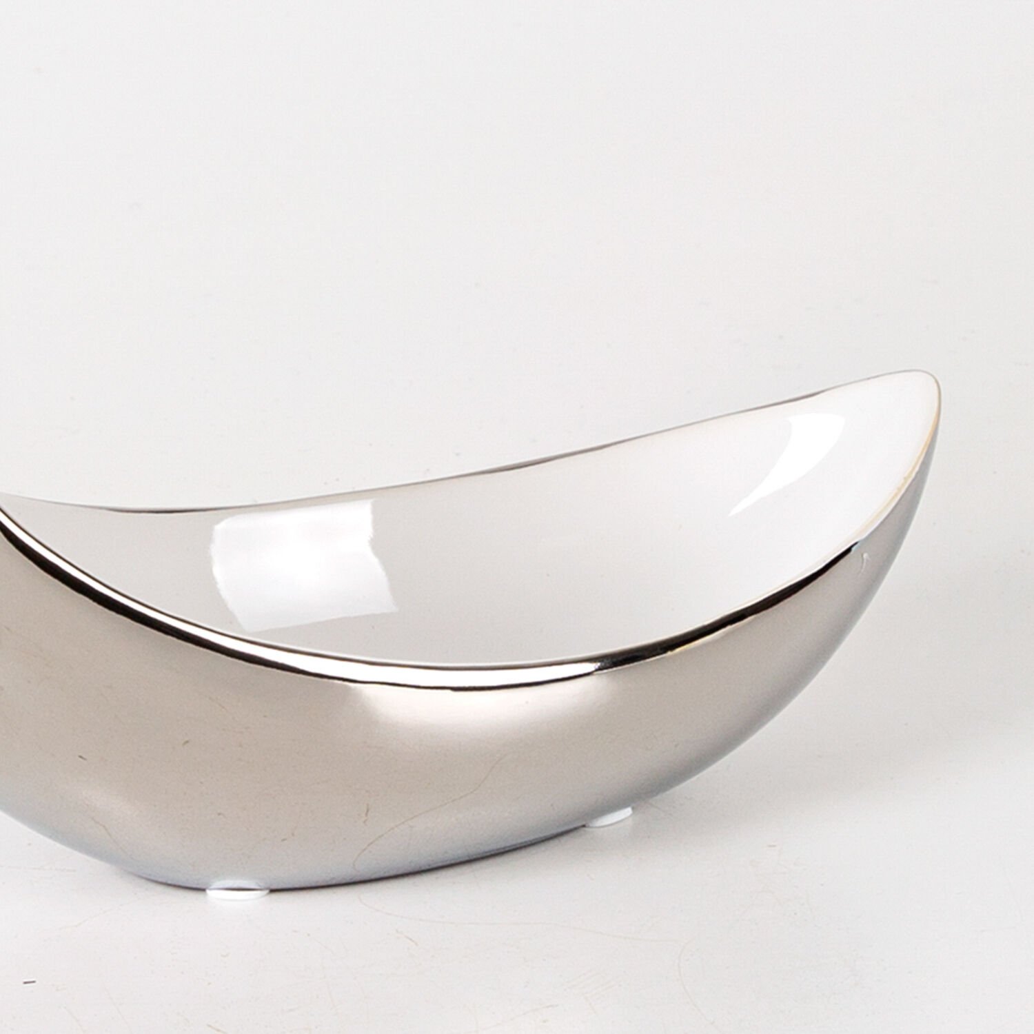 Dekoratif Seramik Luxary Kayık Çerezlik Gümüş-Beyaz ( Ebat 21x18x10 Cm.)