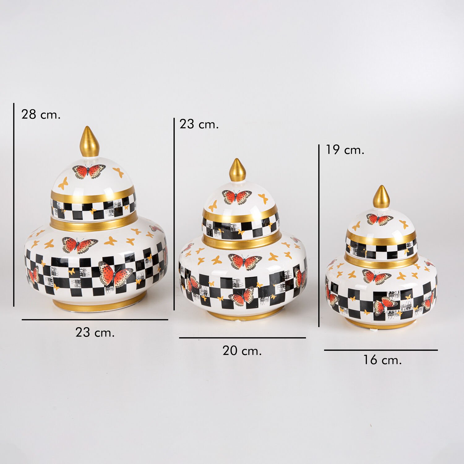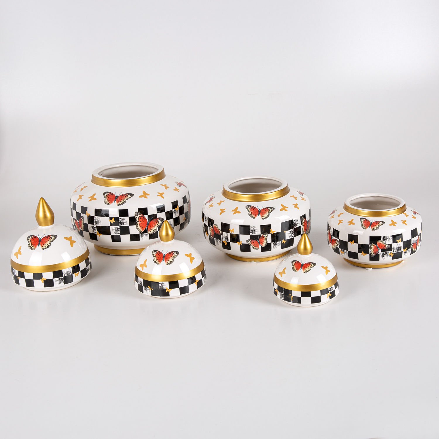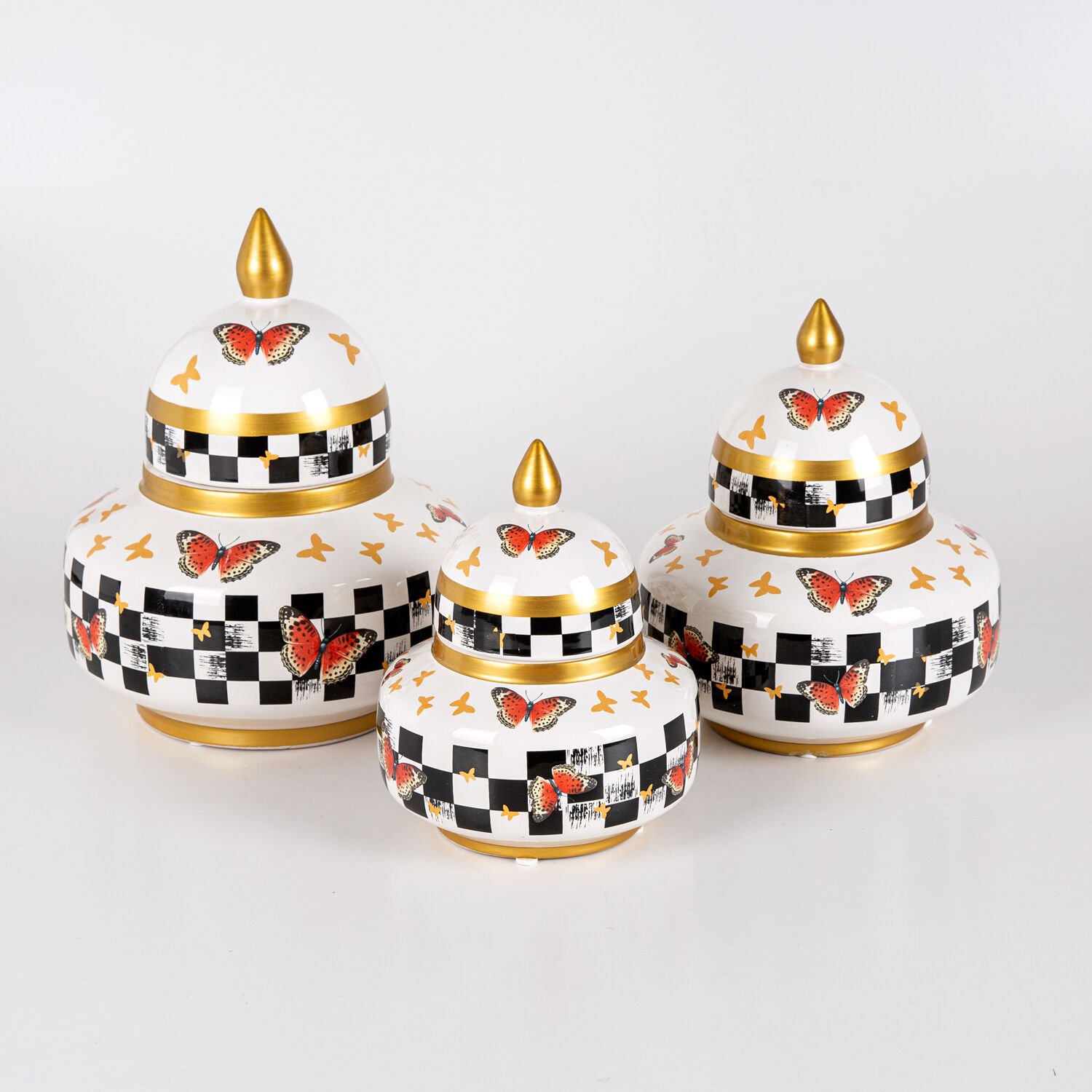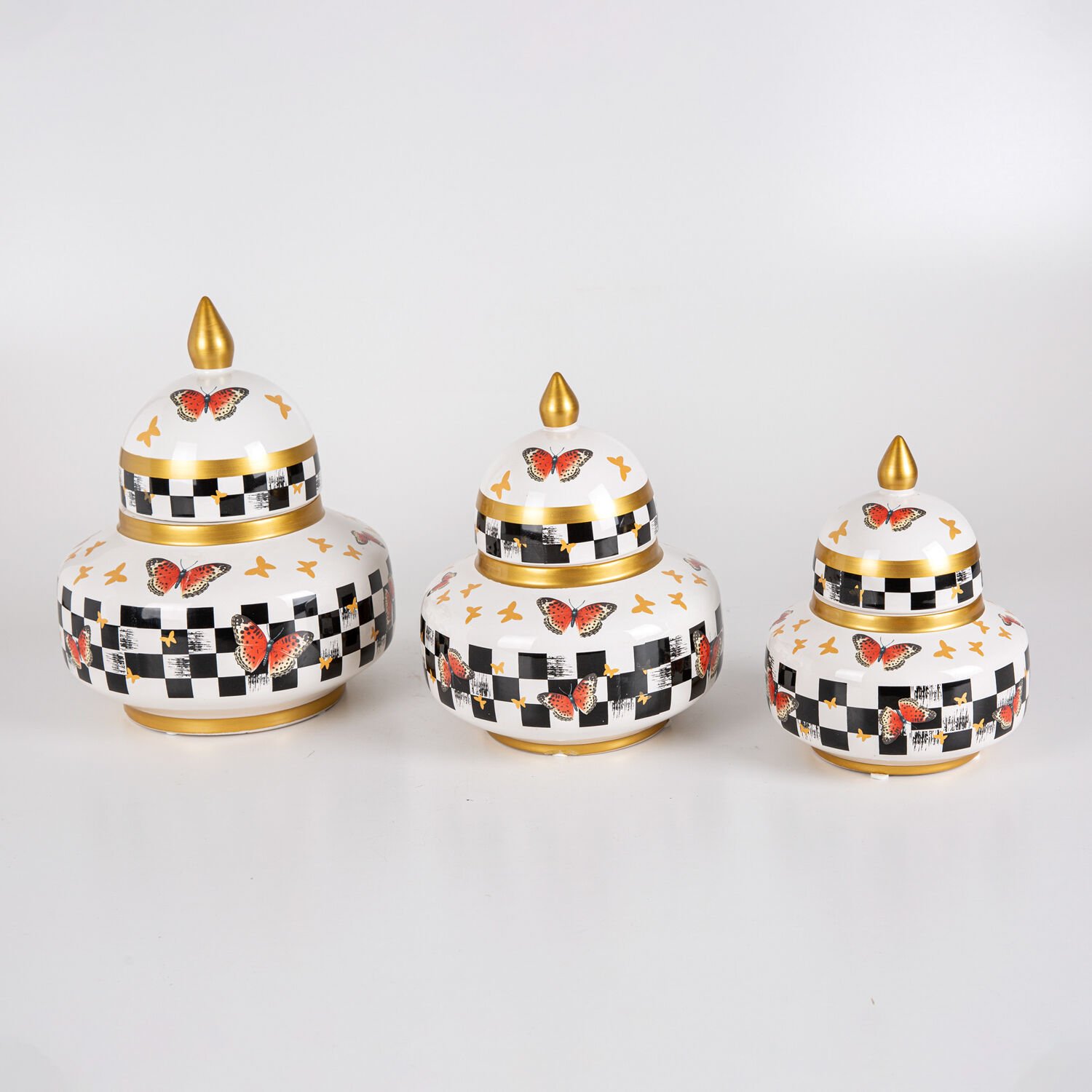 Seramik Küp Vazo, Gözde, Kelebek Model - Kapaklı, 3'lü Set