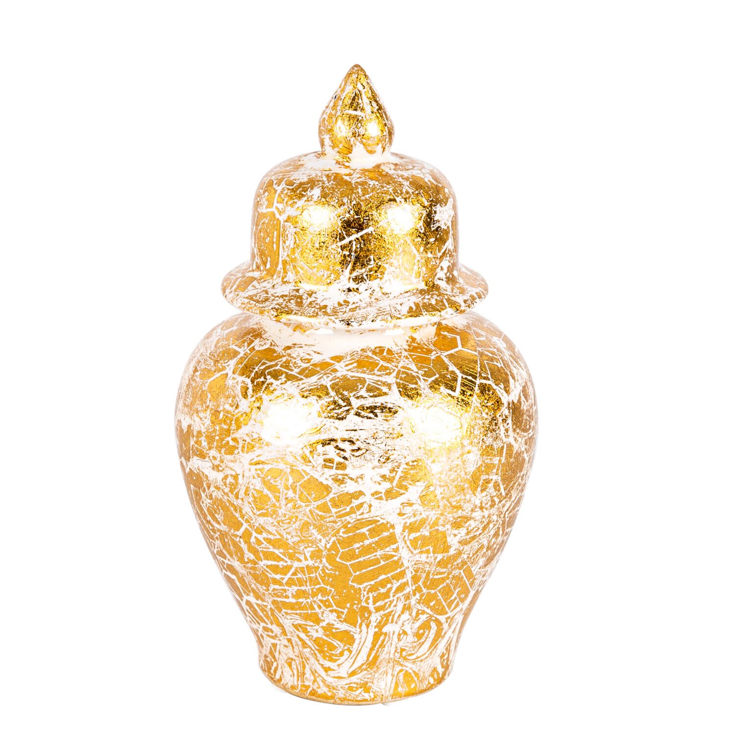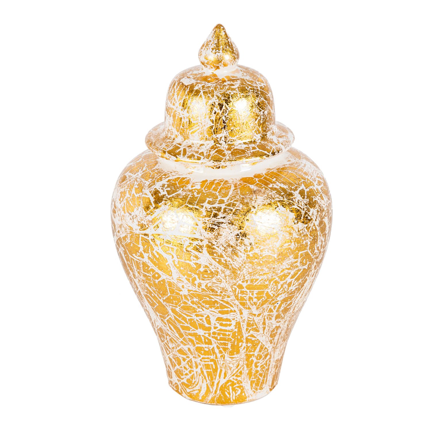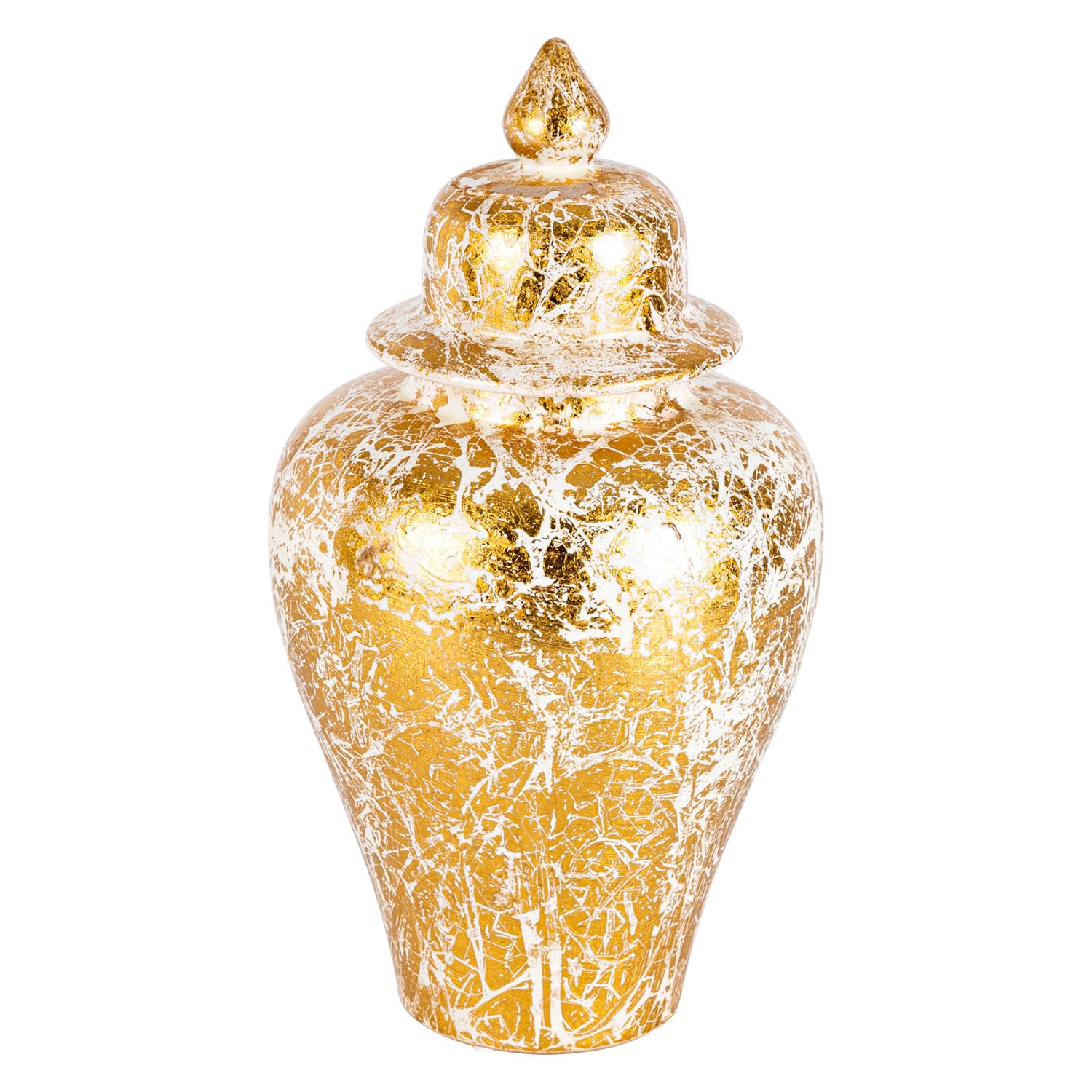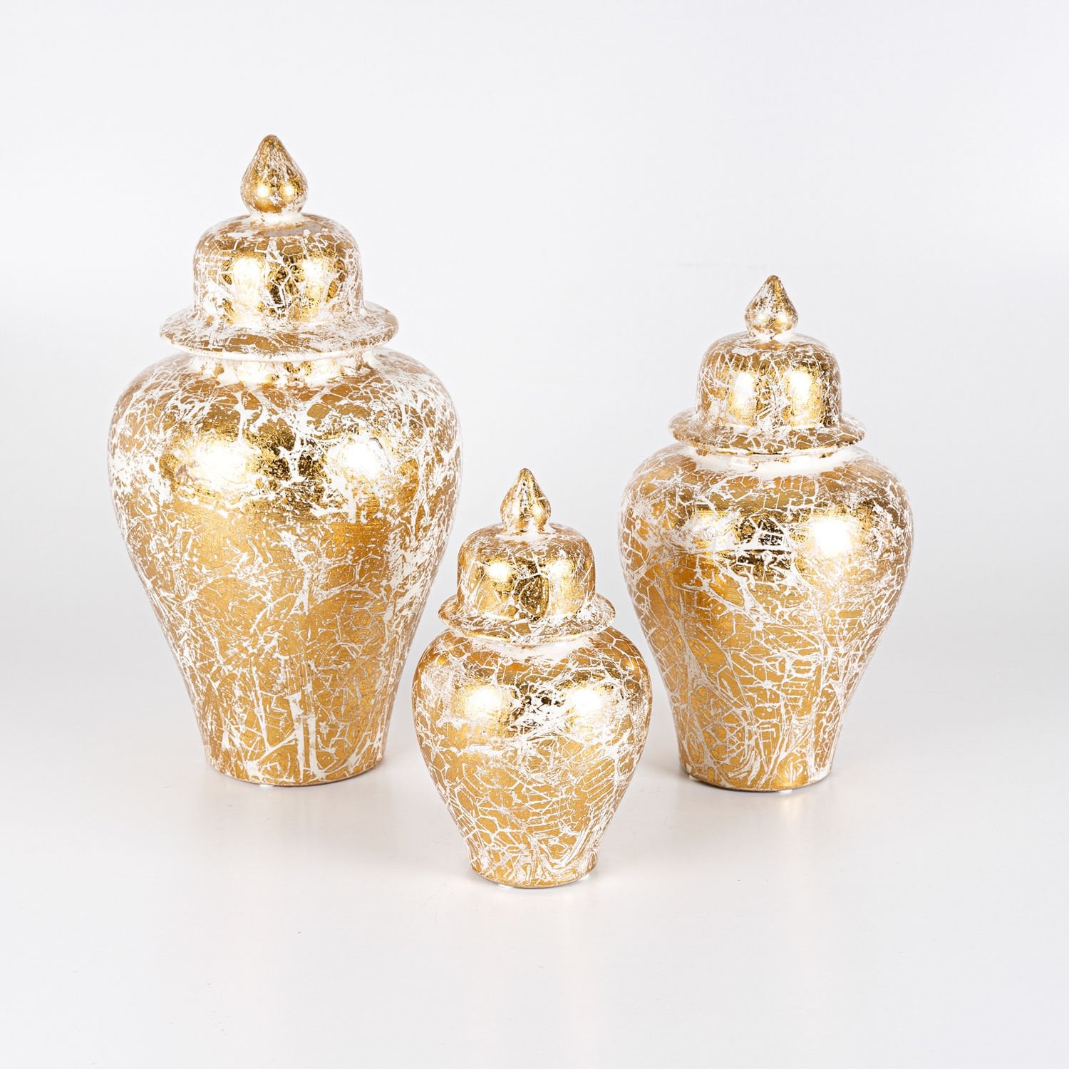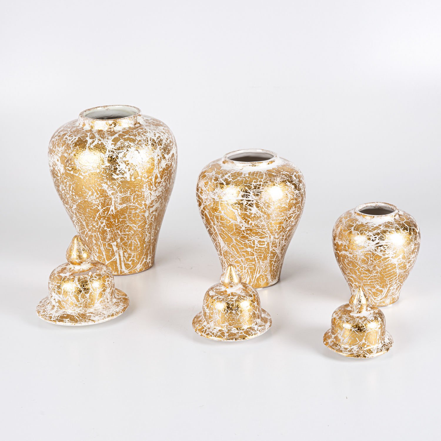 Seramik Kapaklı Klasik Küp Vazo 3'Lü Set - Krem Altın Varak