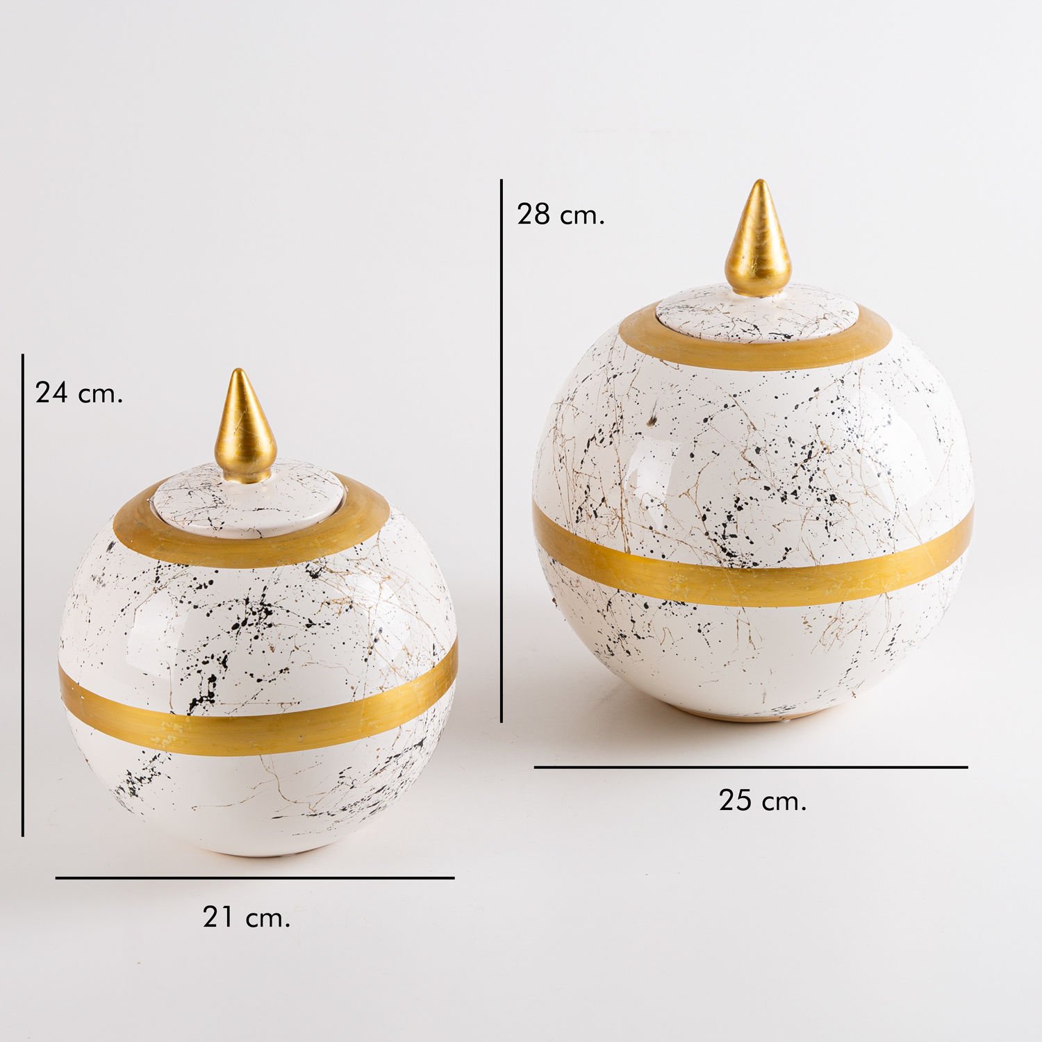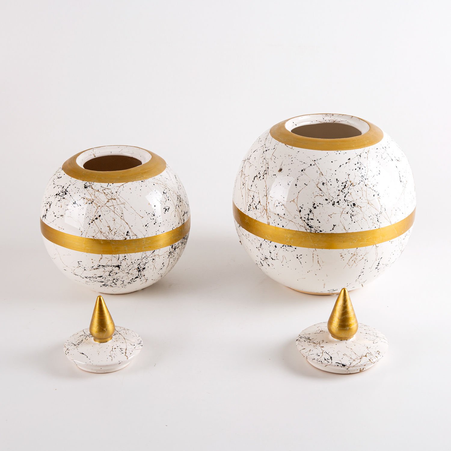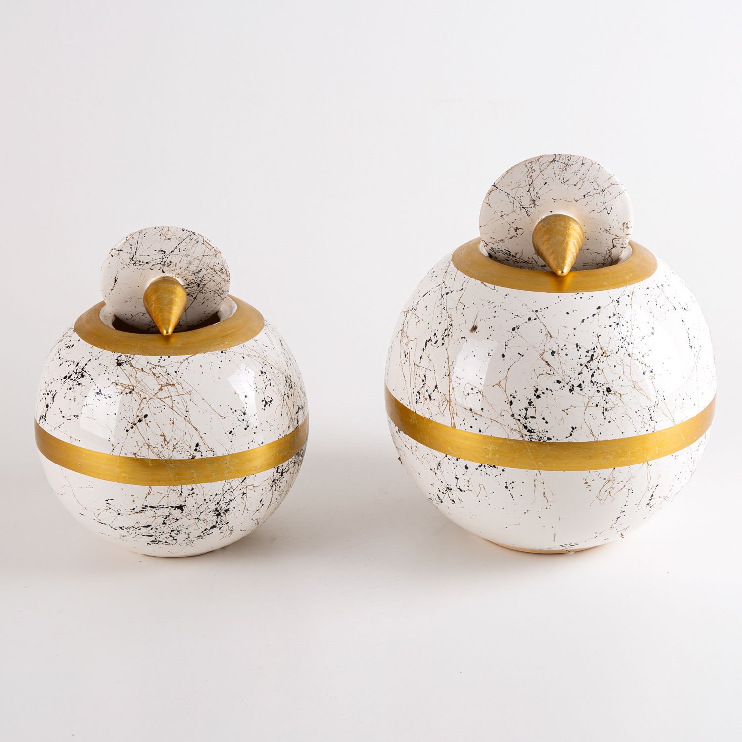 - Seramik Kapaklı Küre Küp Vazo 2'Li Set